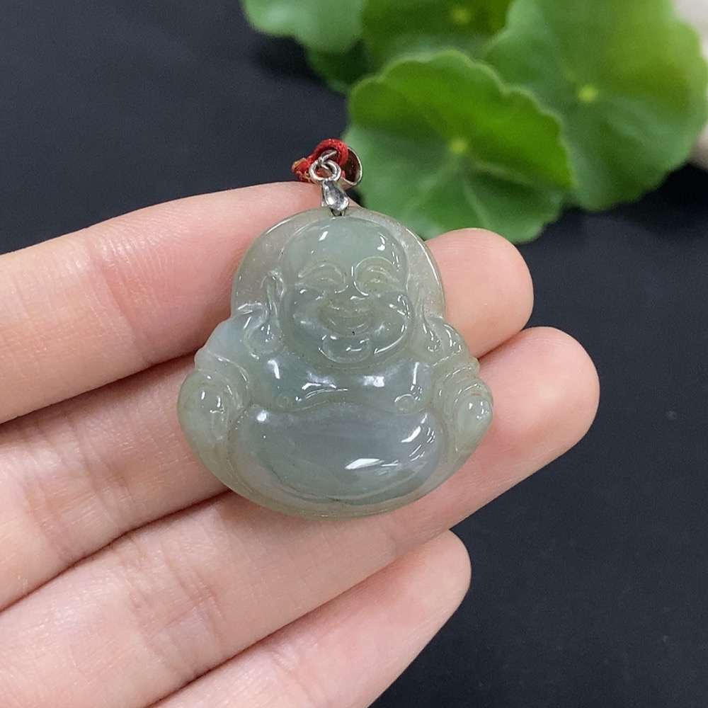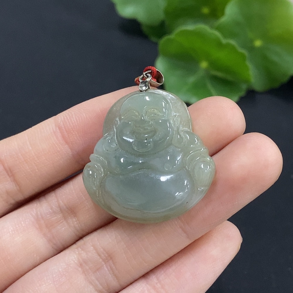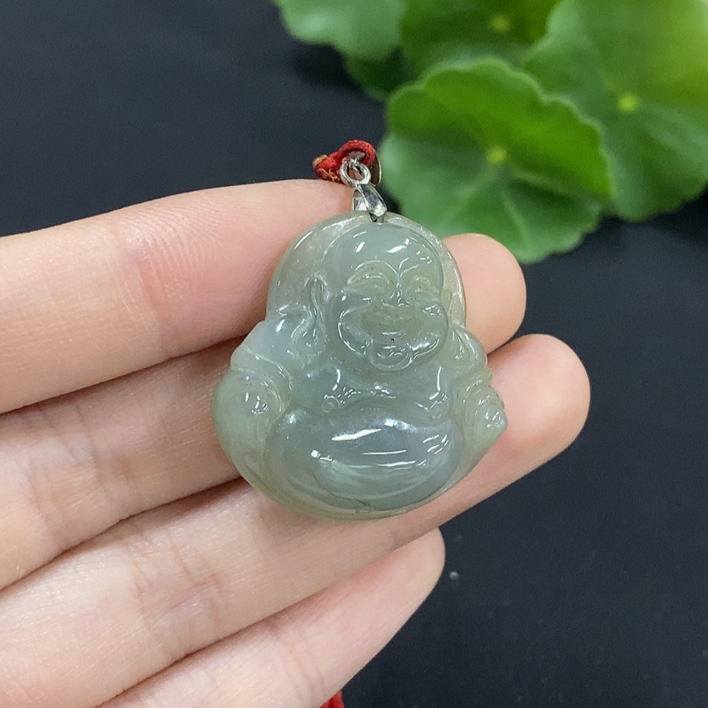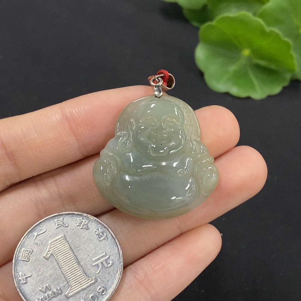 Jadeite Buddha Pendant with Non-A Grade Beads, Non-Gold Inlaid, Total Weight Approx. 14.34g