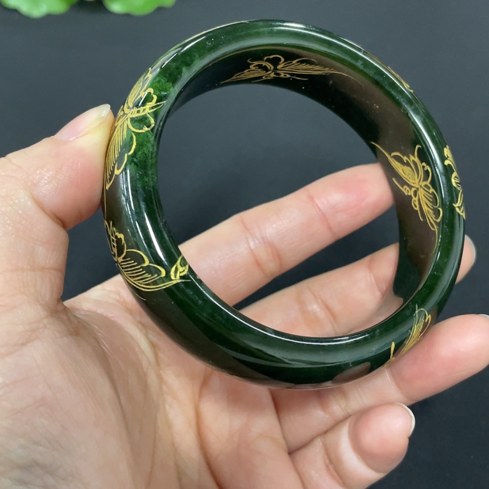 Hetian Jade Jasper Round Bracelet Size 59.8 Total Weight Approx. 92.1g