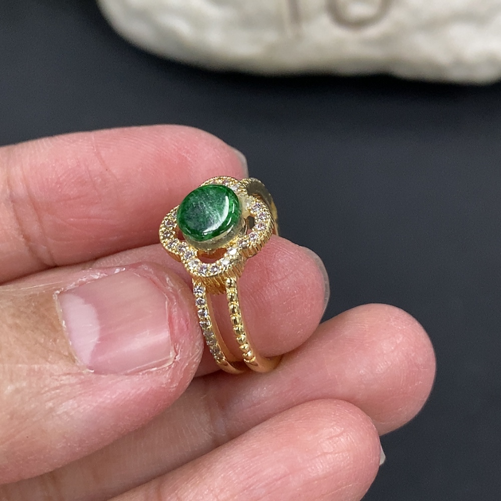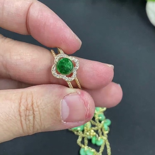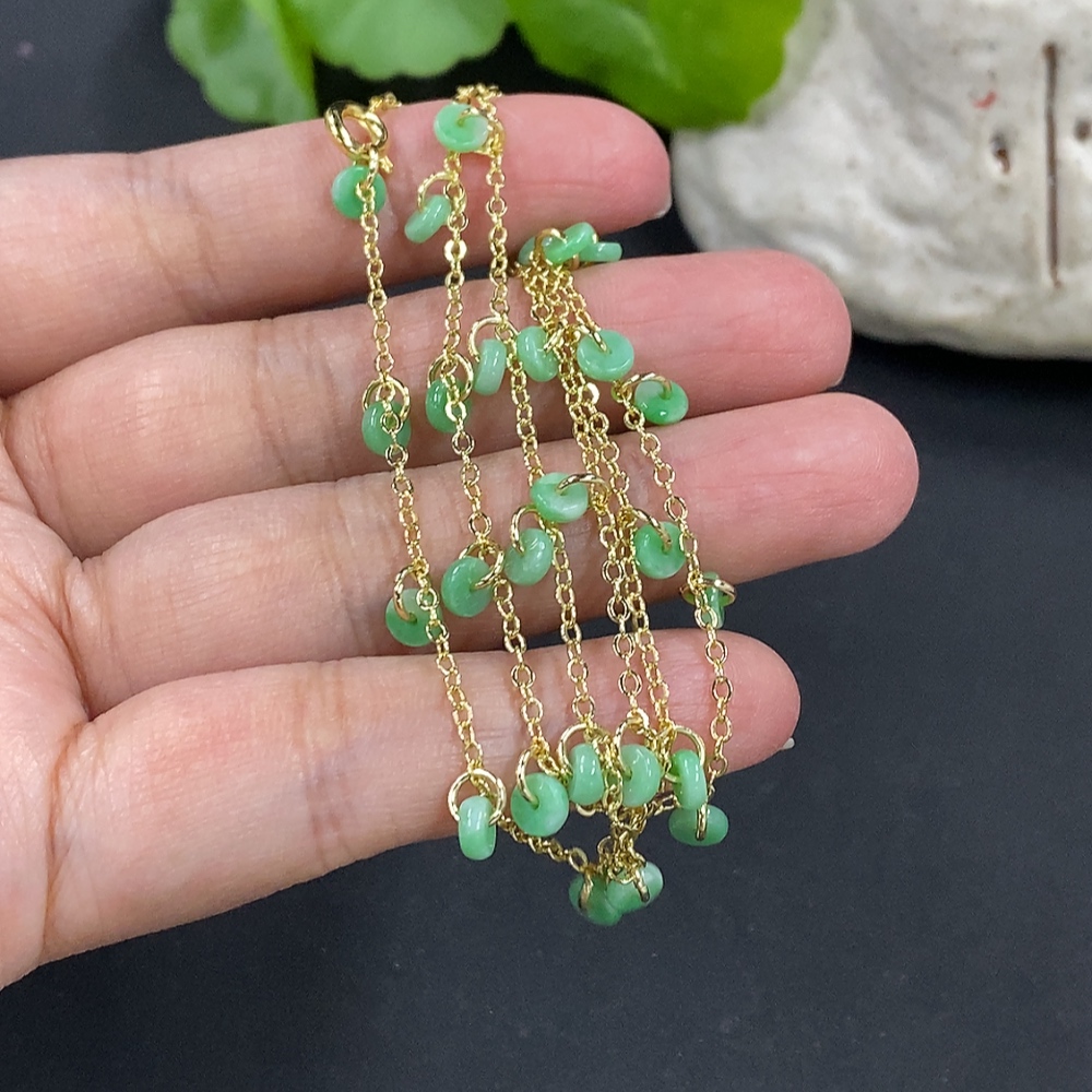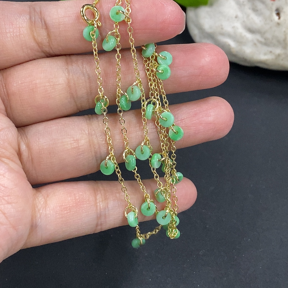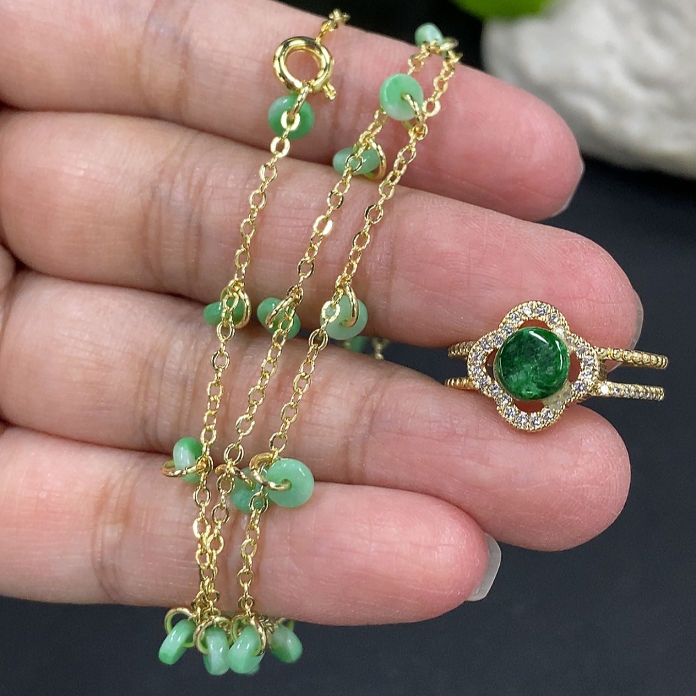 Jadeite Inlaid Chain + Ring Non-Gold Inlay Total Weight Approx. 7g