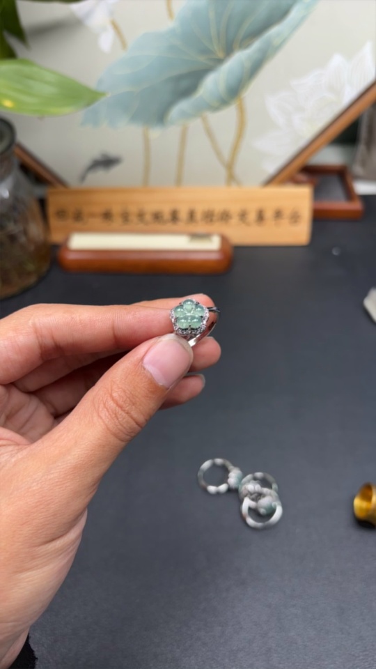 Jadeite Inlaid Ring Sell as a Lot (Non-Gold Setting) (Adjustable)