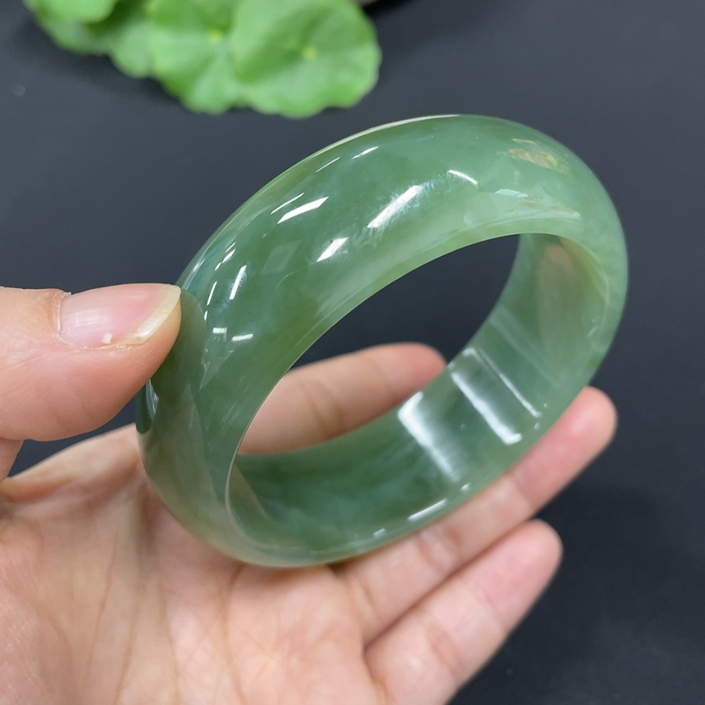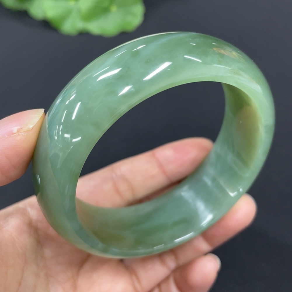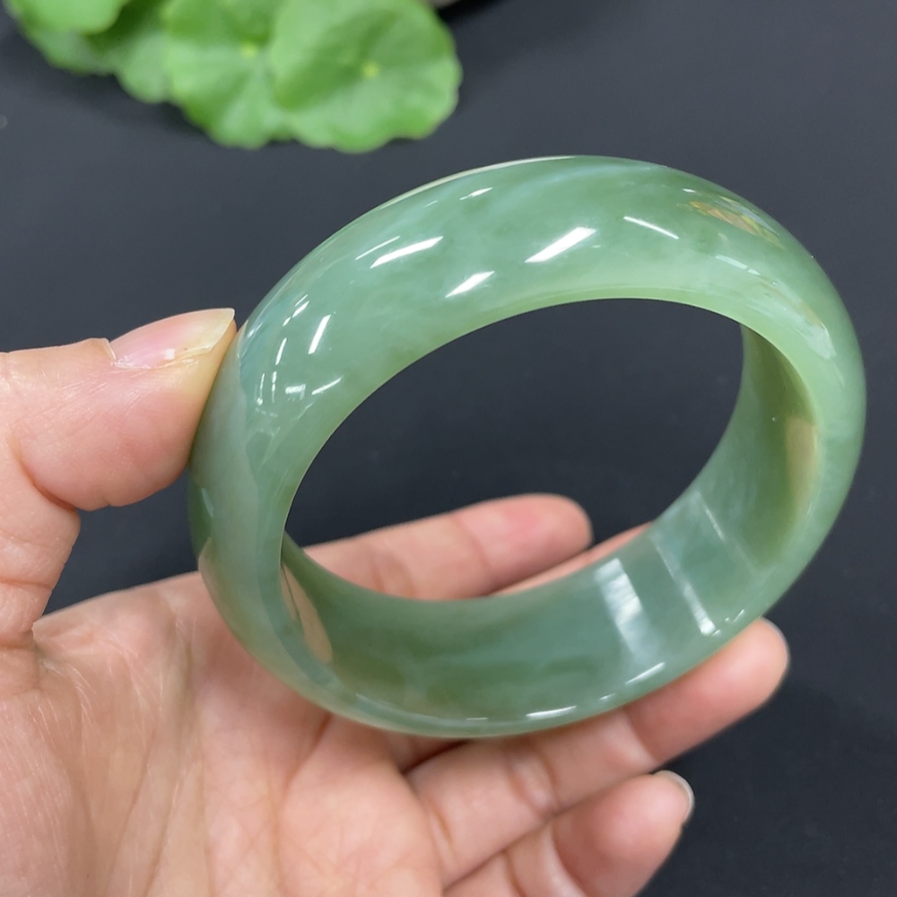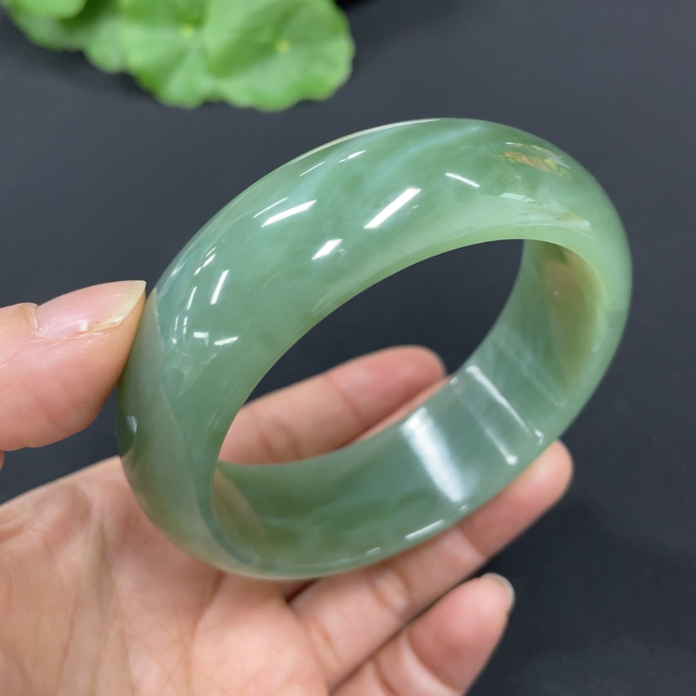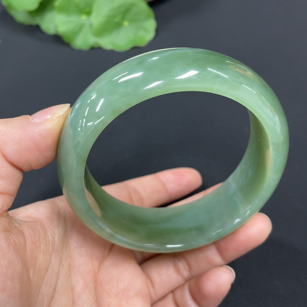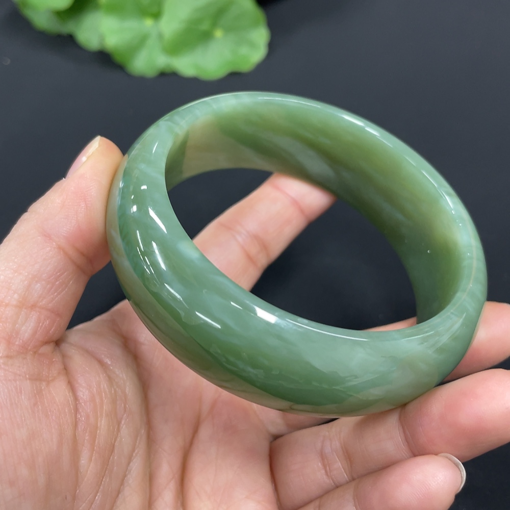 Hetian Jade Green Jade Round Bracelet Size 59.5 Total Weight Approx. 89.8g