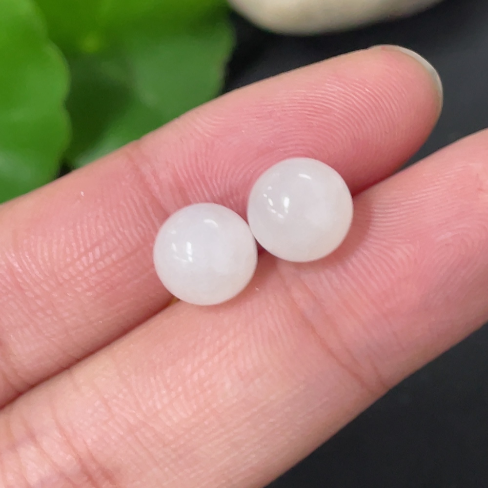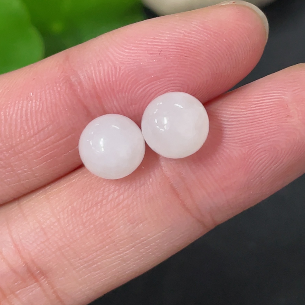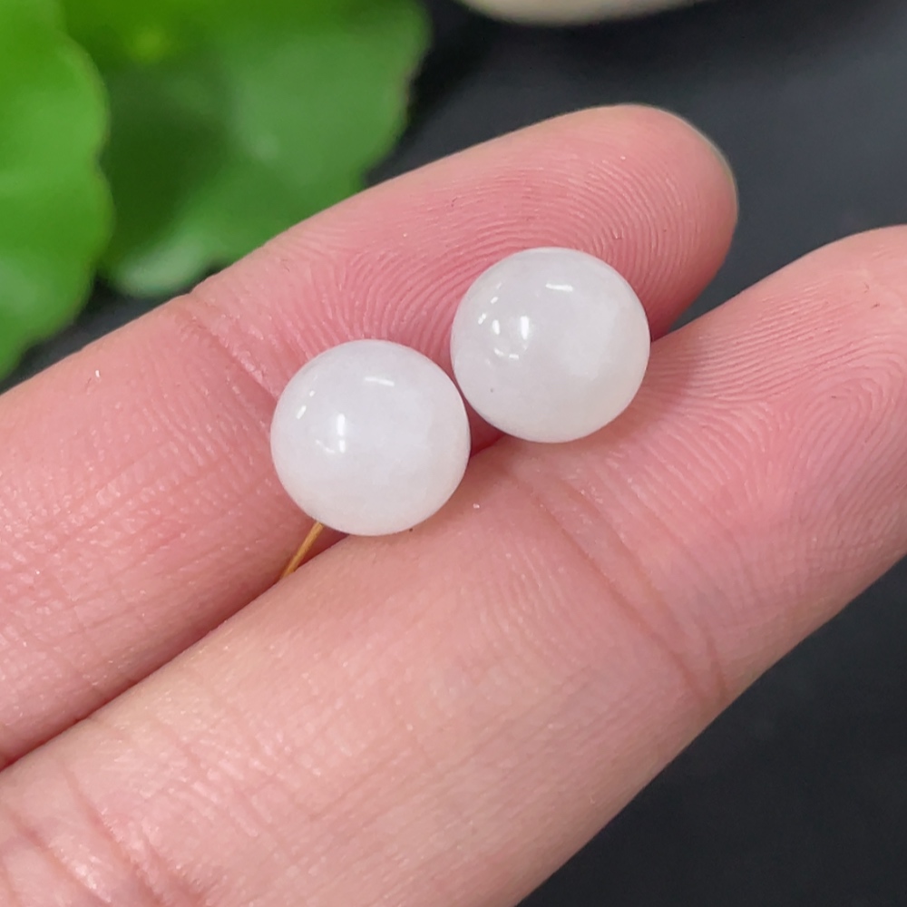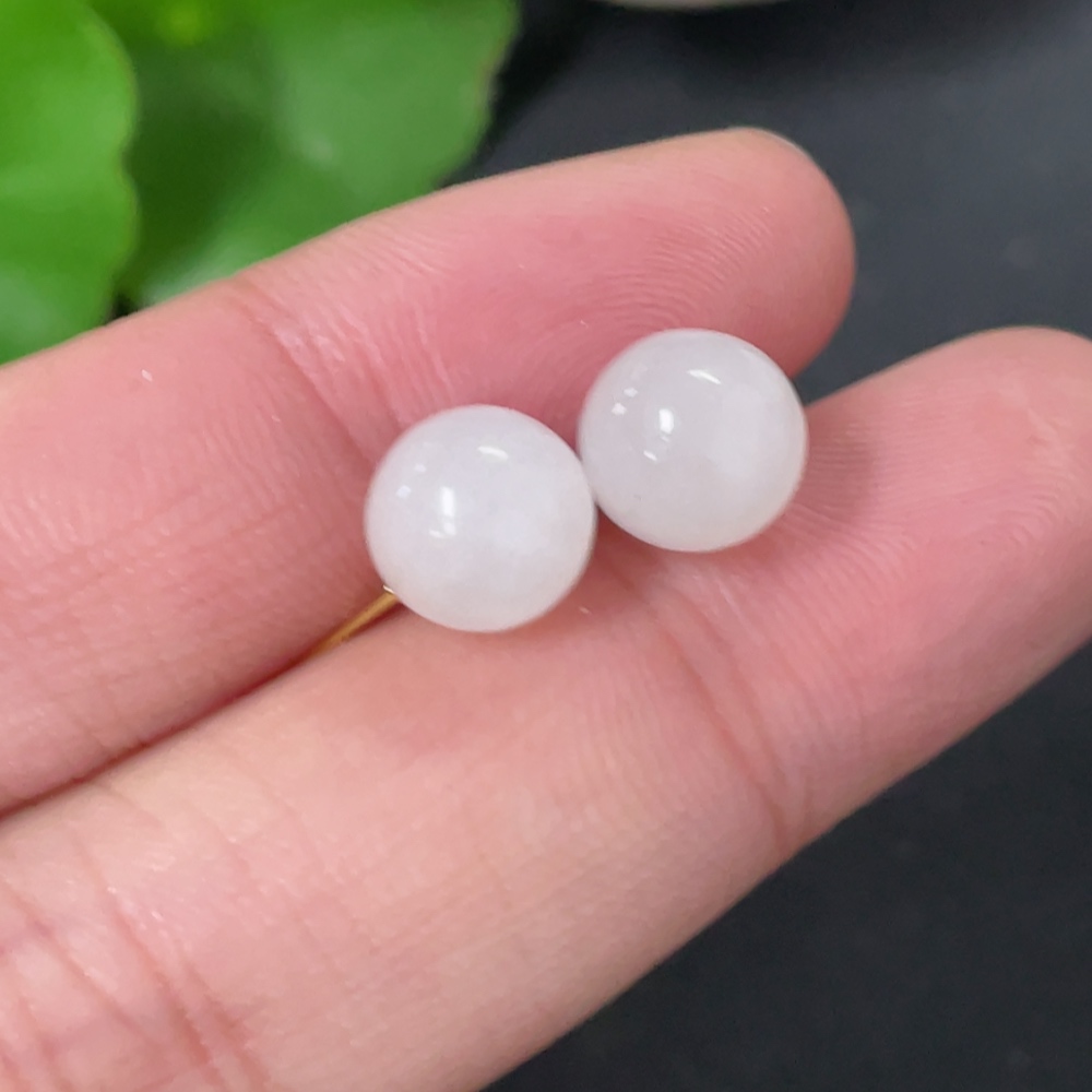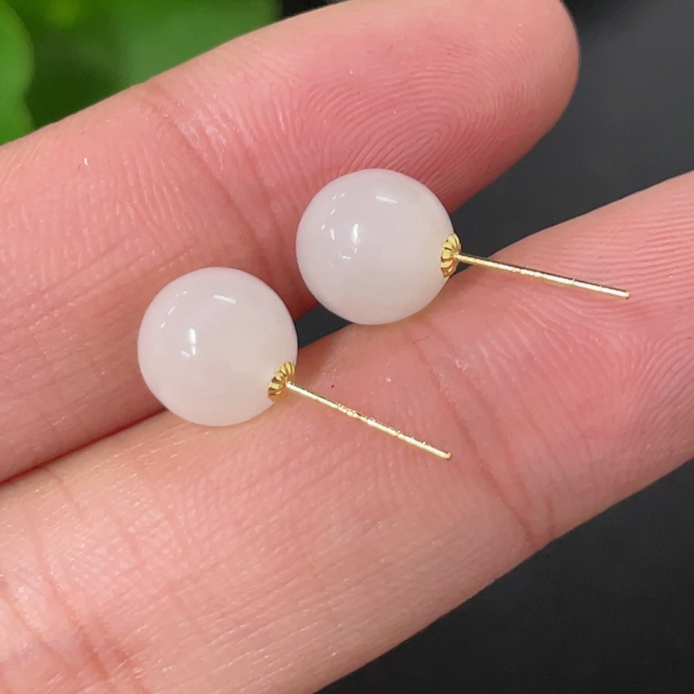 Hetian Jade Bead Earrings, Approx. 7.8mm, 18k Gold, Total Weight Approx. 1.4g, Contains Other Mineral Components