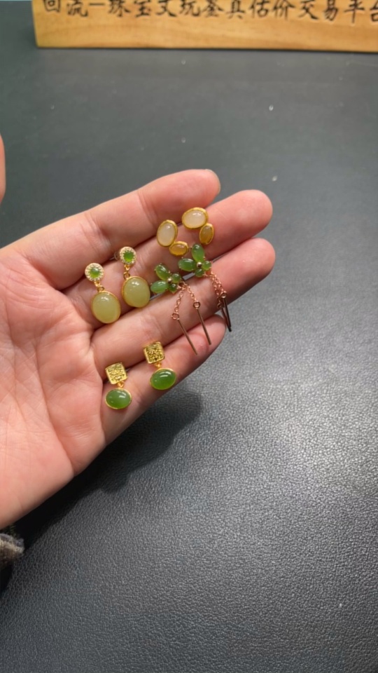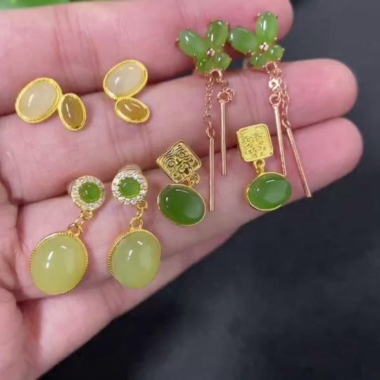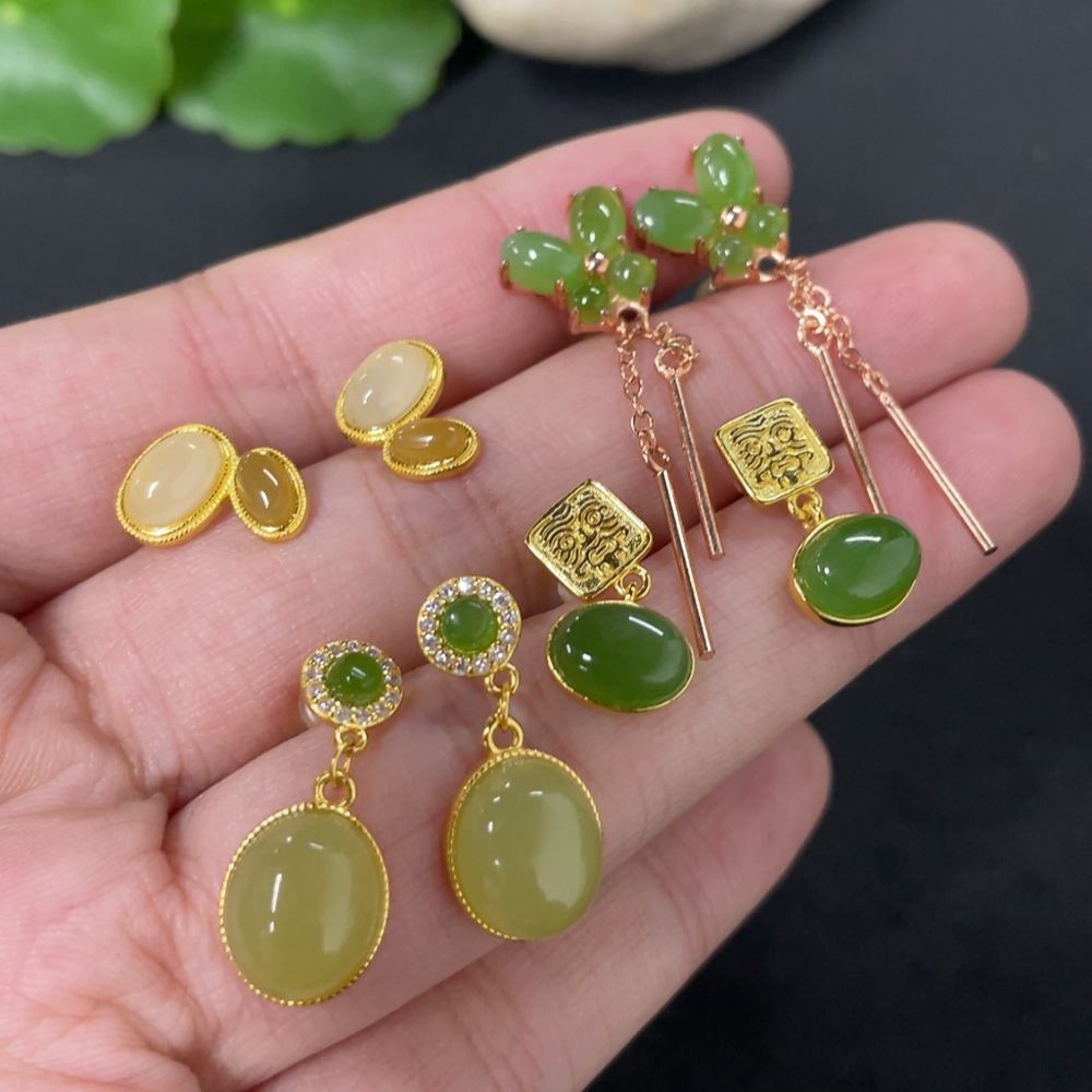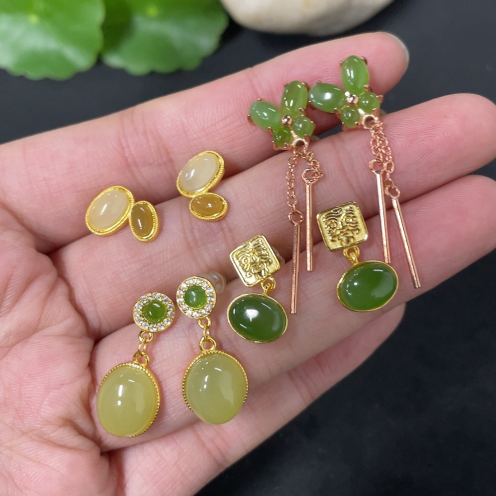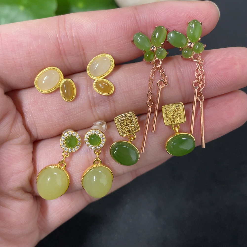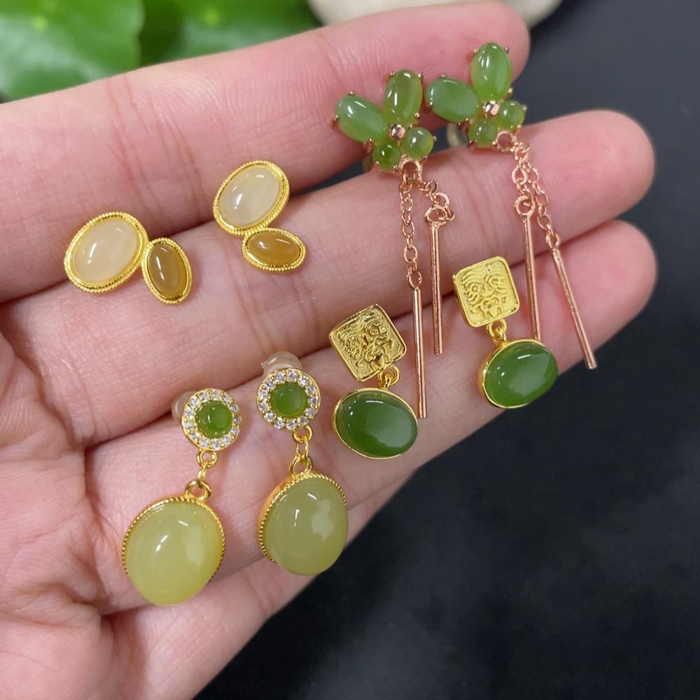 Hetian Jade Inlaid Earrings Non-Gold Inlaid Total Weight Approx. 8.8g