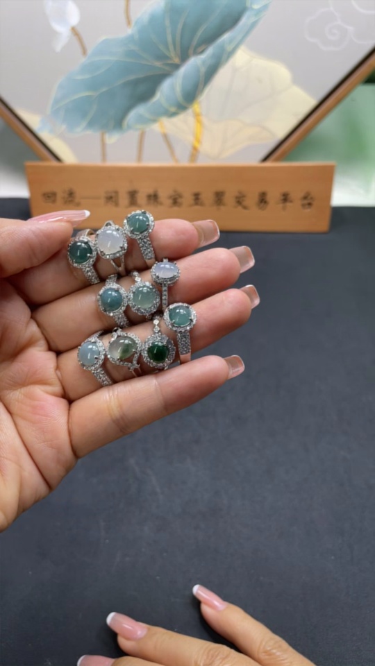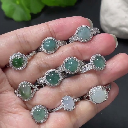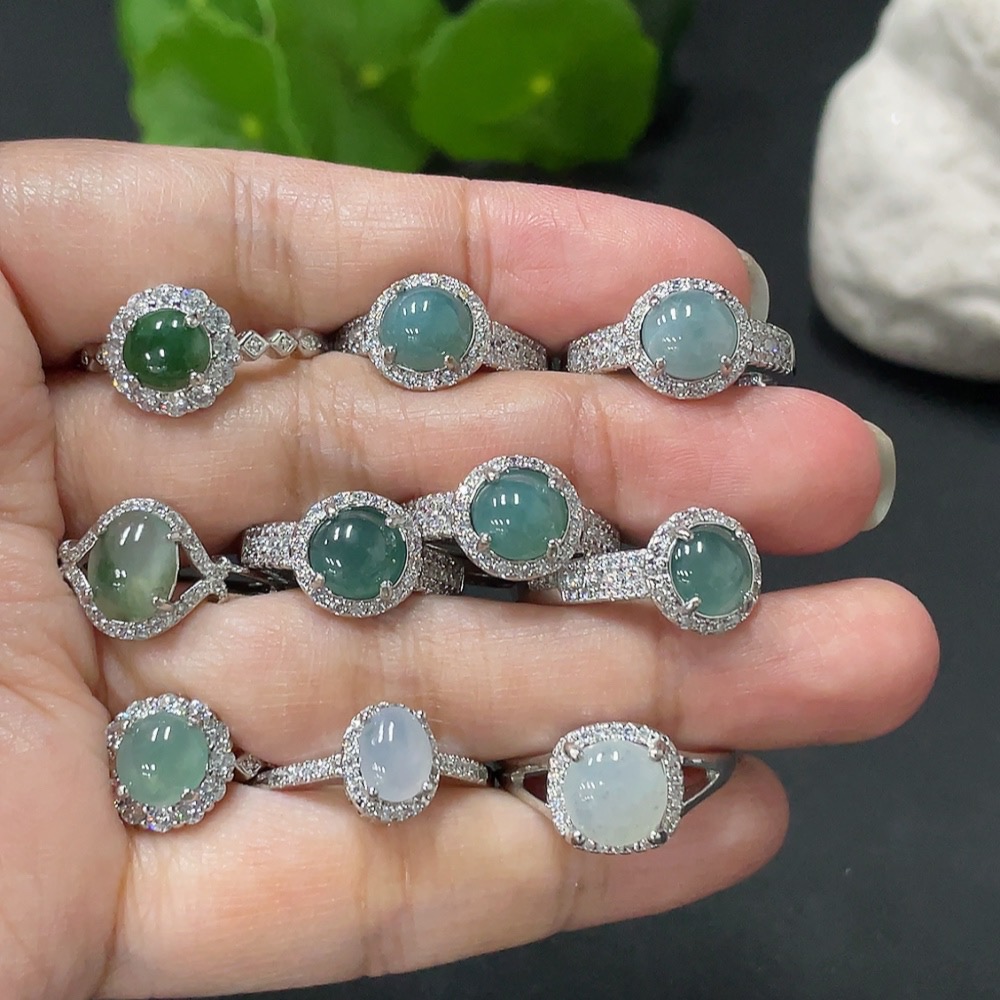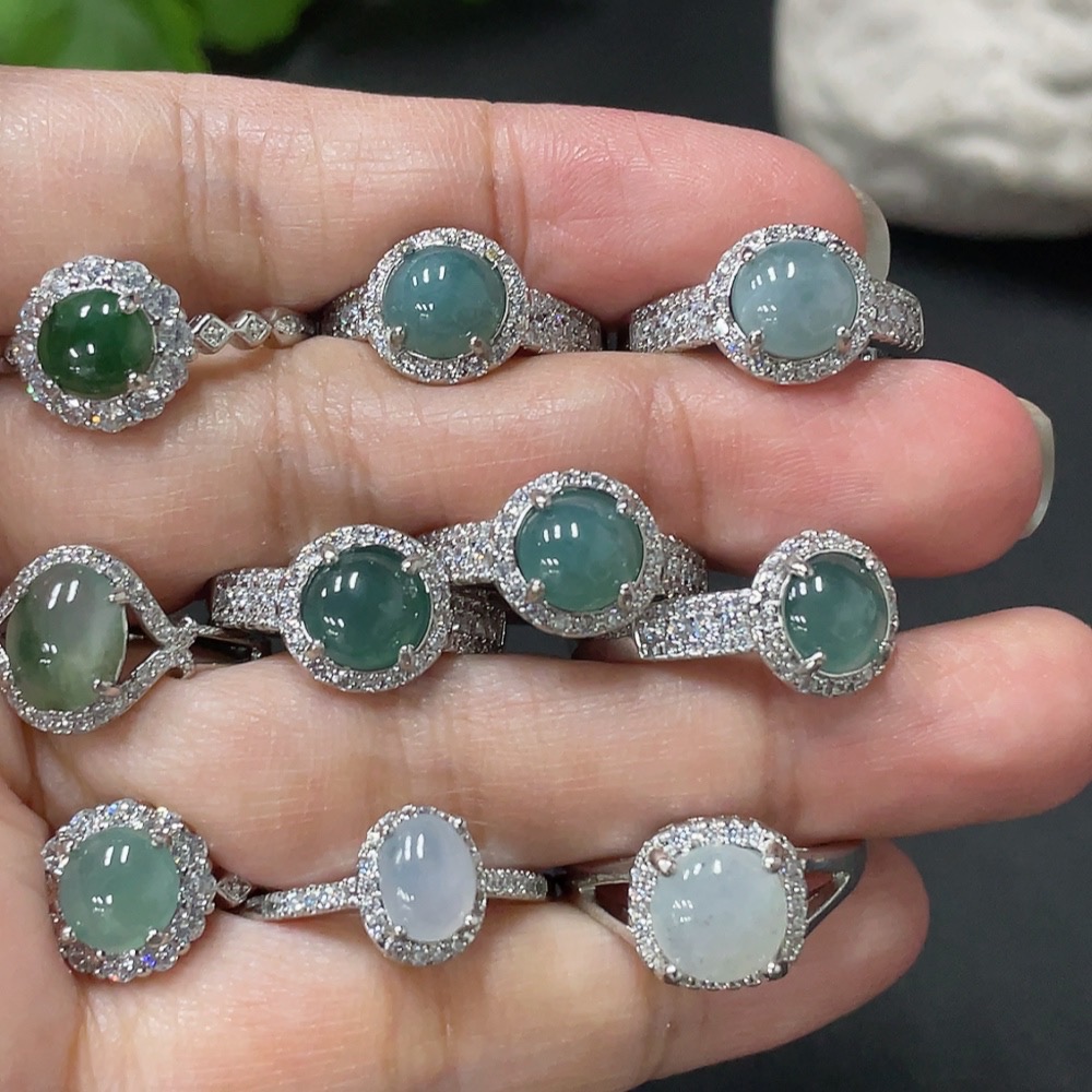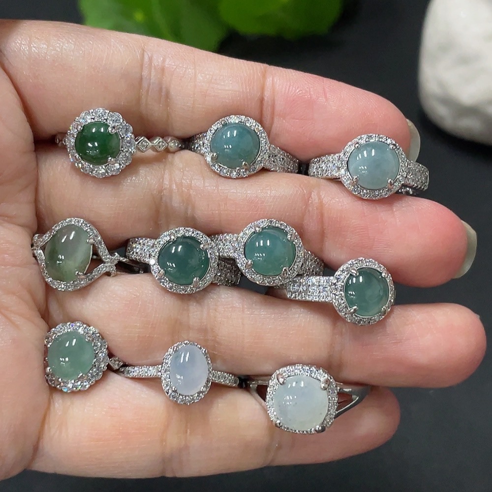 Jadeite Cabochon Inlaid Ring Non-gold Inlaid Adjustable Size