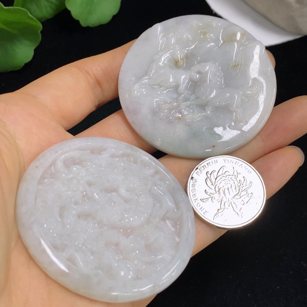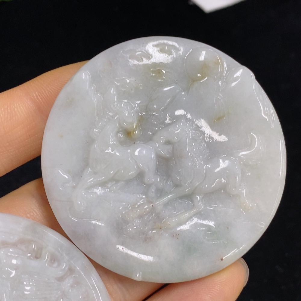 Jadeite Dragon Plaque/Galloping Horses Pendant Sell as a Lot