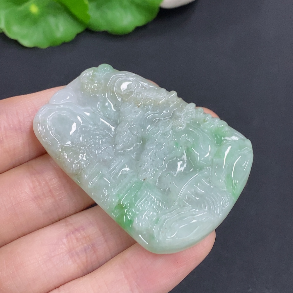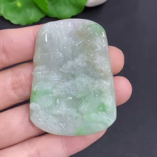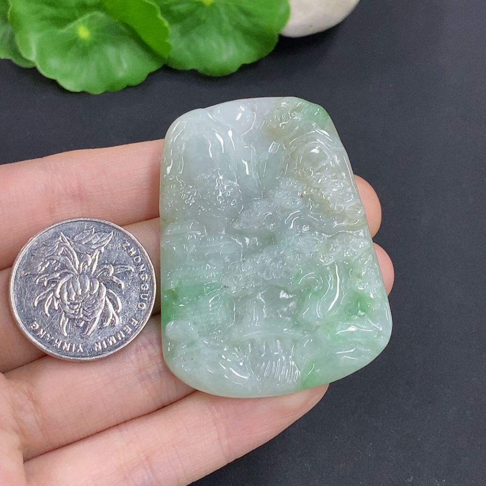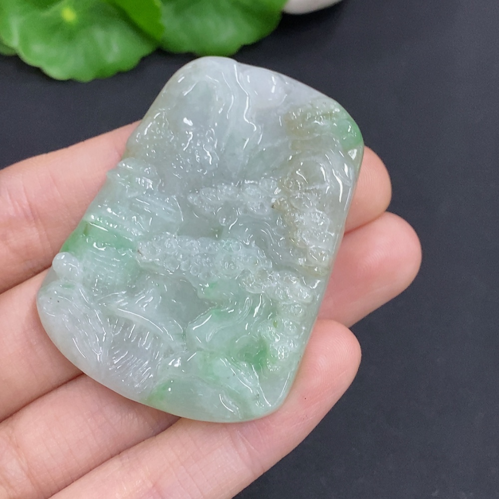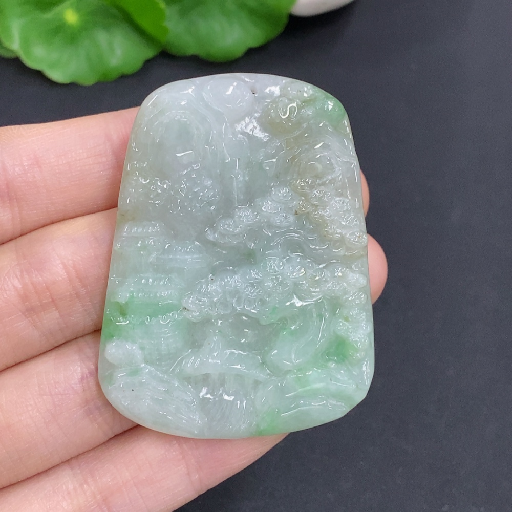 Jadeite Landscape Pendant, Total Weight Approx. 28.89g
