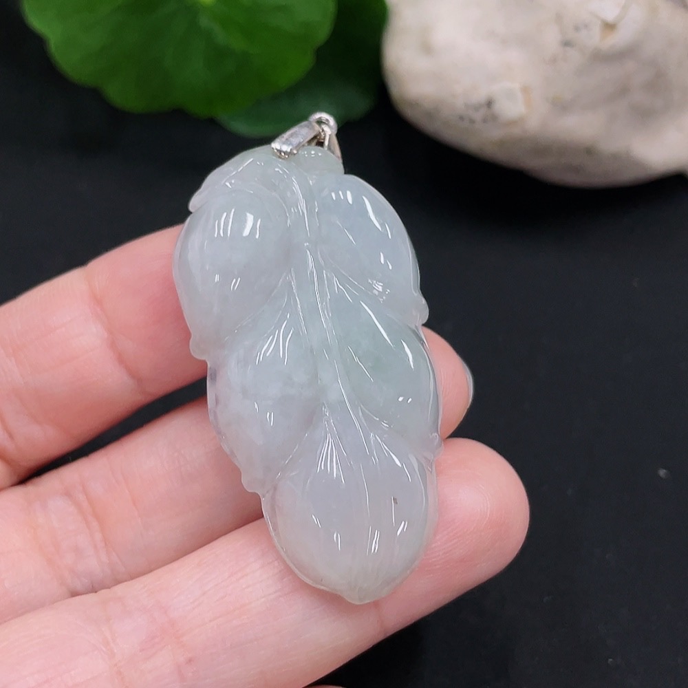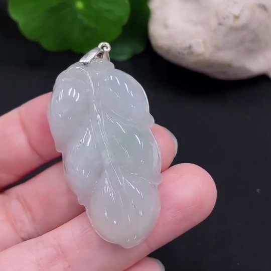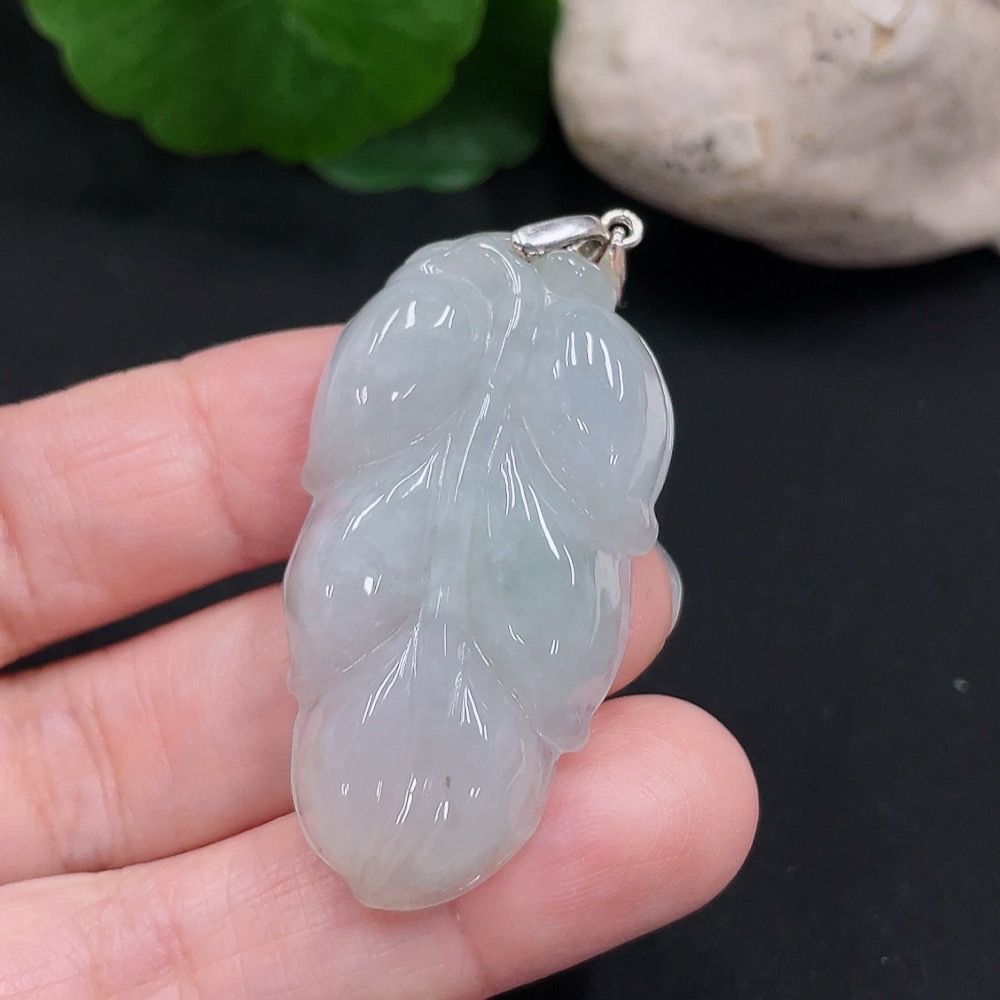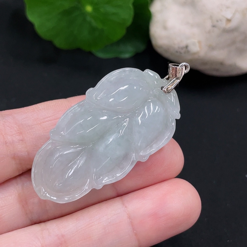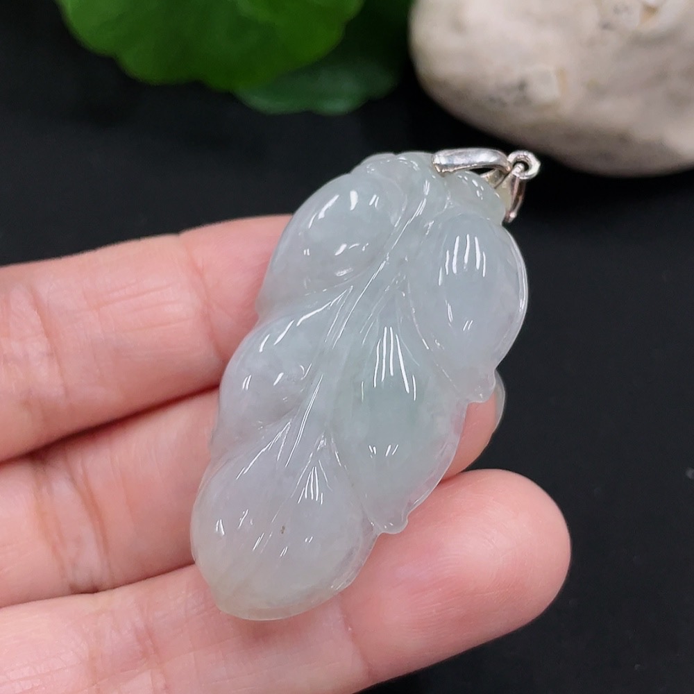 Jadeite Leaf Pendant Total Weight Approx. 13.3g (Non-Gold Inlaid)