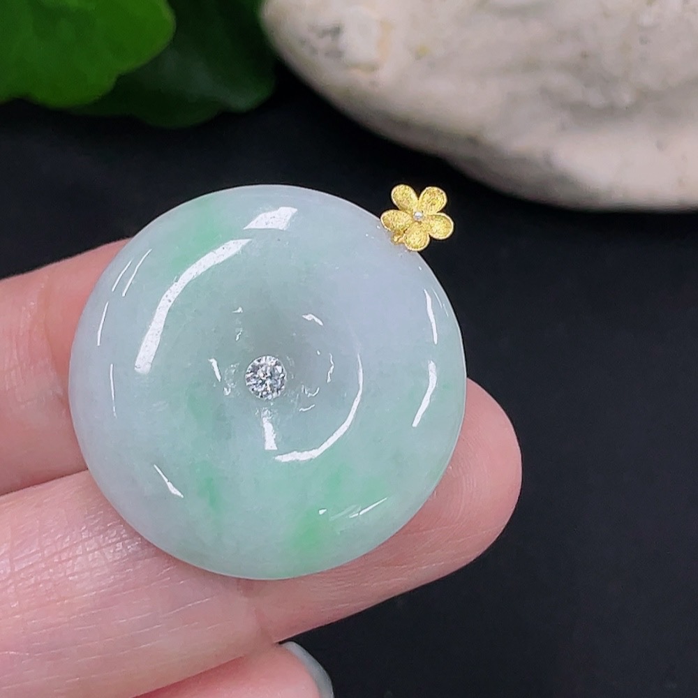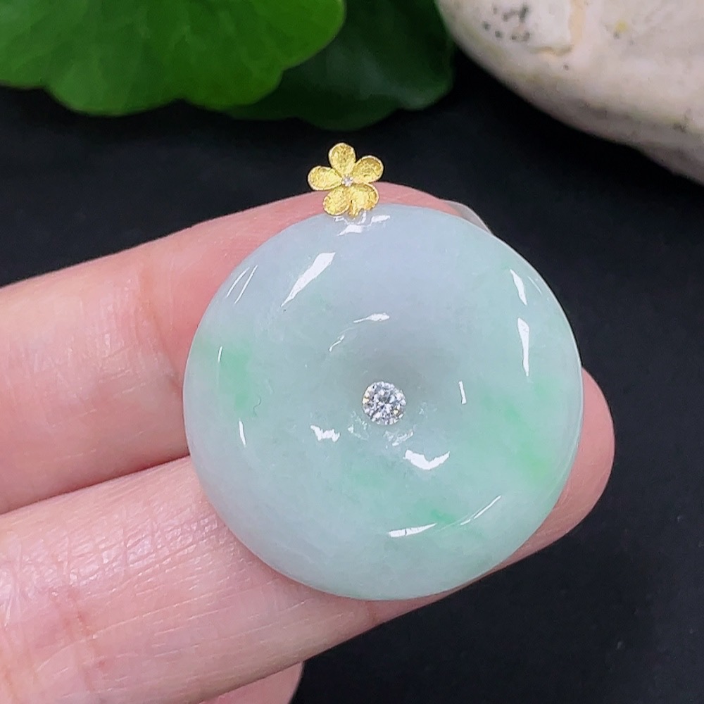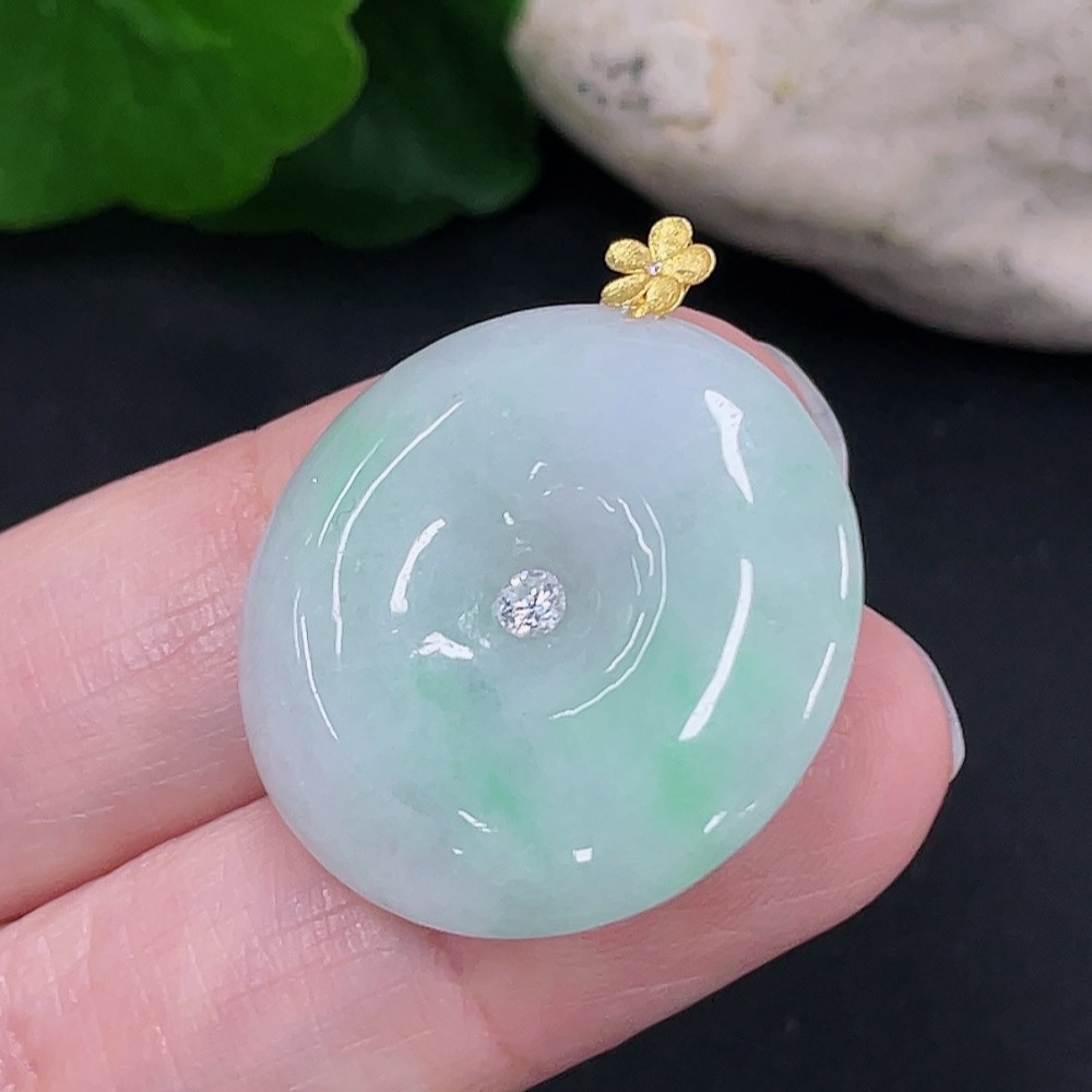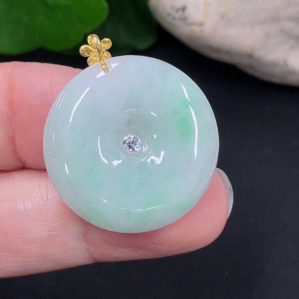 Jadeite Safety Buckle Pendant 18K Gold Total Weight Approx. 7g (Non-Diamond)