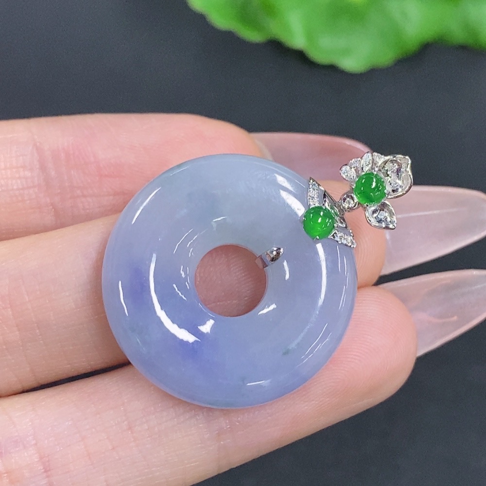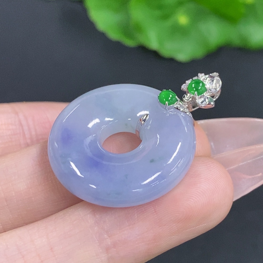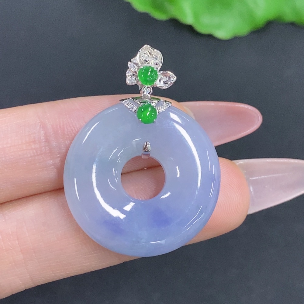 Jadeite Donut Pendant with 18K Gold Clasp, Total Weight Approximately 9.6g, Accented with Diamonds