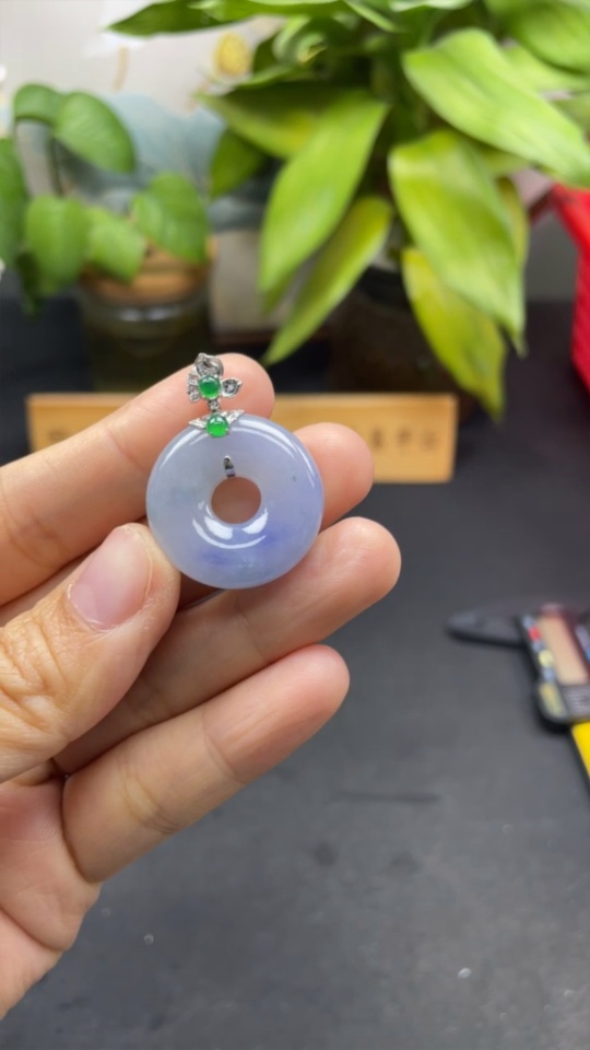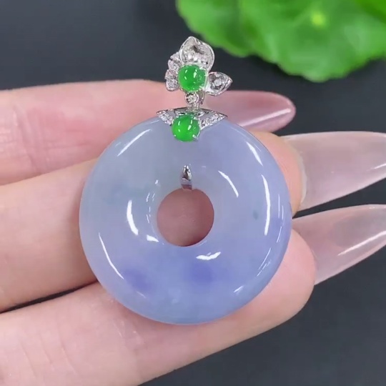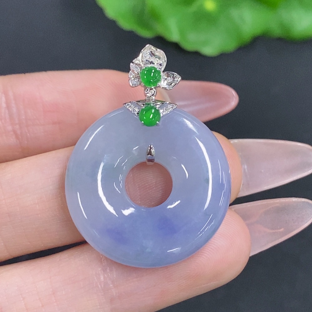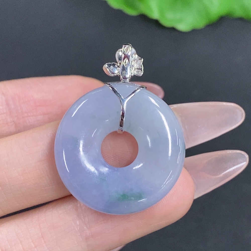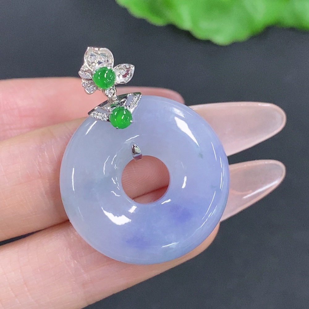 Jadeite Donut Pendant with 18K Gold Clasp, Total Weight Approximately 9.6g, Accented with Diamonds