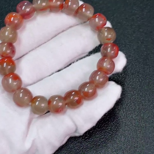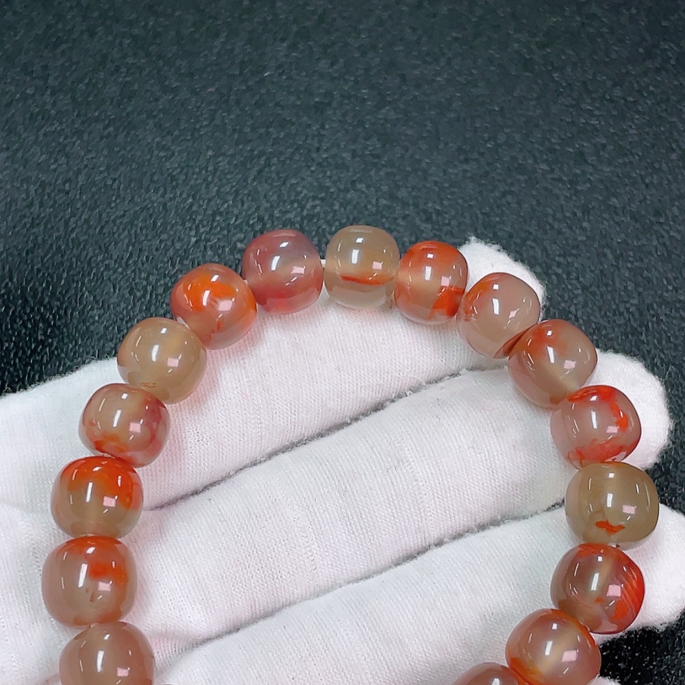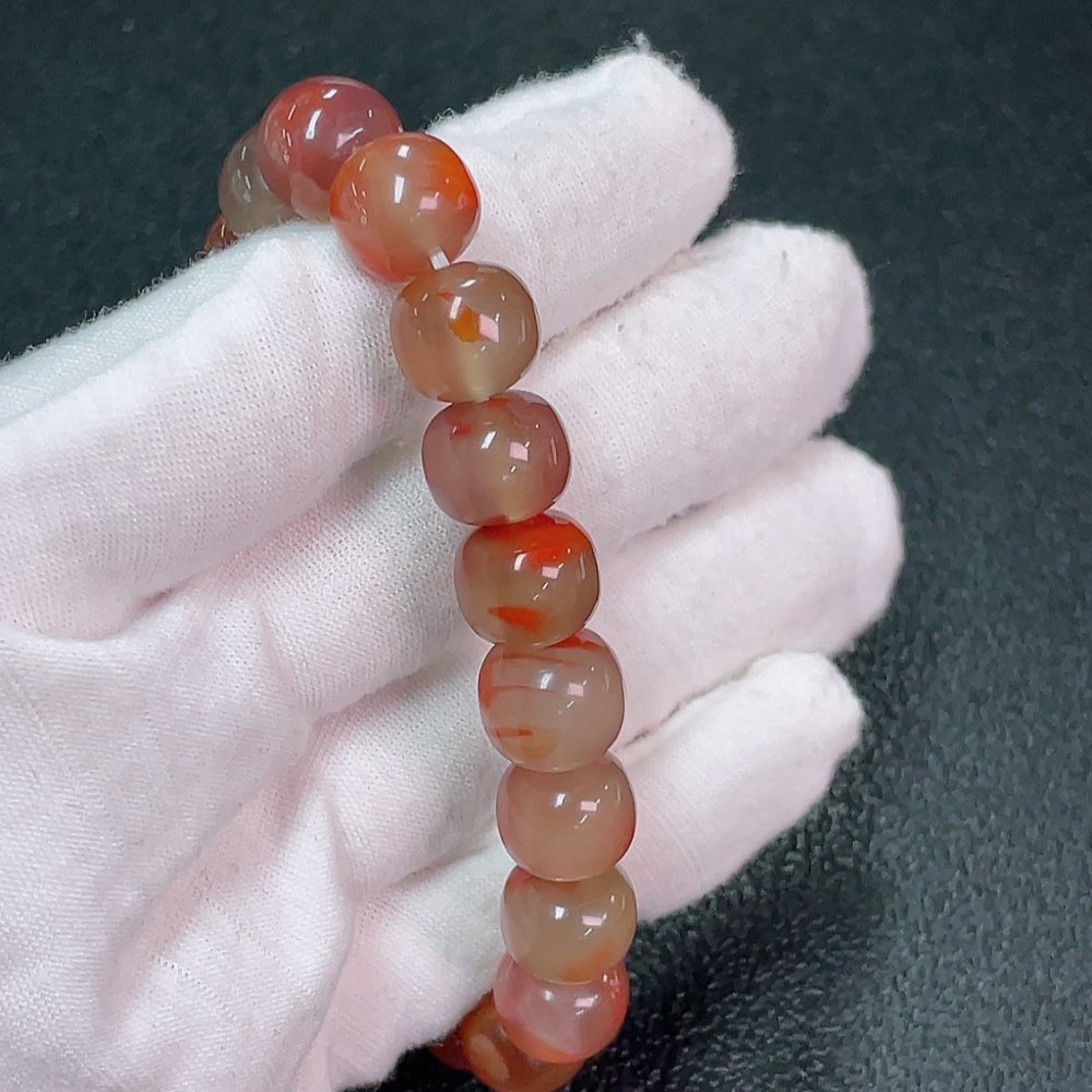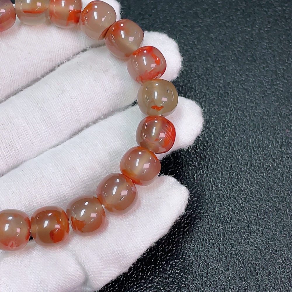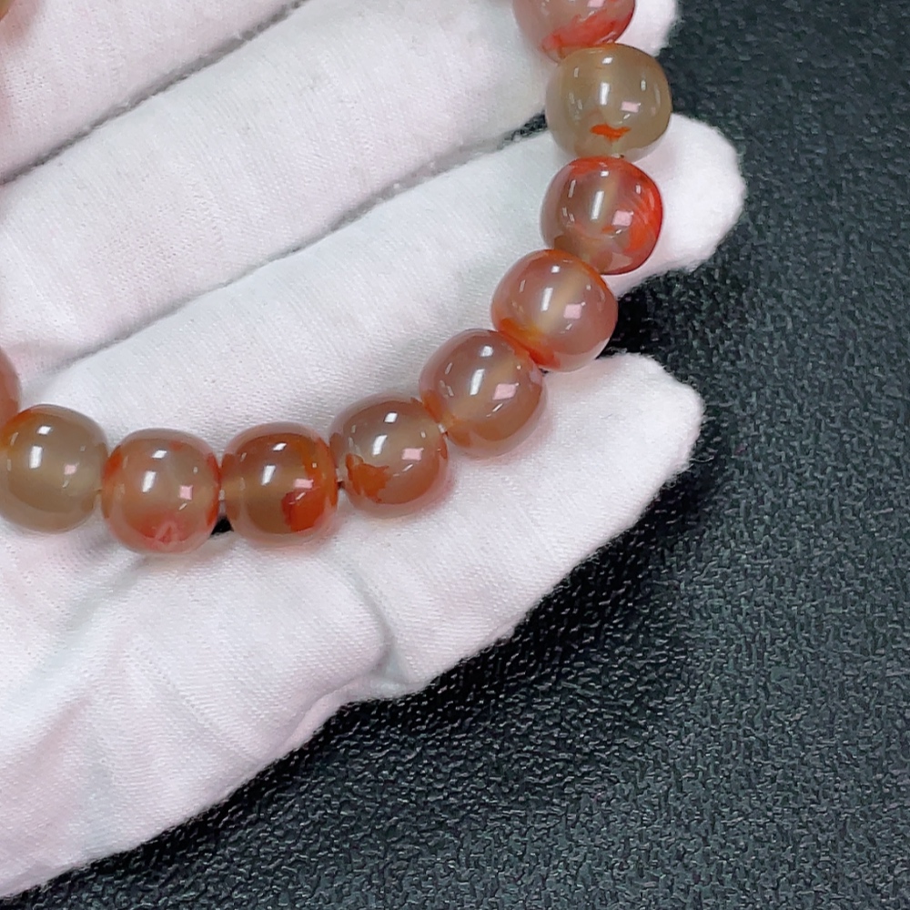 Red Agate Bracelet with Visible Organic Matter, Total Weight Approx. 37.22g, Size About 10.8mm
