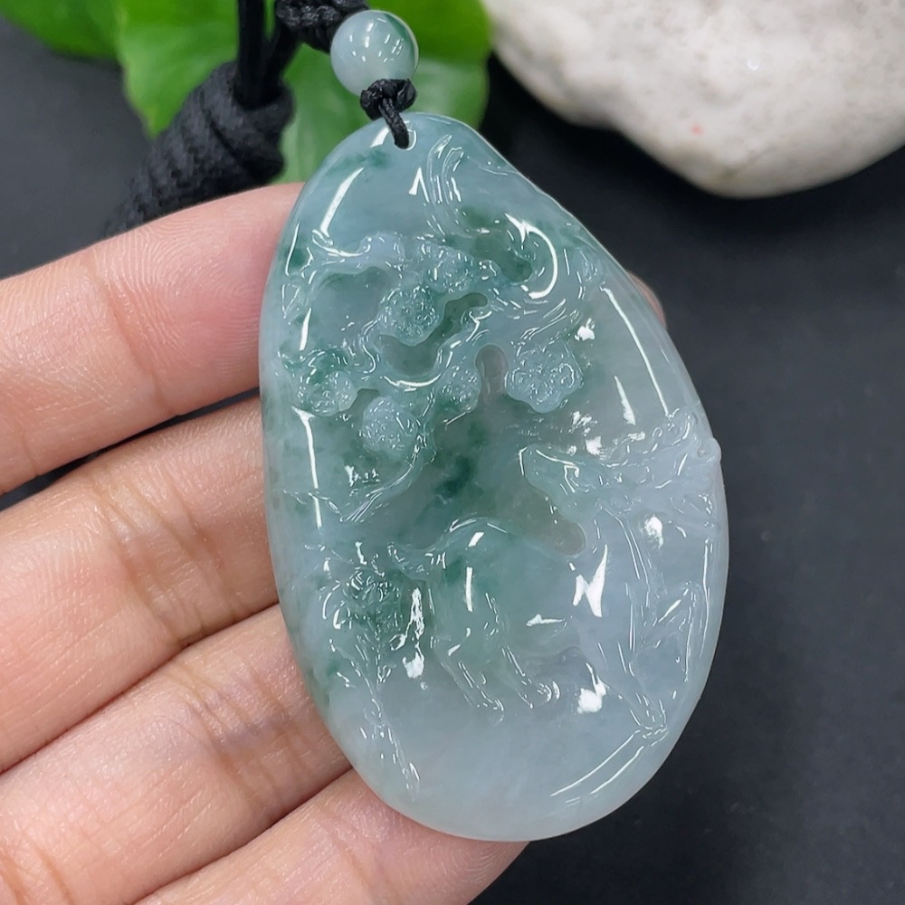 Jadeite Deer Pendant Total Weight Approx. 20g (including rope weight)