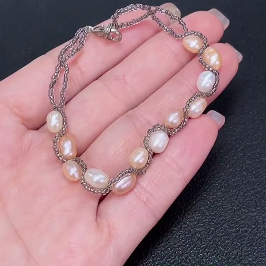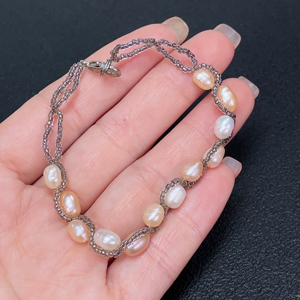 Pearl Bracelet with Non-Natural Accent Stones, Non-Gold, Total Weight Approx. 4.43g, Stone Size Around 5mm