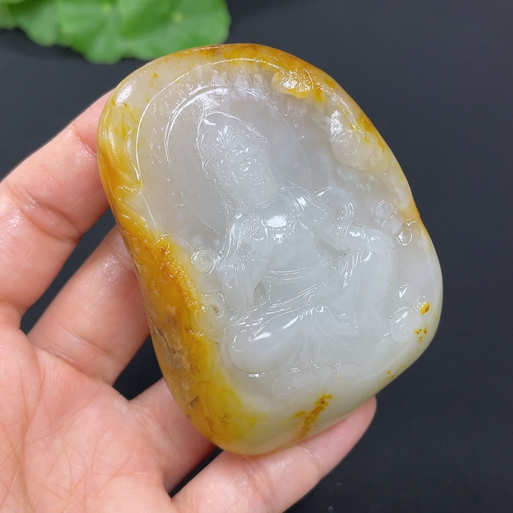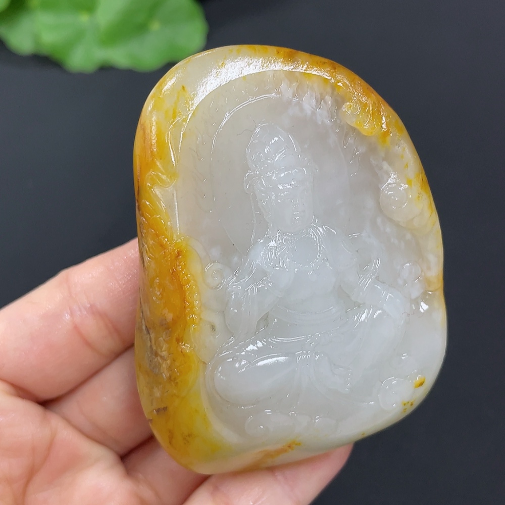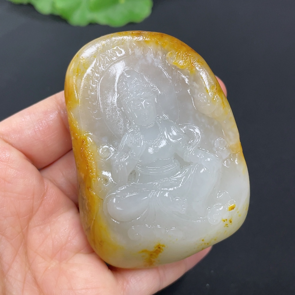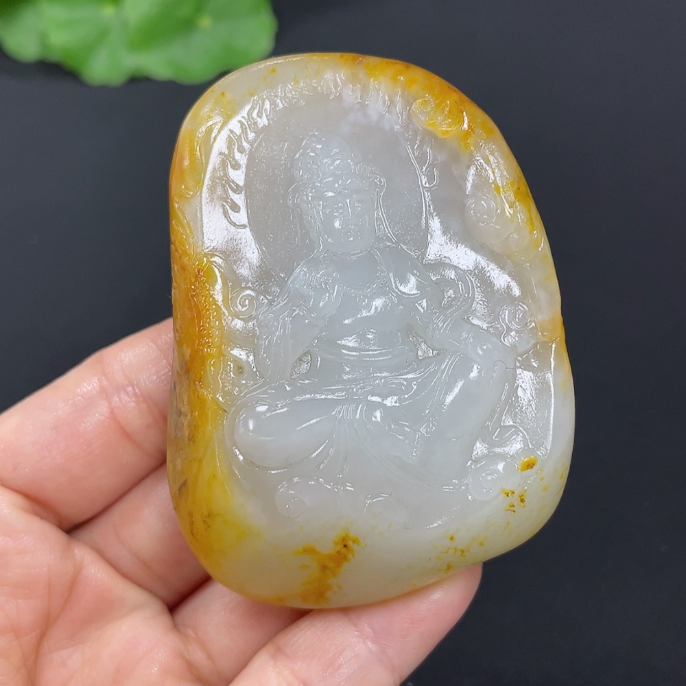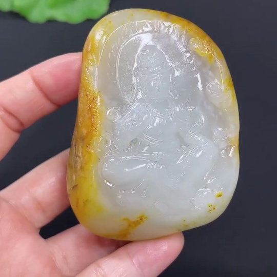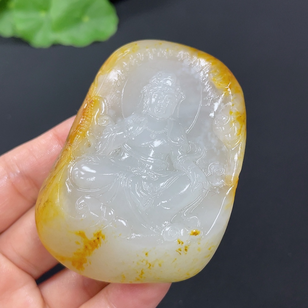 Hetian Jade Pendant Guanyin Total weight about 121.8g Undetermined skin color formation Contains other mineral components