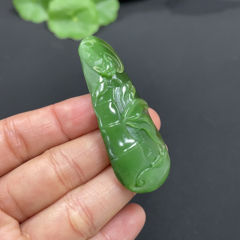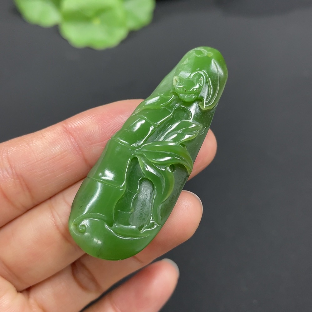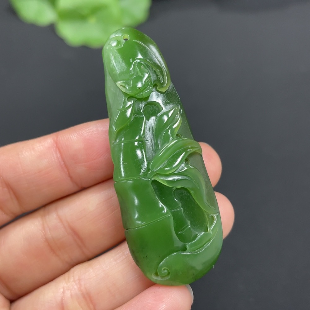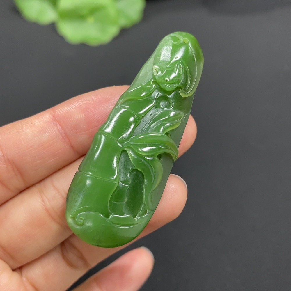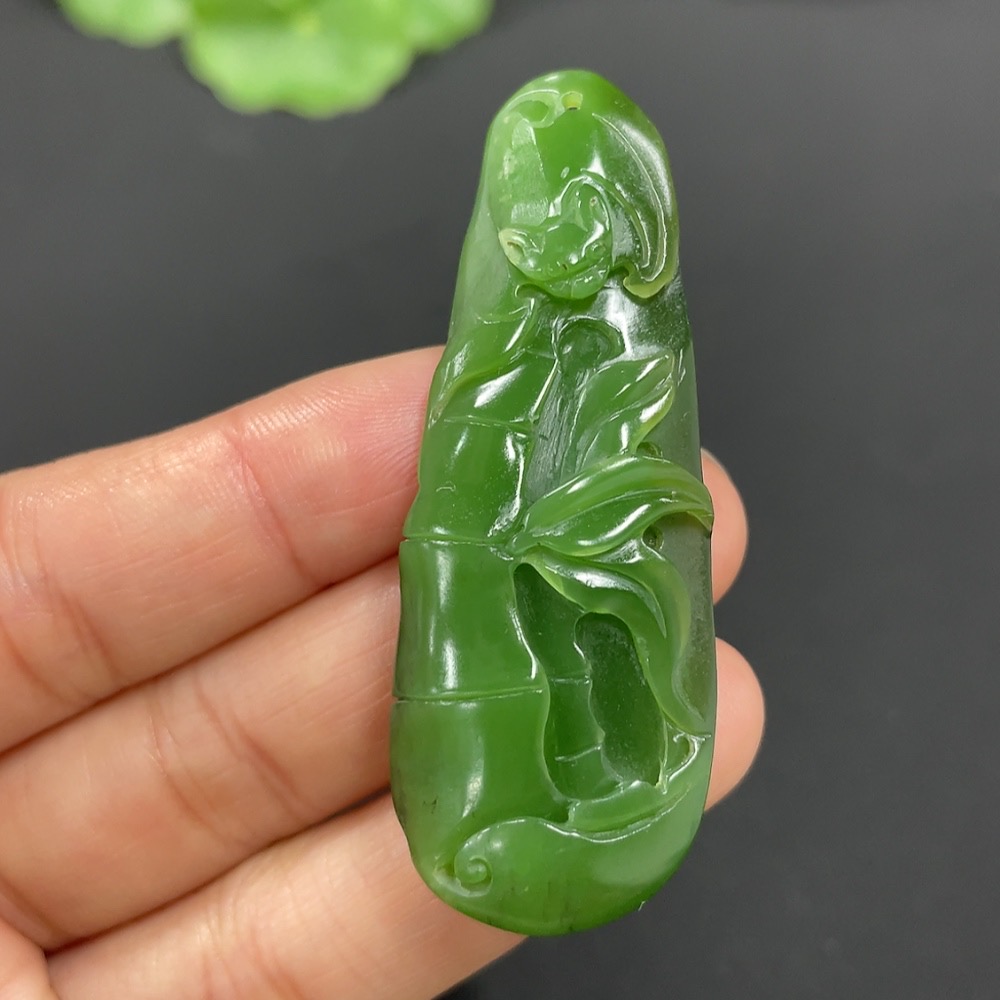 Hetian Jade Pendant, Bamboo Announcing Peace, Total Weight Approx. 12.6g