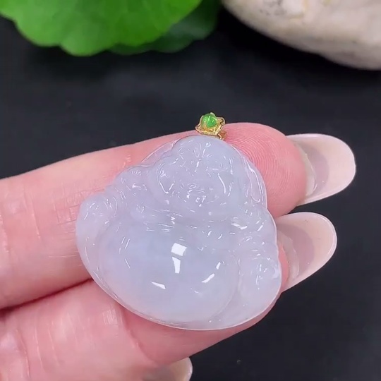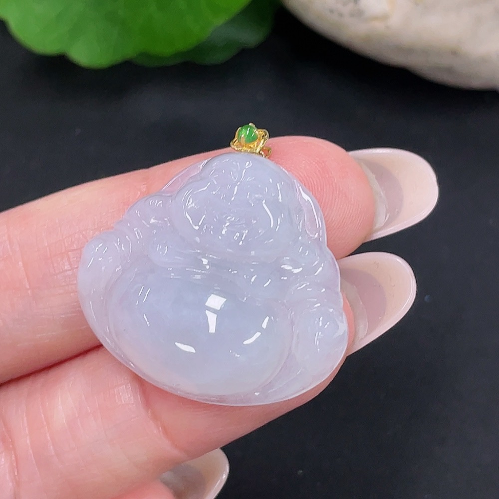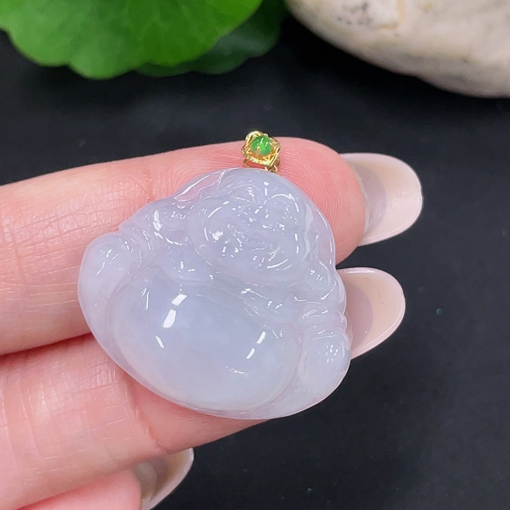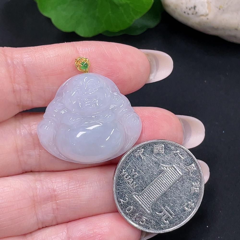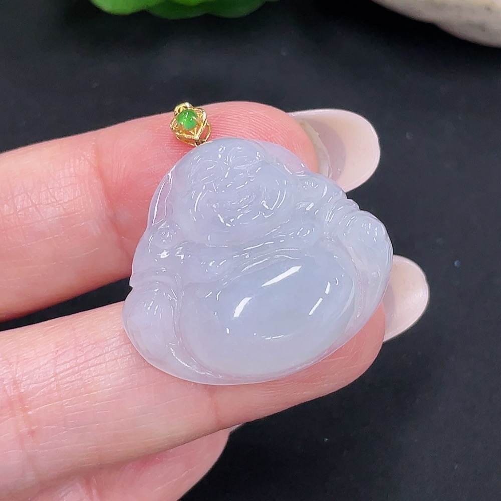 Jadeite Buddha Pendant 18K Gold Total Weight Approx. 6.7g