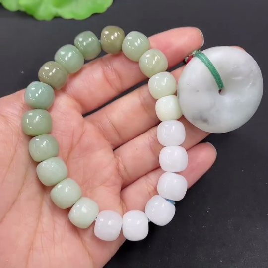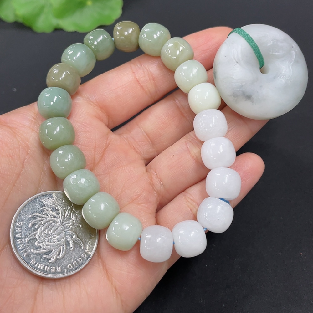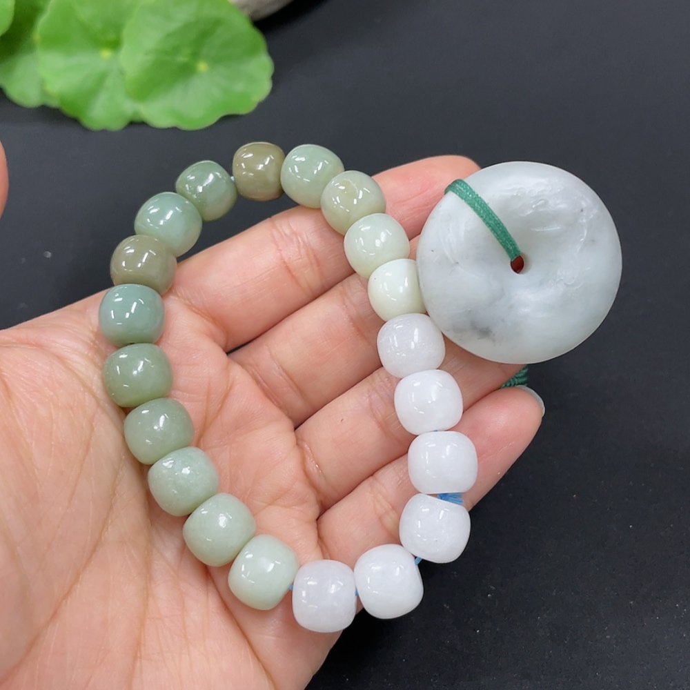 Hetian Jade Pendant, Peace Buckle, Hand String 10mm Approx., Total Weight (Incl. String) 51.4g, Containing Other Mineral Components