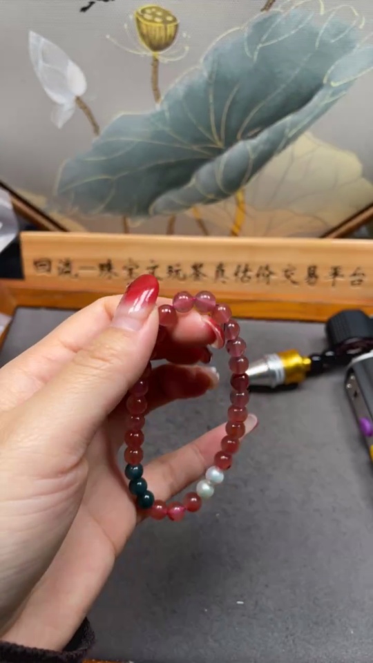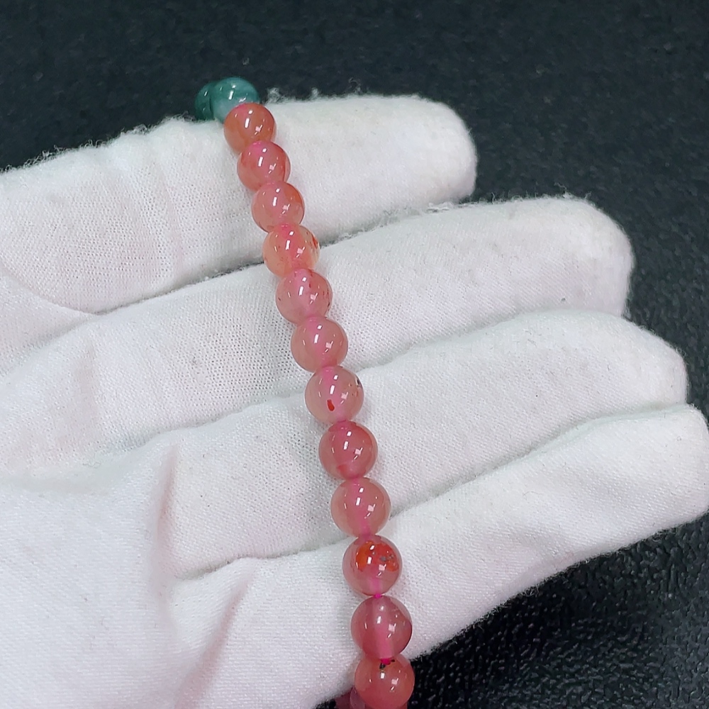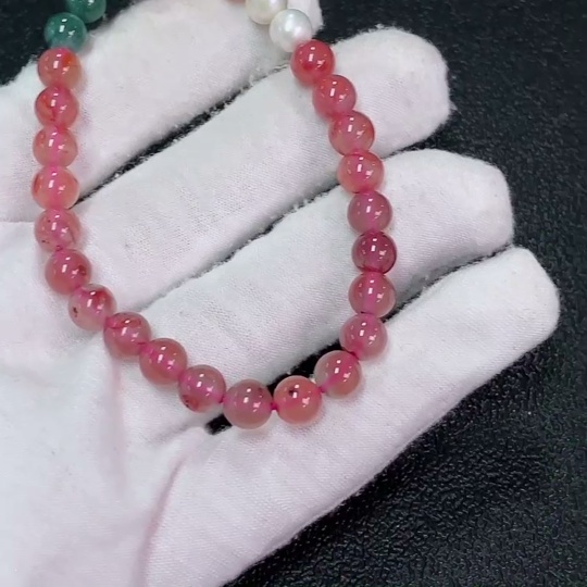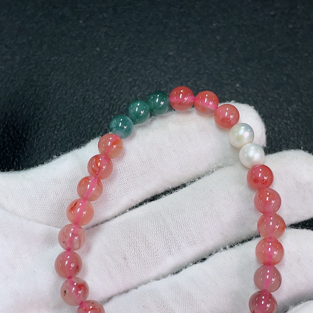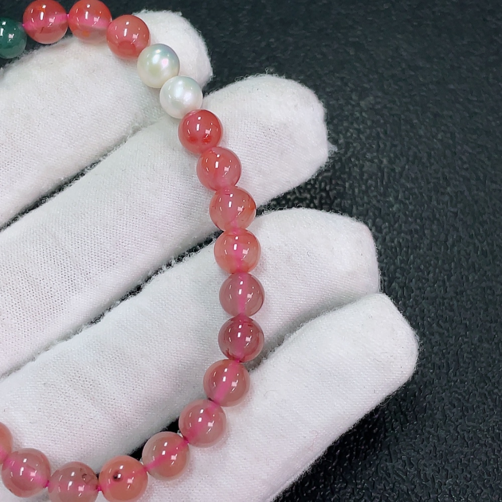 South Red Agate Bracelet with Pearl and Jadeite, Total Weight Approx. 11.31g, Size About 6.5mm