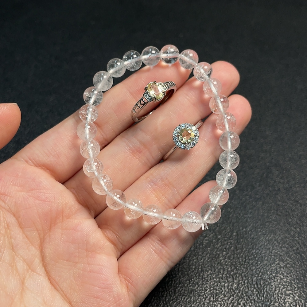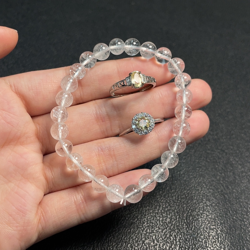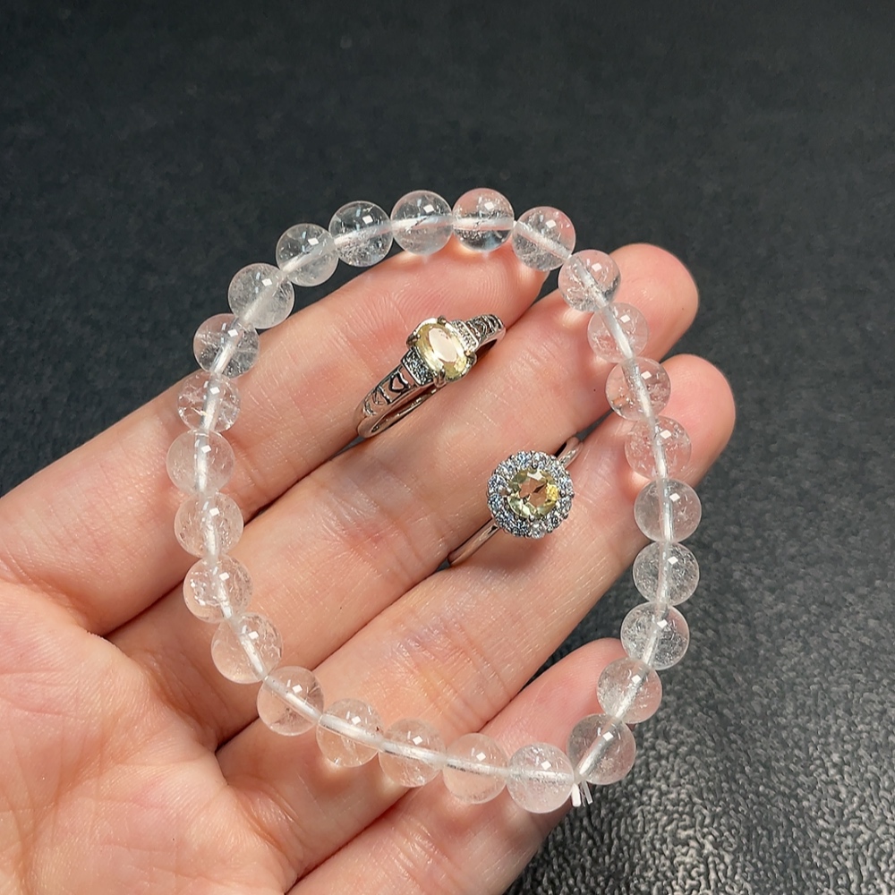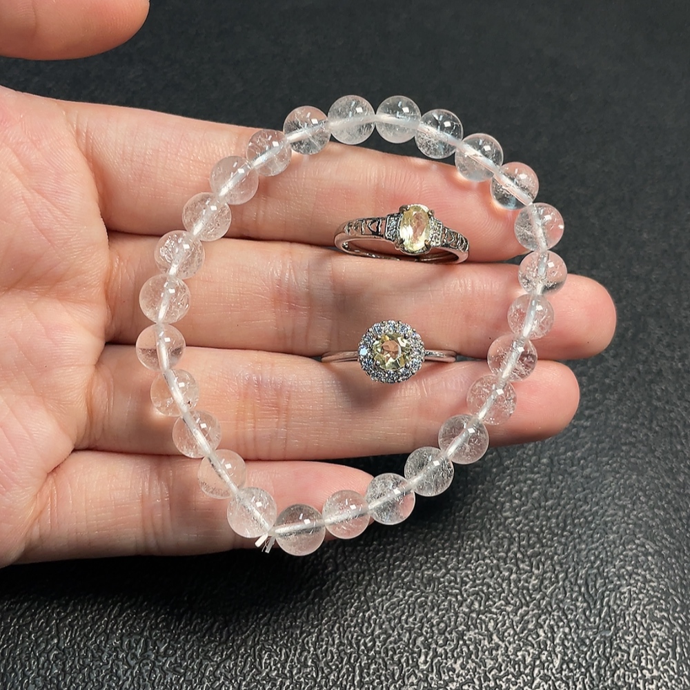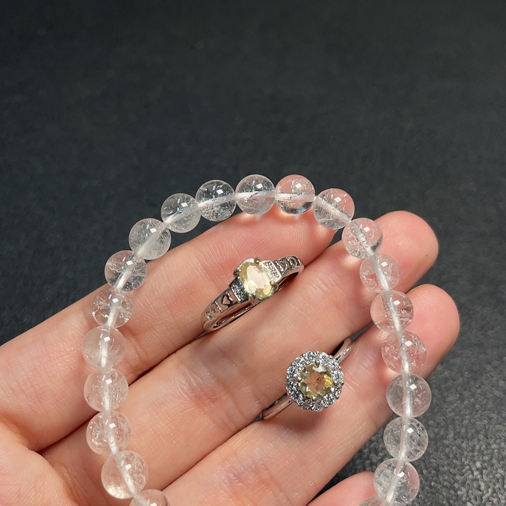 Crystal Ring + Bracelet Non-Gold Adjustable Total Weight Approx. 13.72g Sell as a Lot