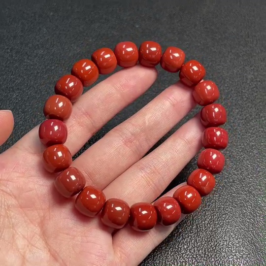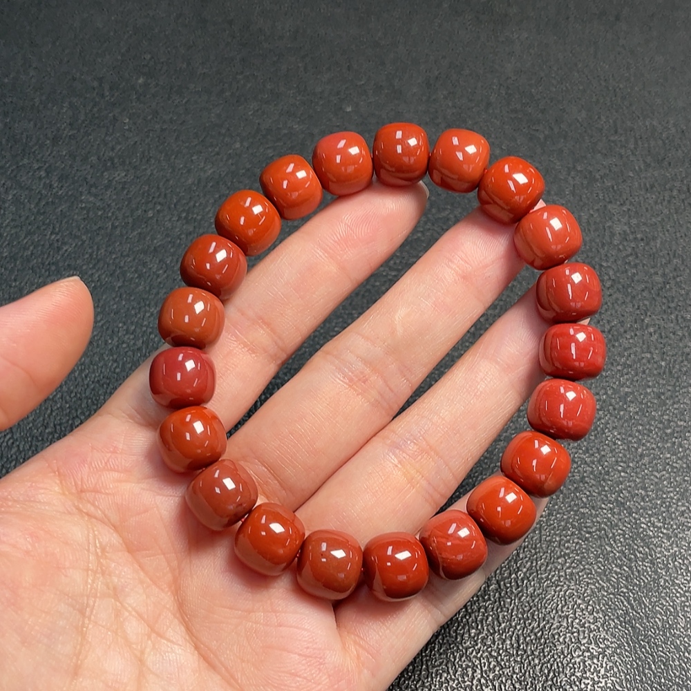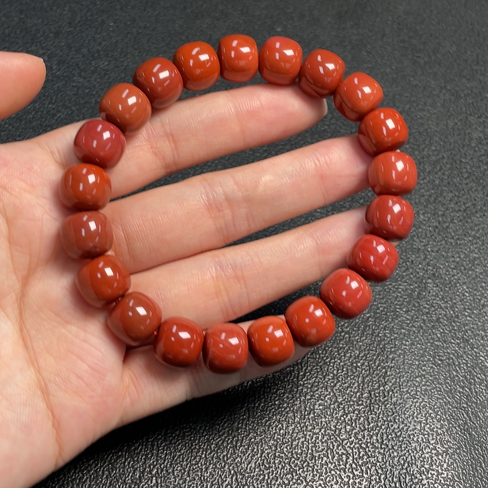 Red Agate Bracelet with Visible Organic Matter, Total Weight Approx. 40.39g, Size About 10.7mm