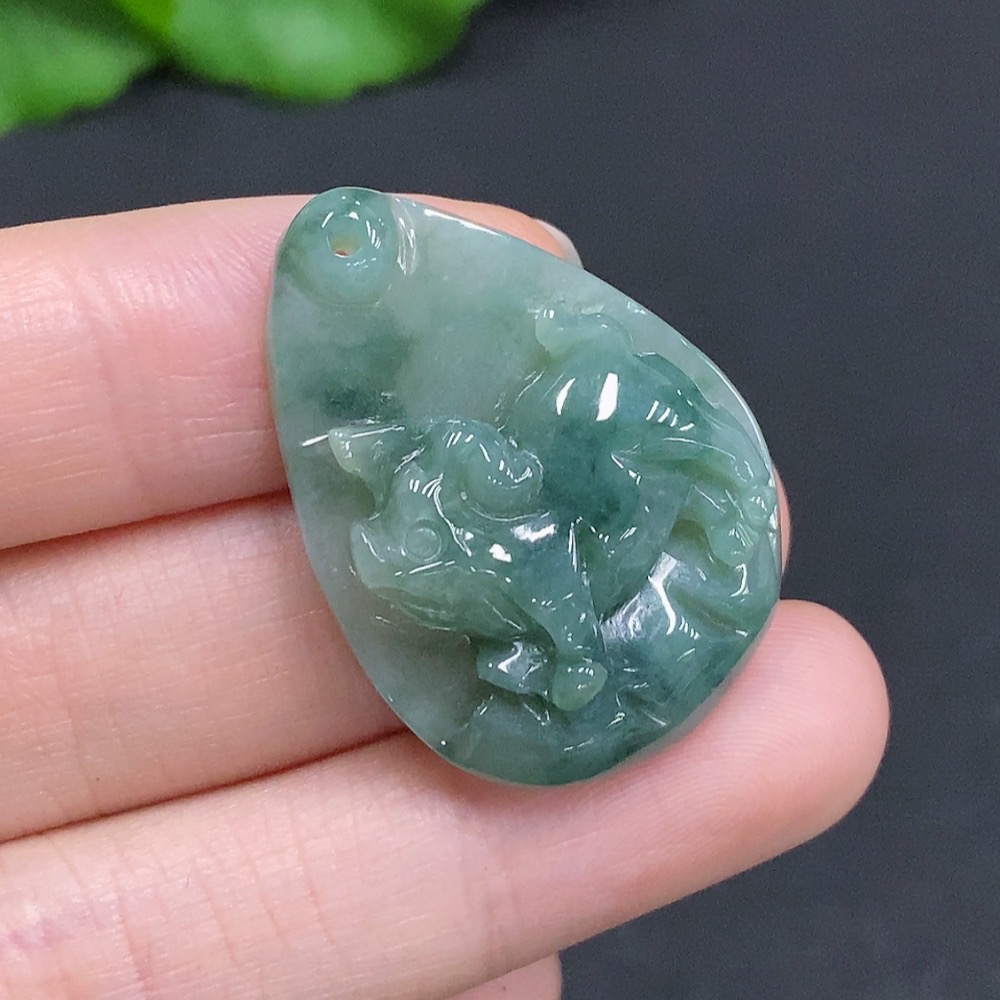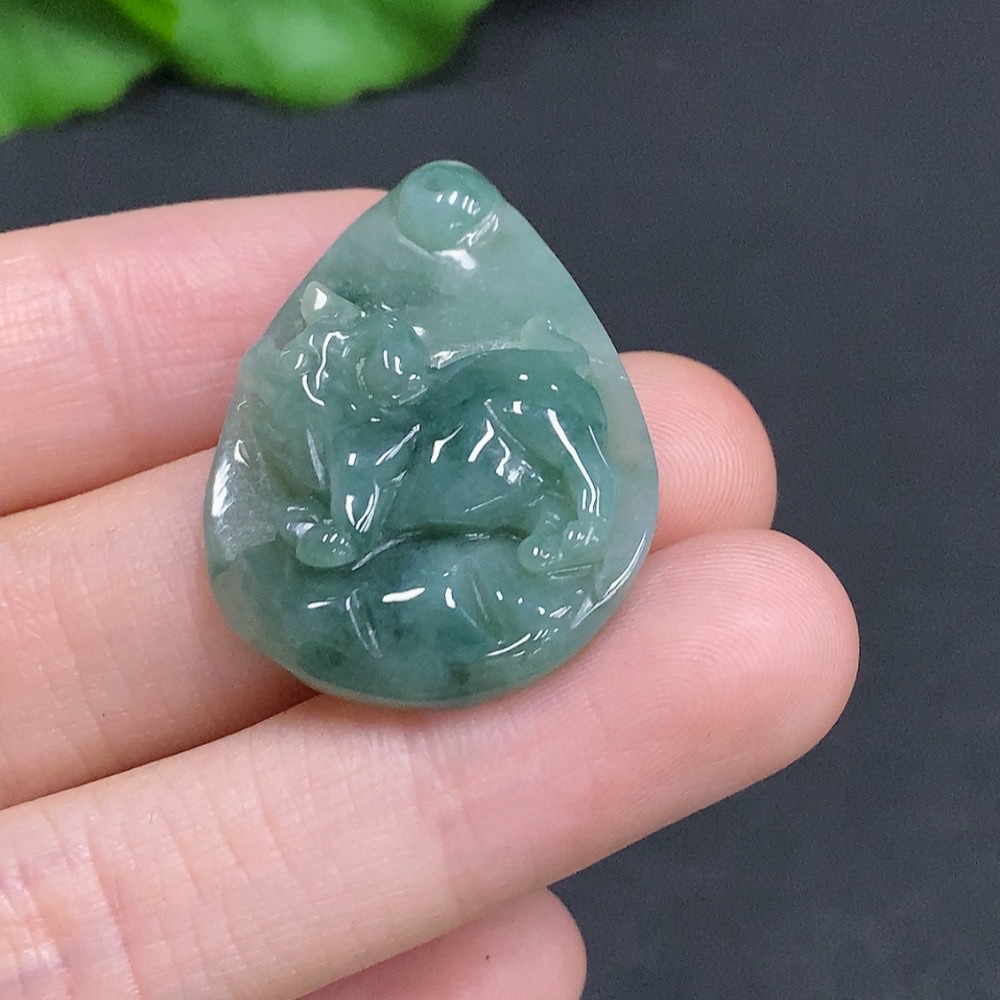 Jadeite Zodiac Pig Pendant, Total Weight Approx. 8g