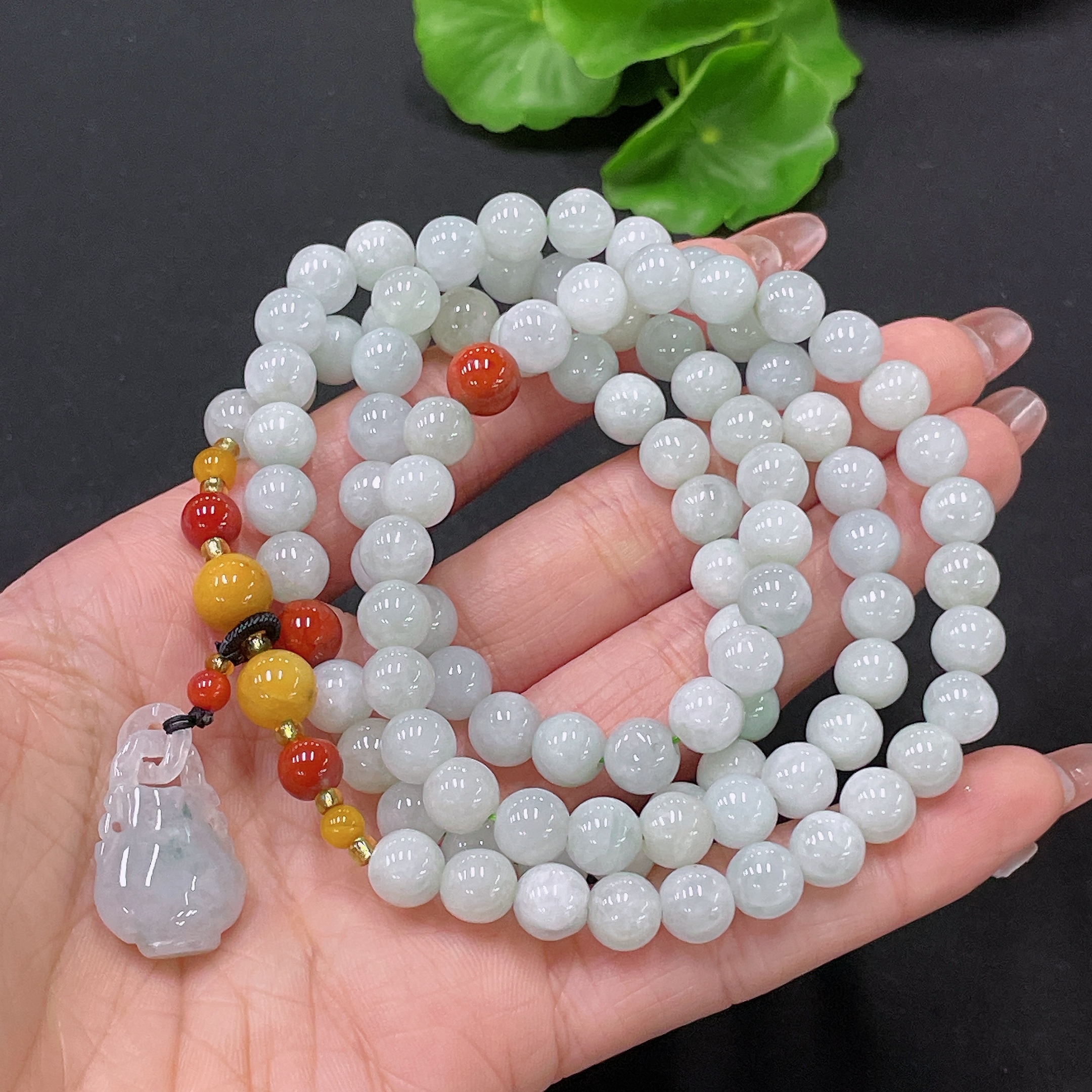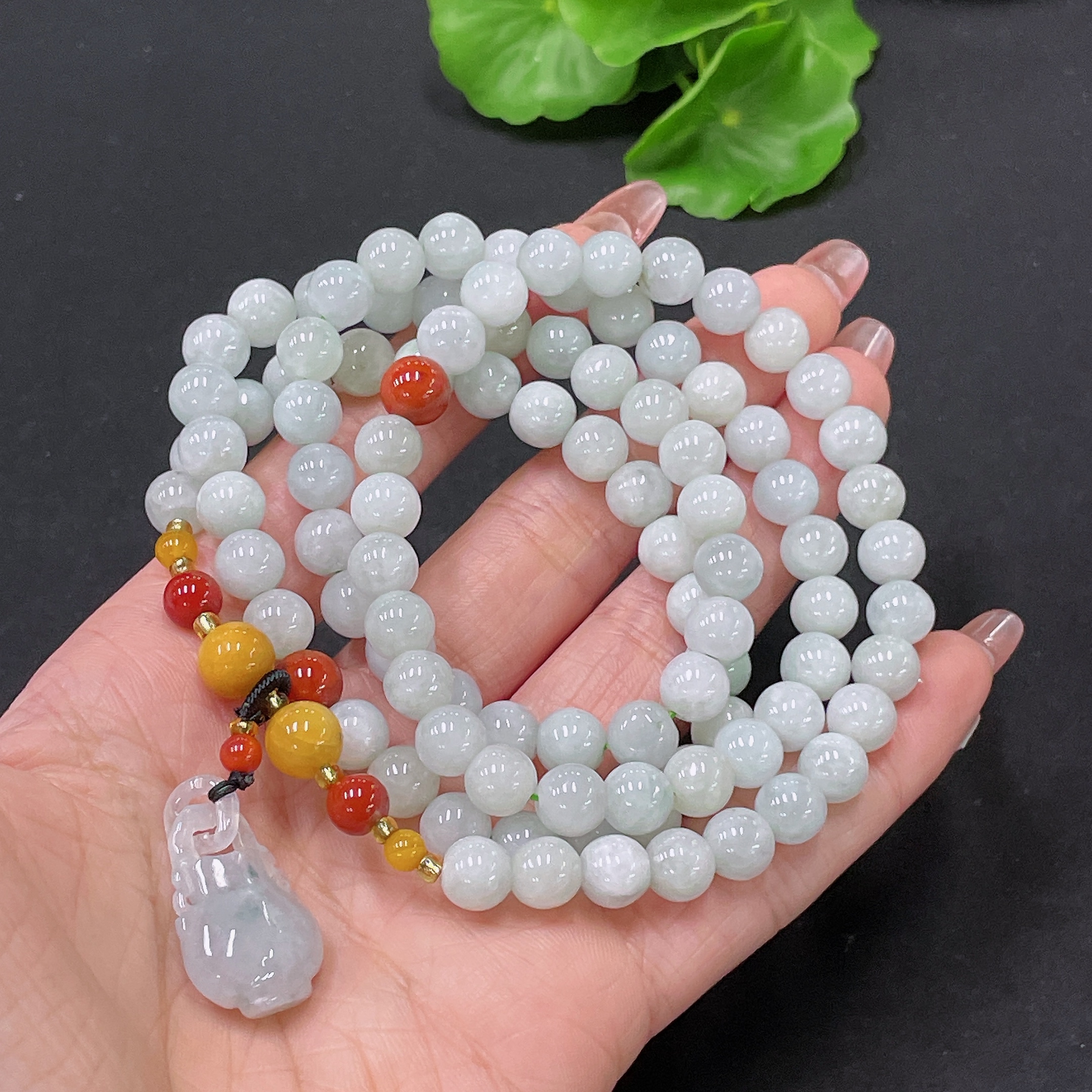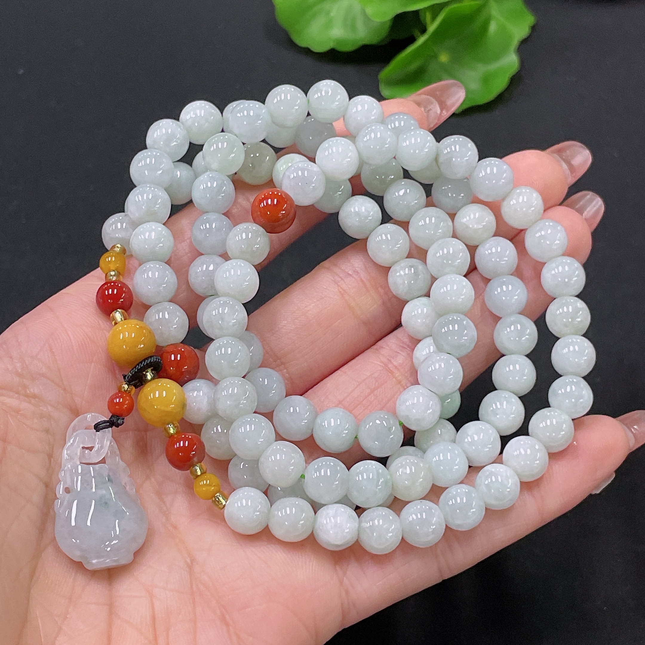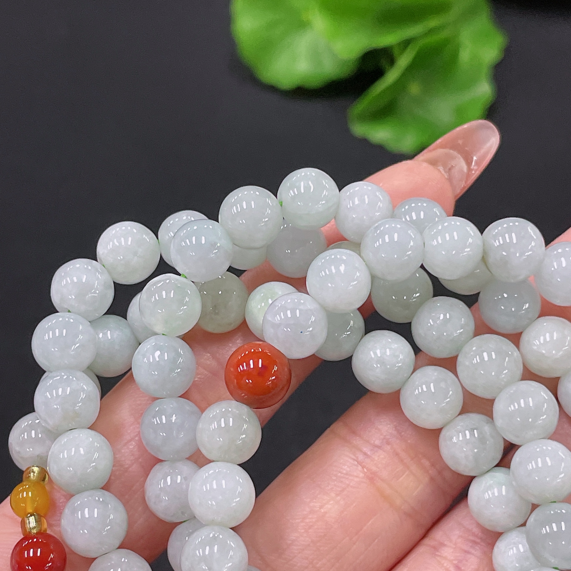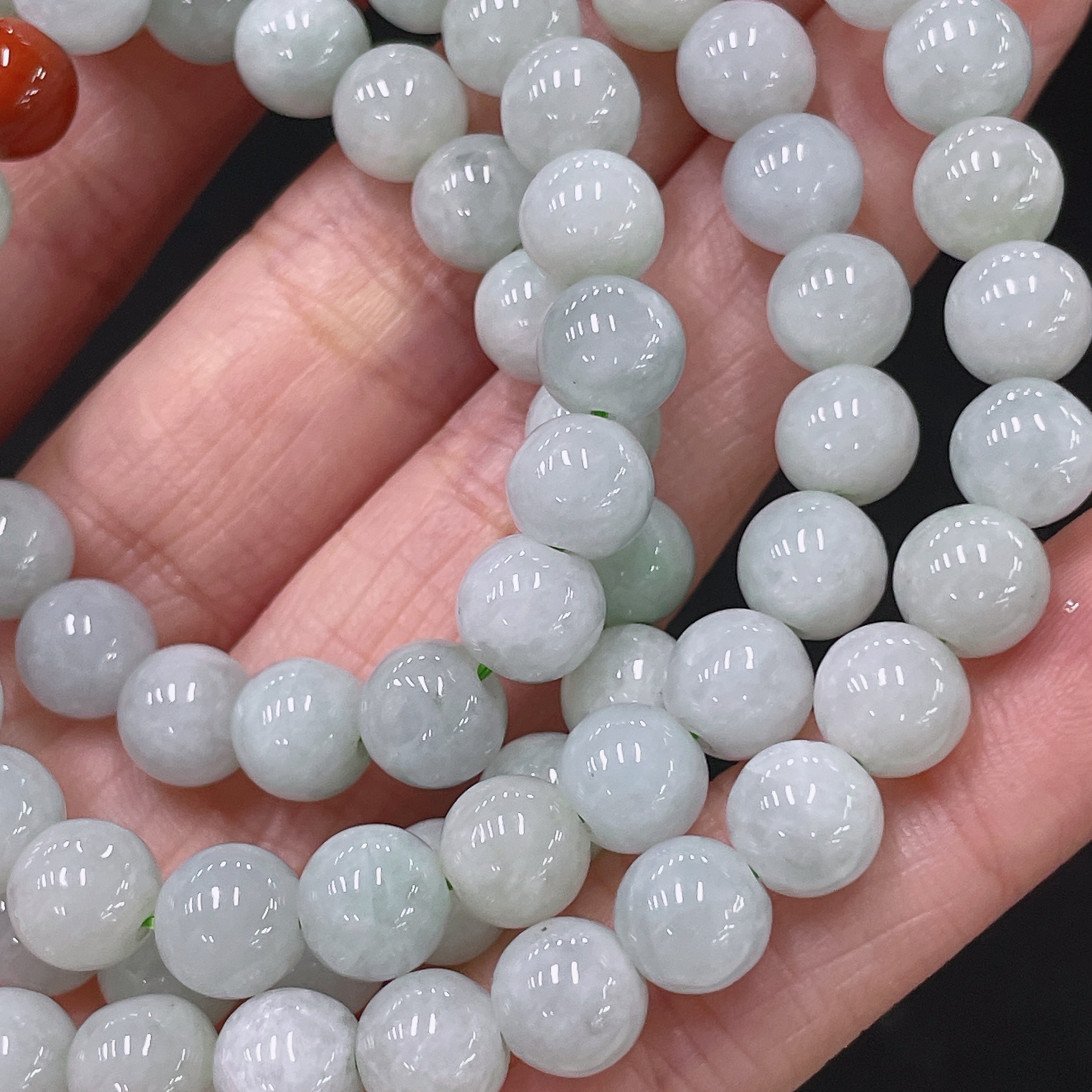 Jadeite Bead Necklace with Non-Grade A Beads, Total Weight Approximately 80.64g, Size About 7.5mm