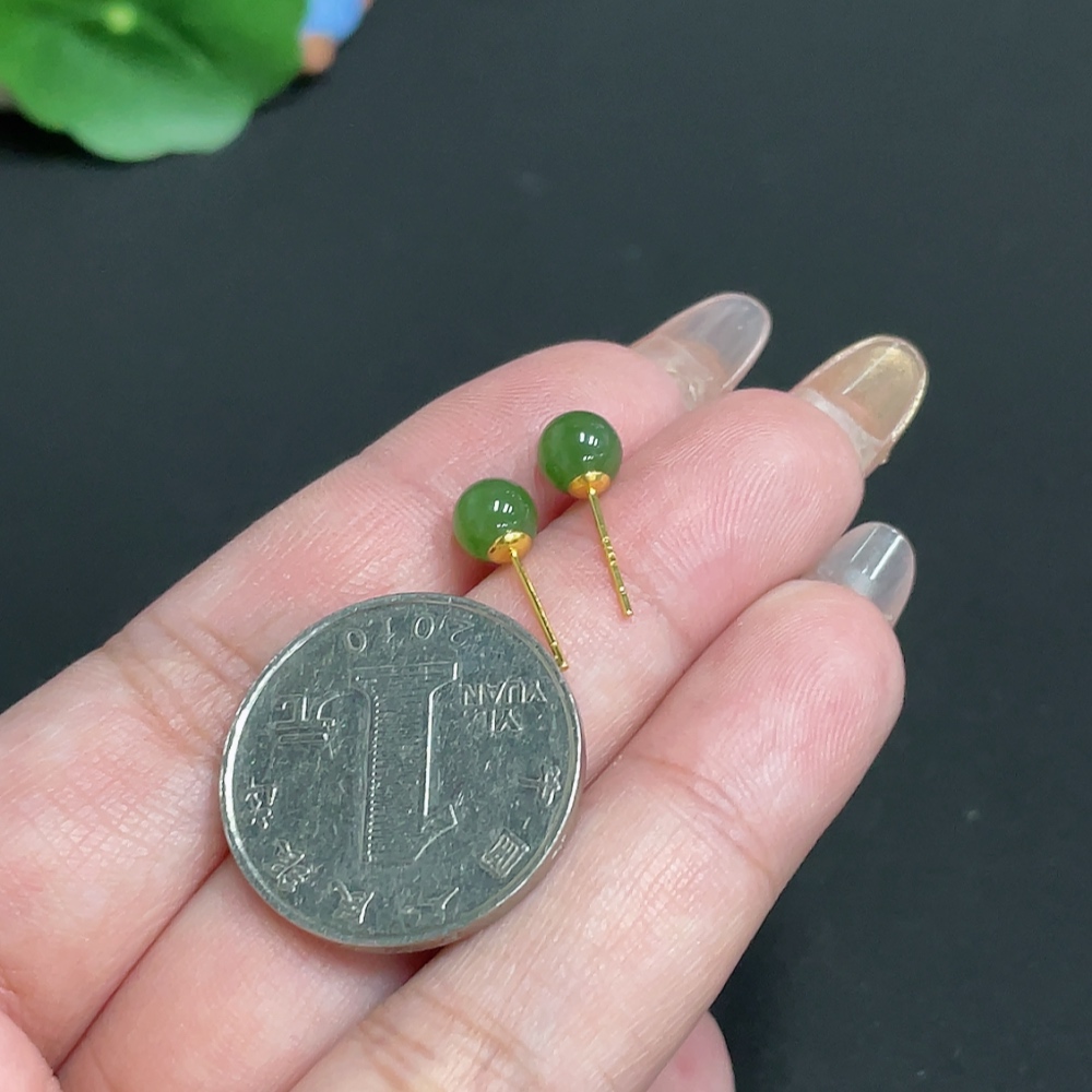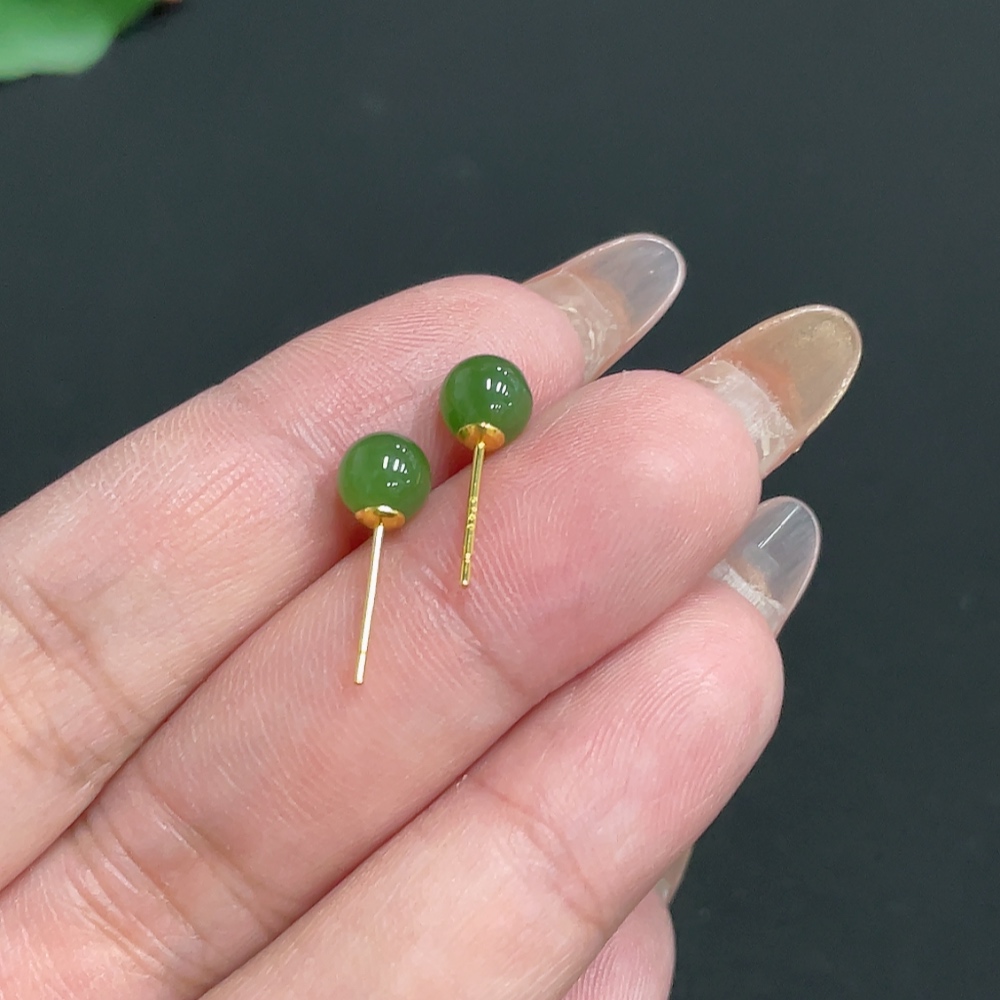 Hetian Jade Inlaid Earrings Card 5.9mm Approx. Total Weight 0.8g Non-Gold