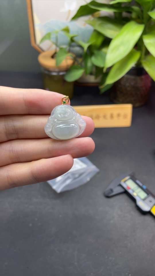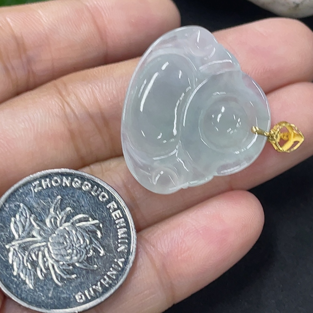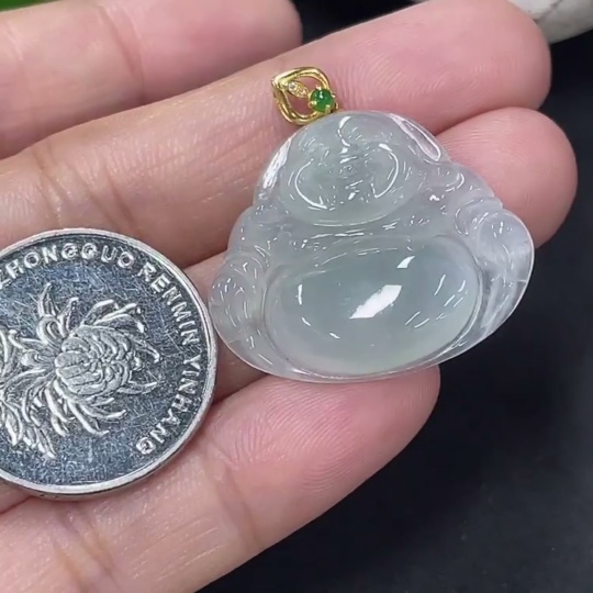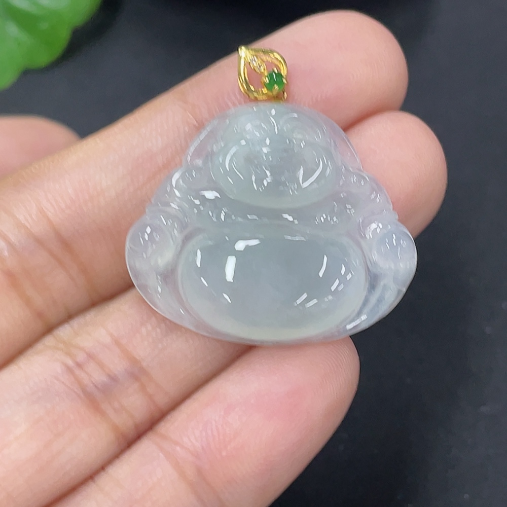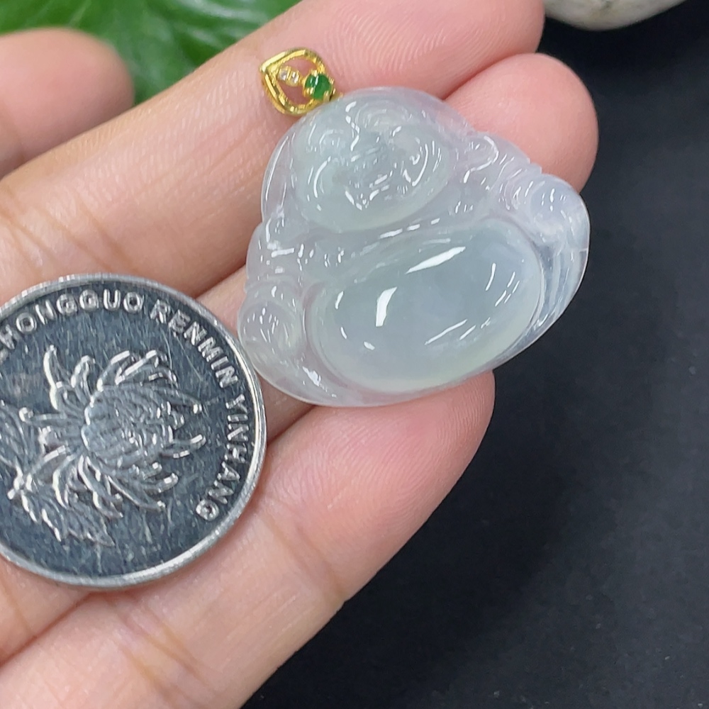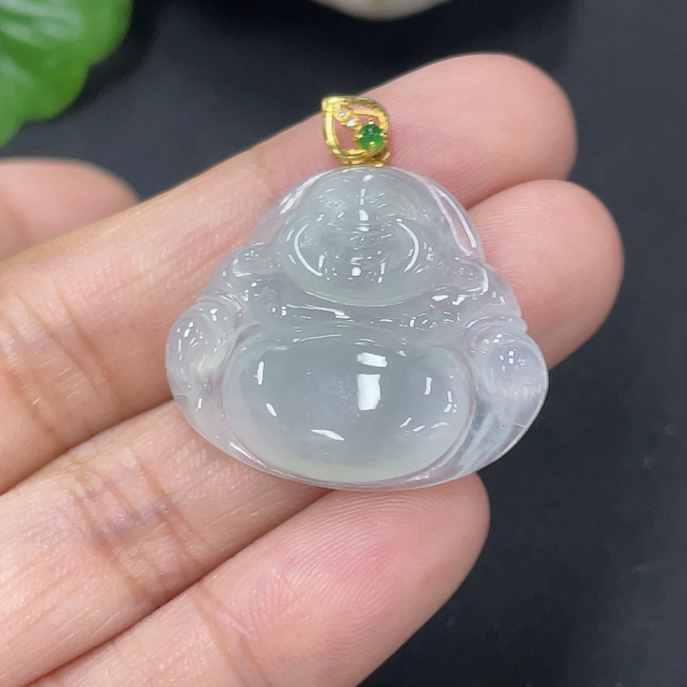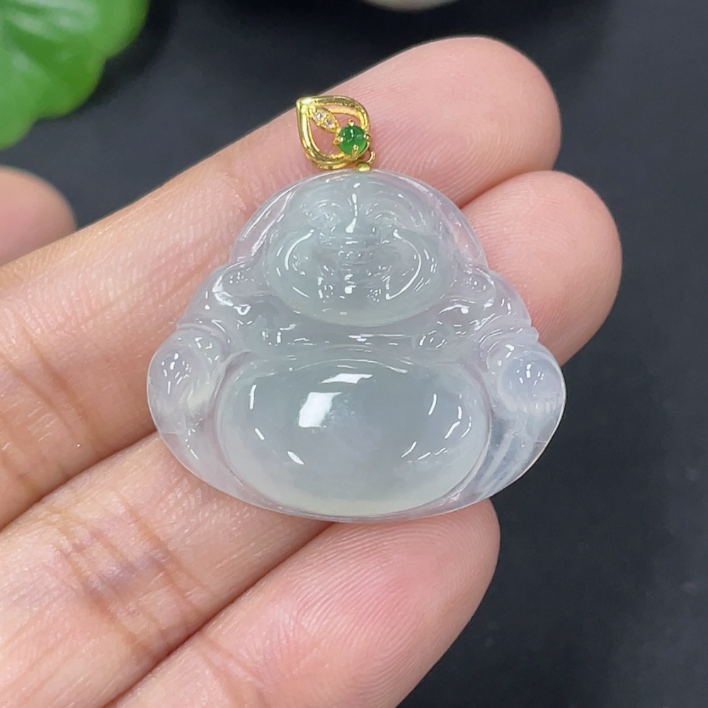 Jadeite Buddha Pendant 18k Total Weight Approx. 4.35g with Diamond Accents