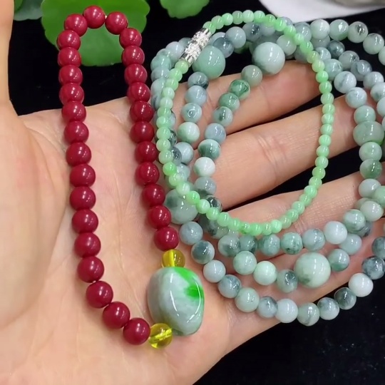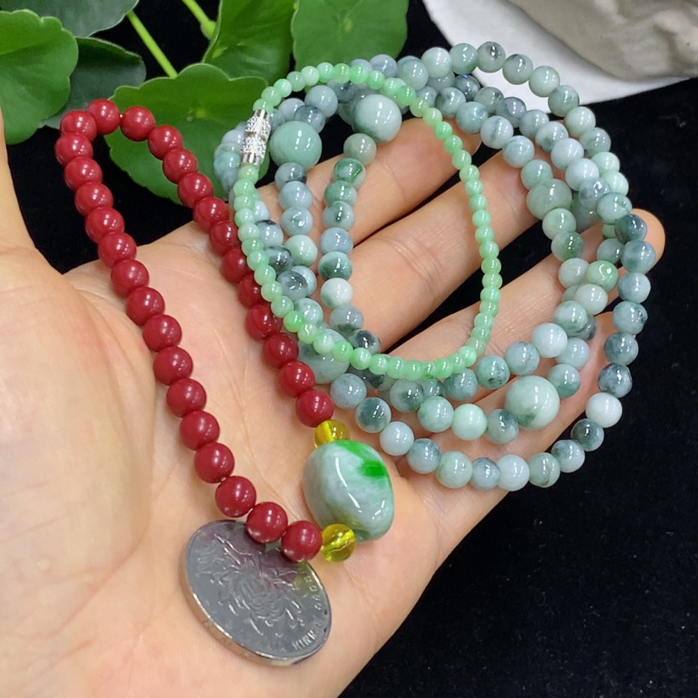 Jadeite Bead Necklace (with other mineral components)/Bracelet (Non-Type A chain) Sell as a Lot Non-Gold