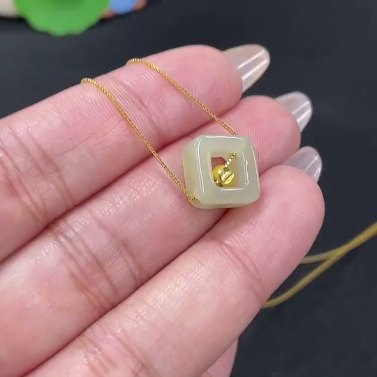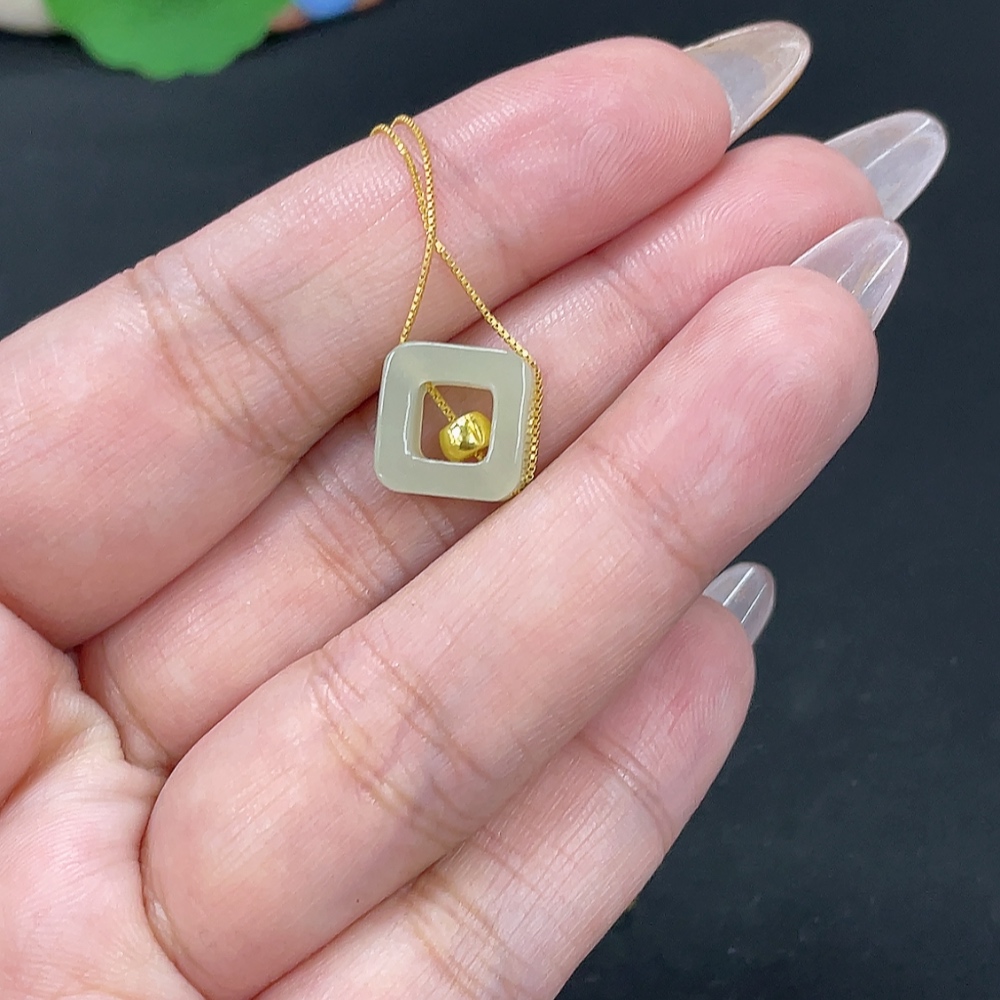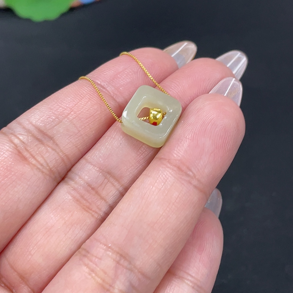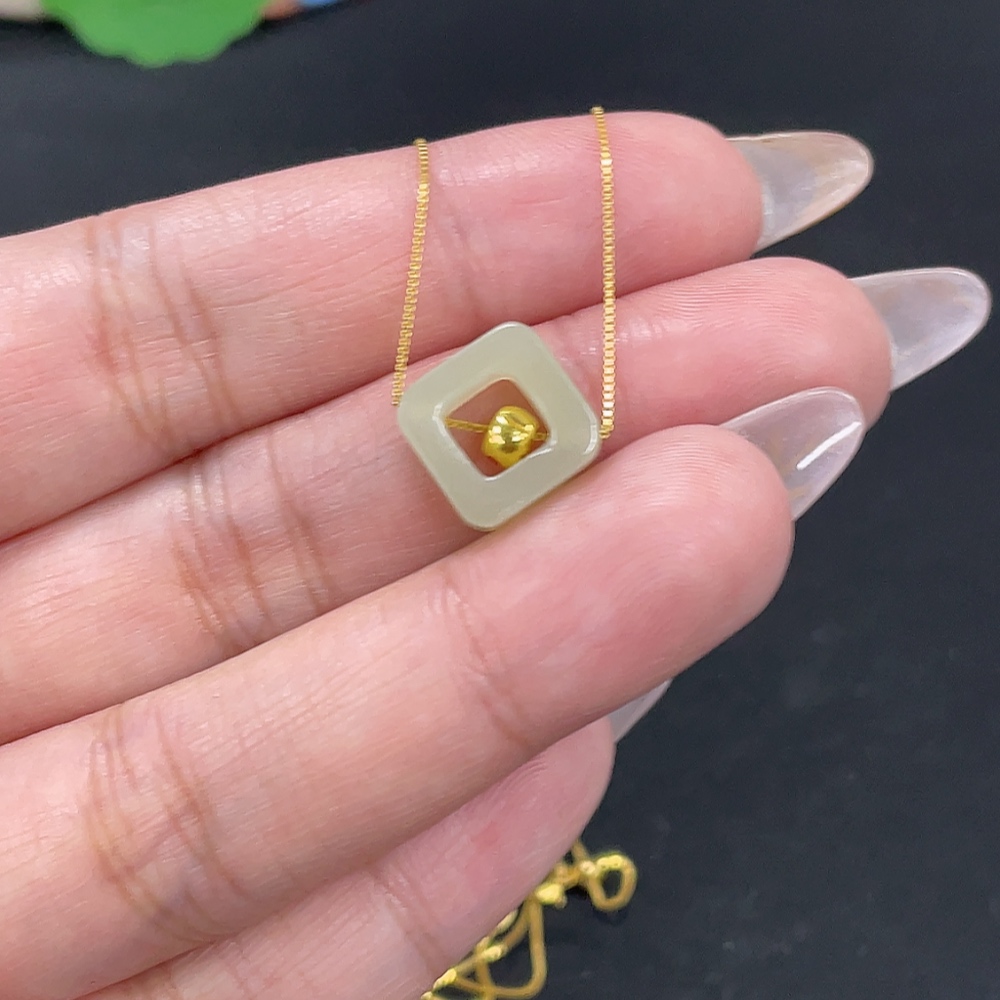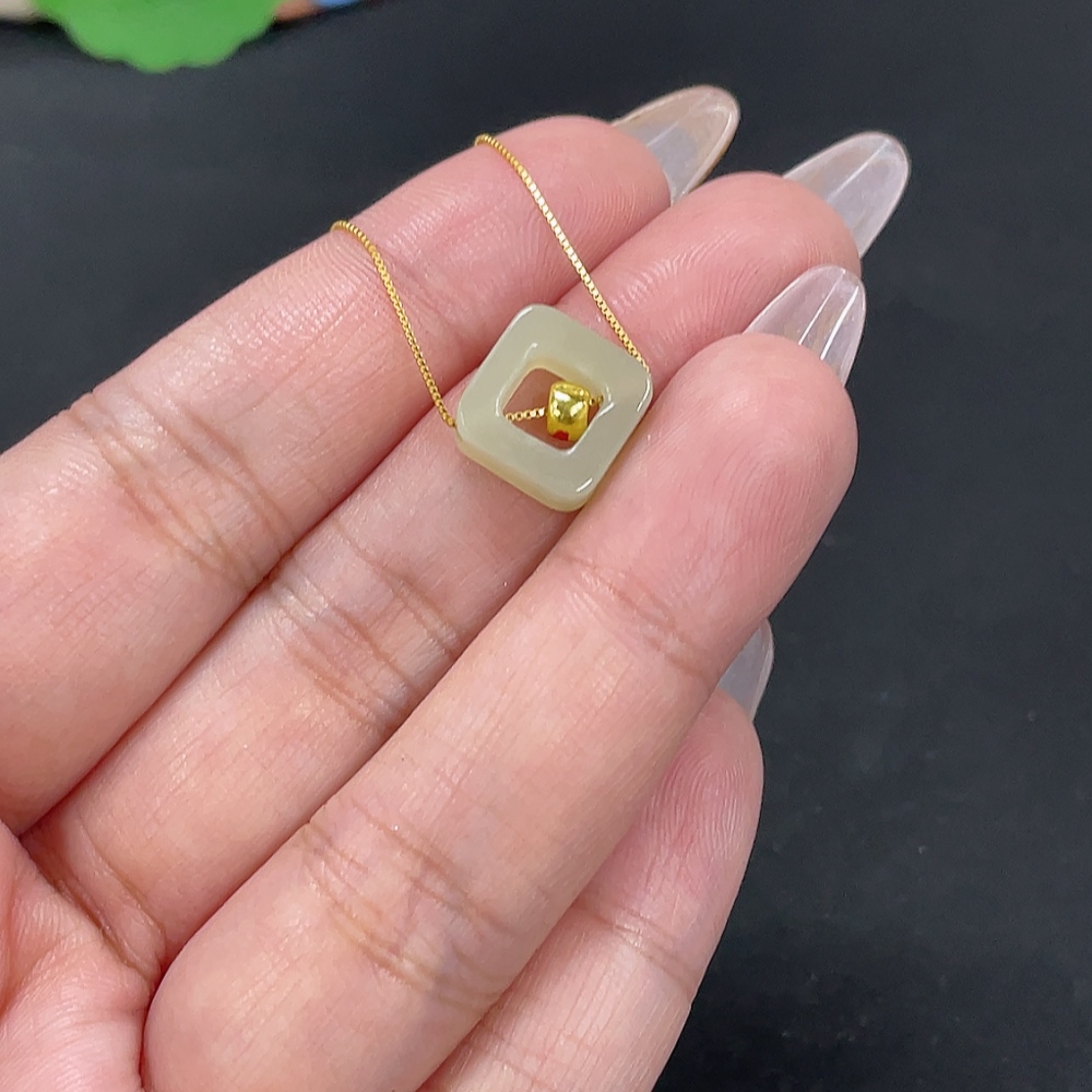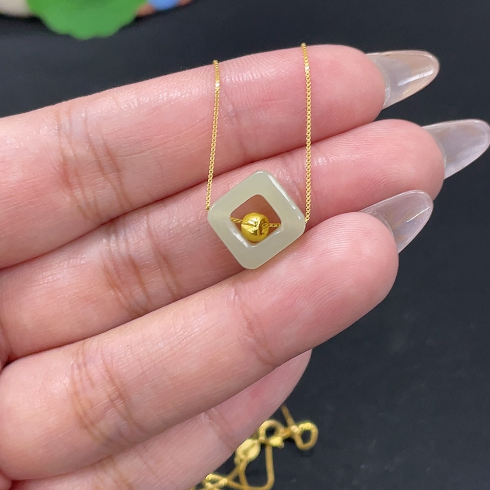 Hetian Jade Pendant, Marked Red Without Hallmark, Gold Content 98% Non-Gold Remainder, Total Weight Approx. (Incl. Chain) 1.7g