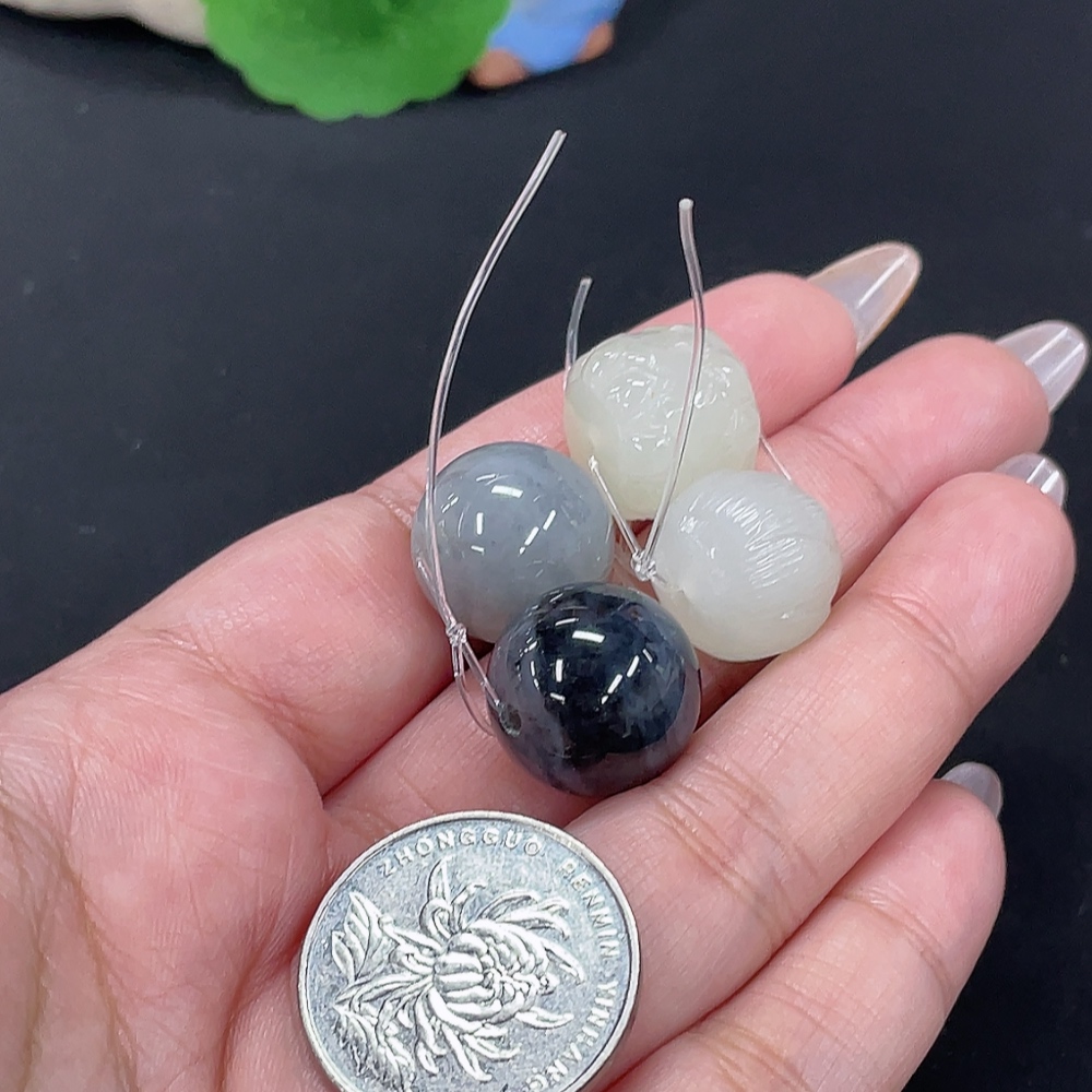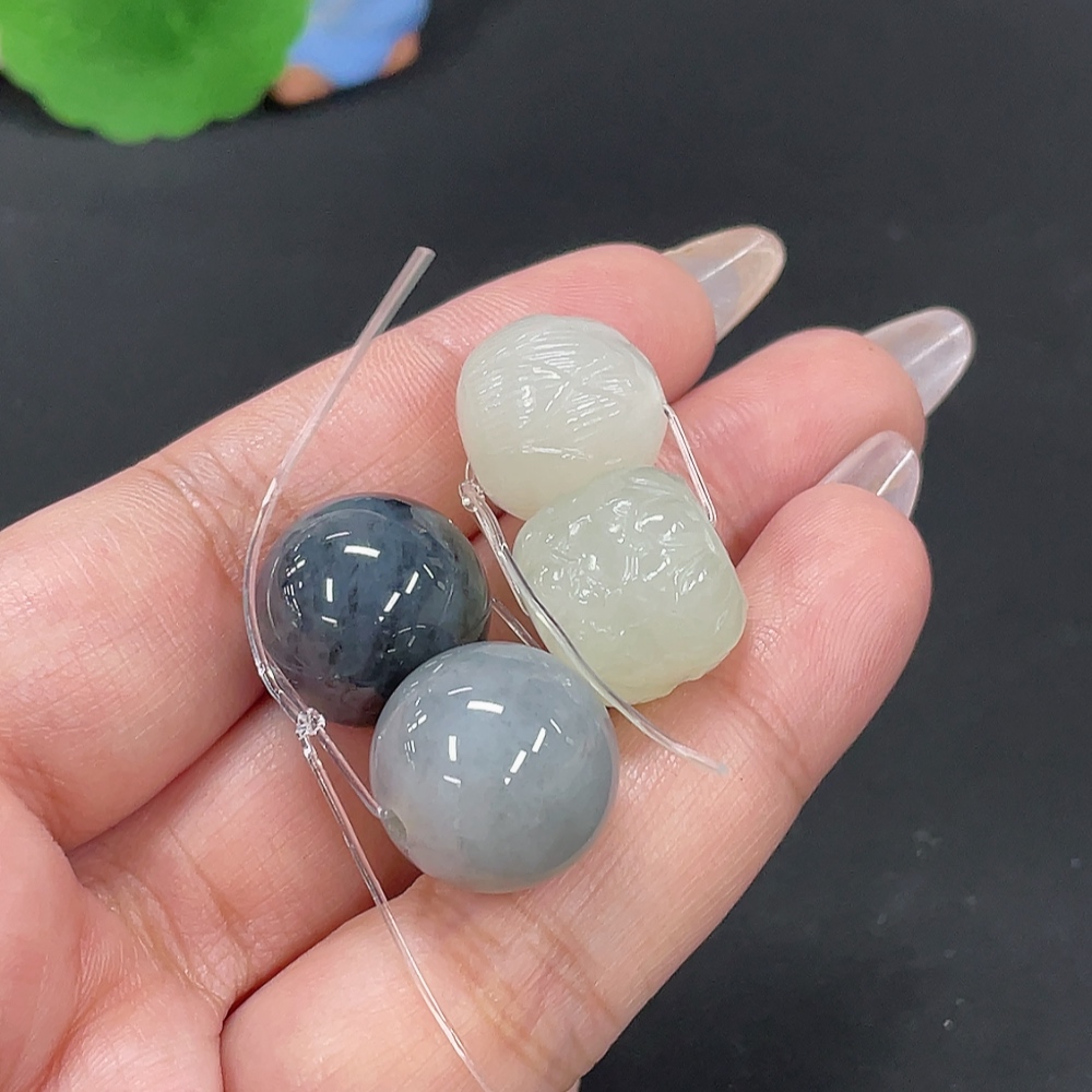 Hetian Jade Beads Total Weight Approx. 25.3g