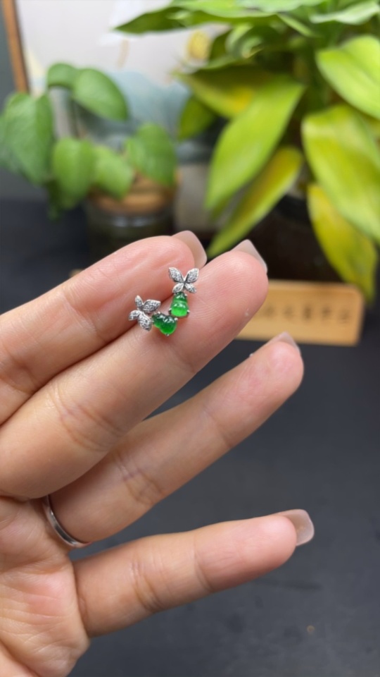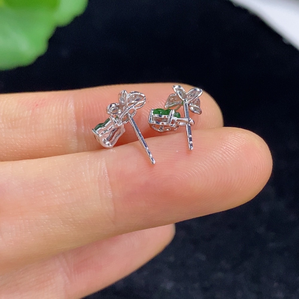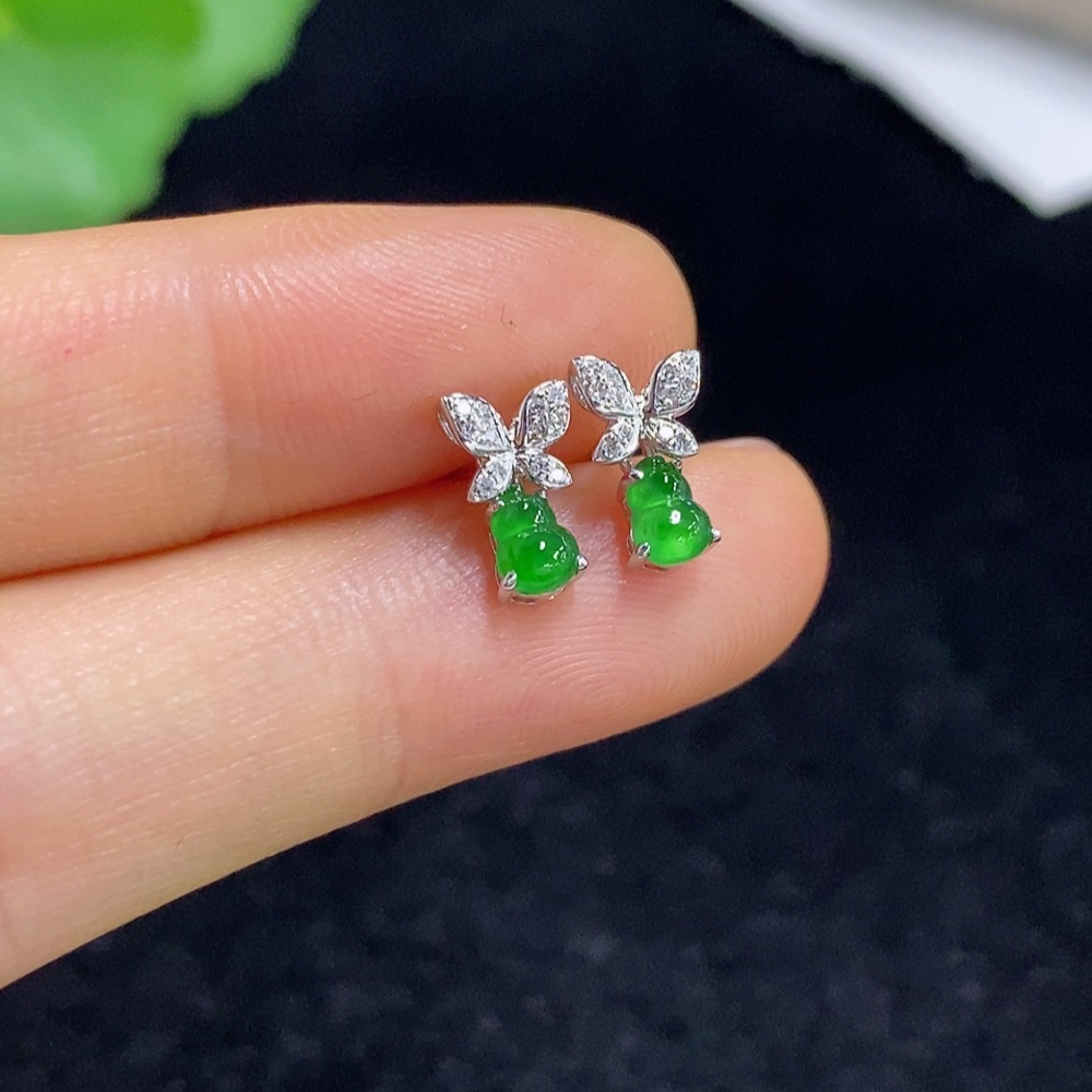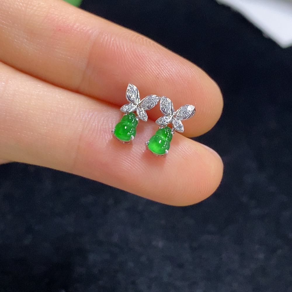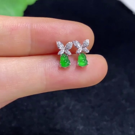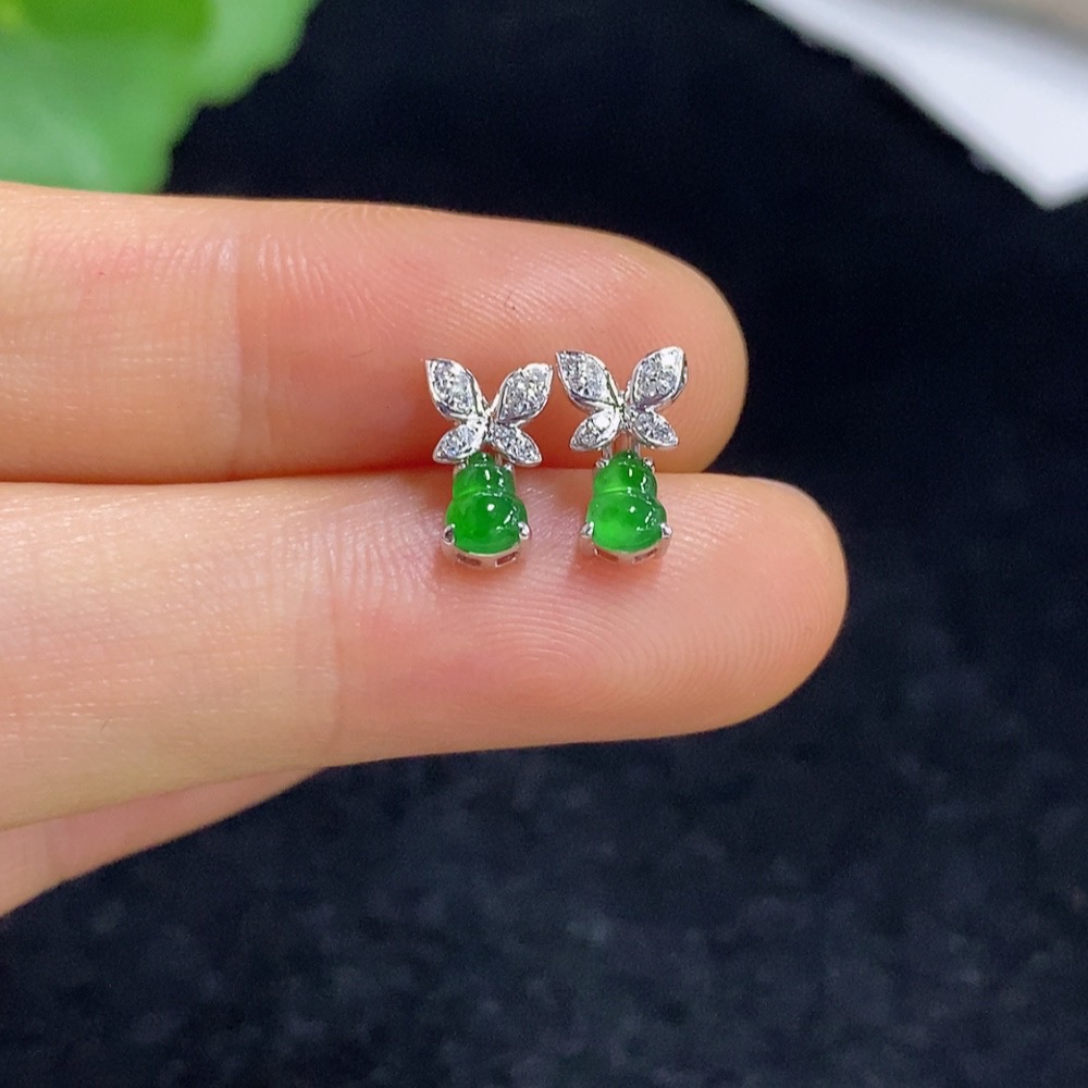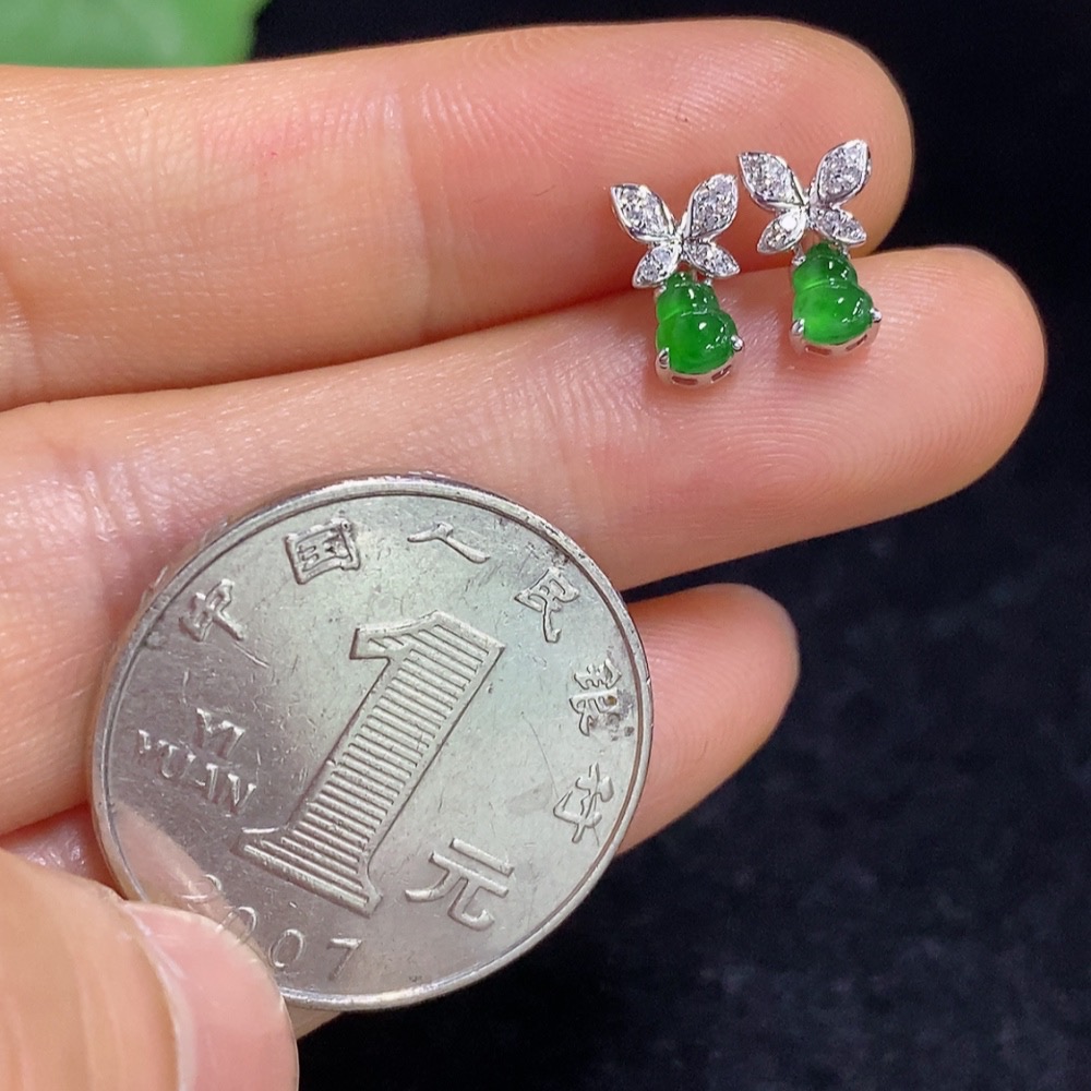 Jadeite gourd inlaid ear studs (ear post Au37%, the rest 18K gold) total weight approximately 0.7g without ear stoppers (accented with diamonds)