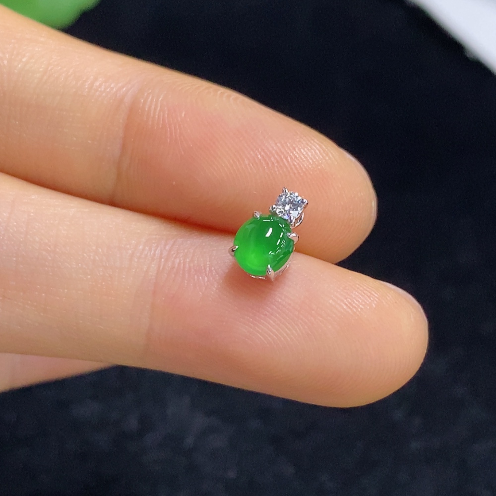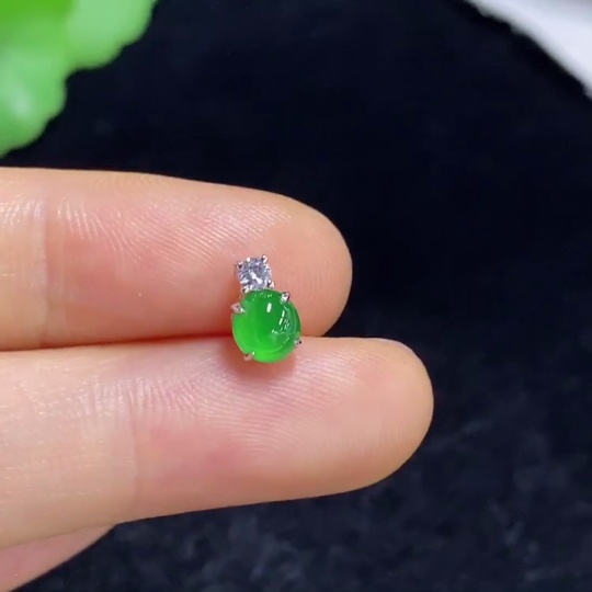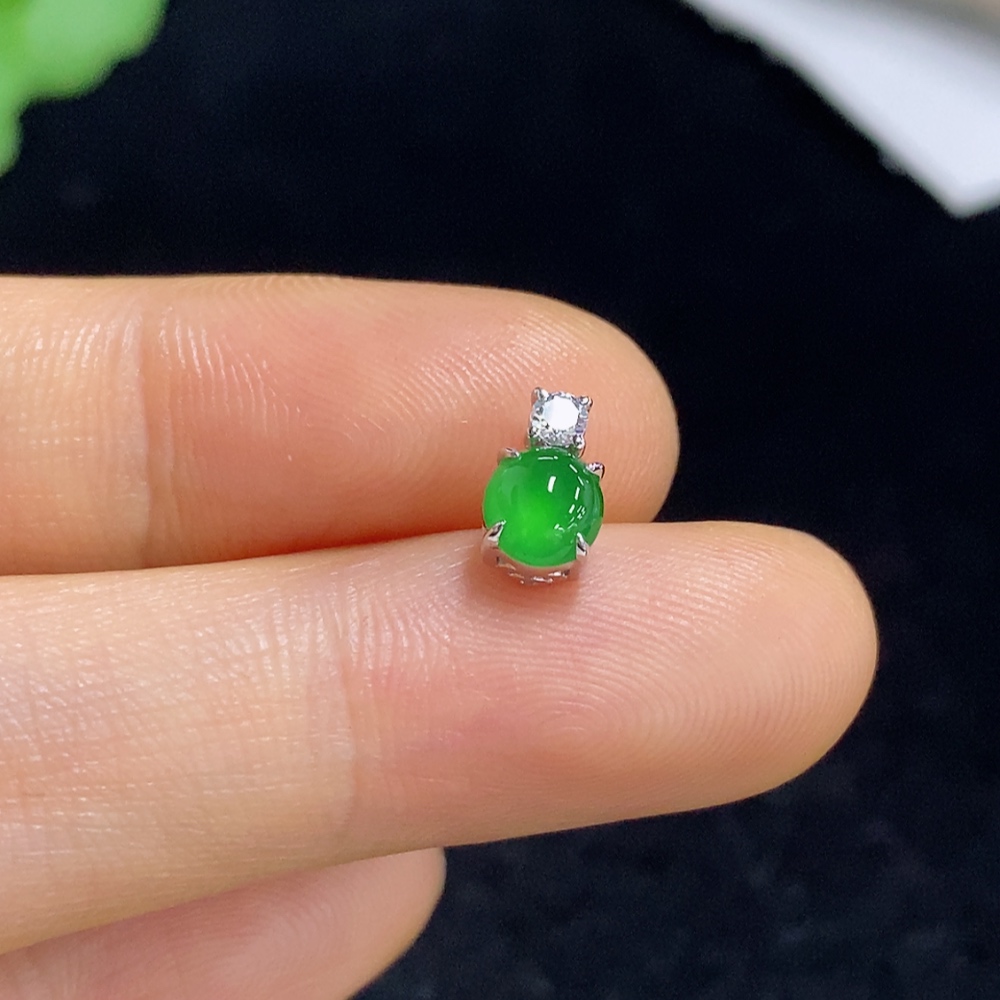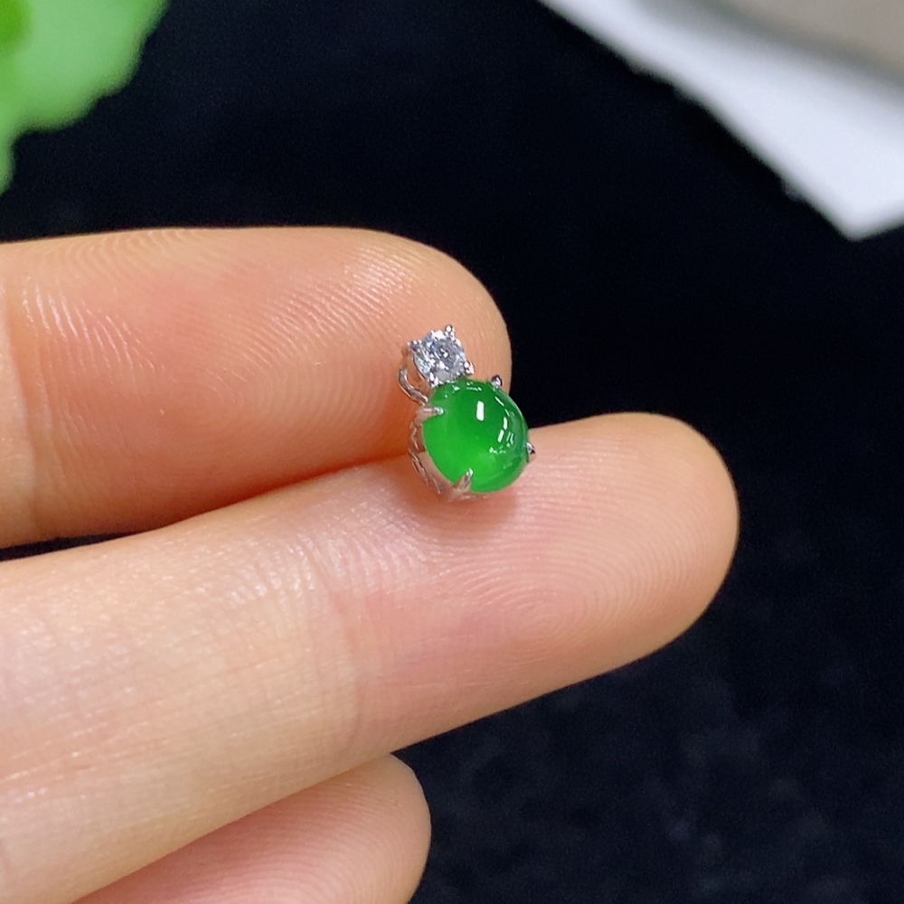 Trezaar - Jadeite cabochon inlaid pendant (Au37%)