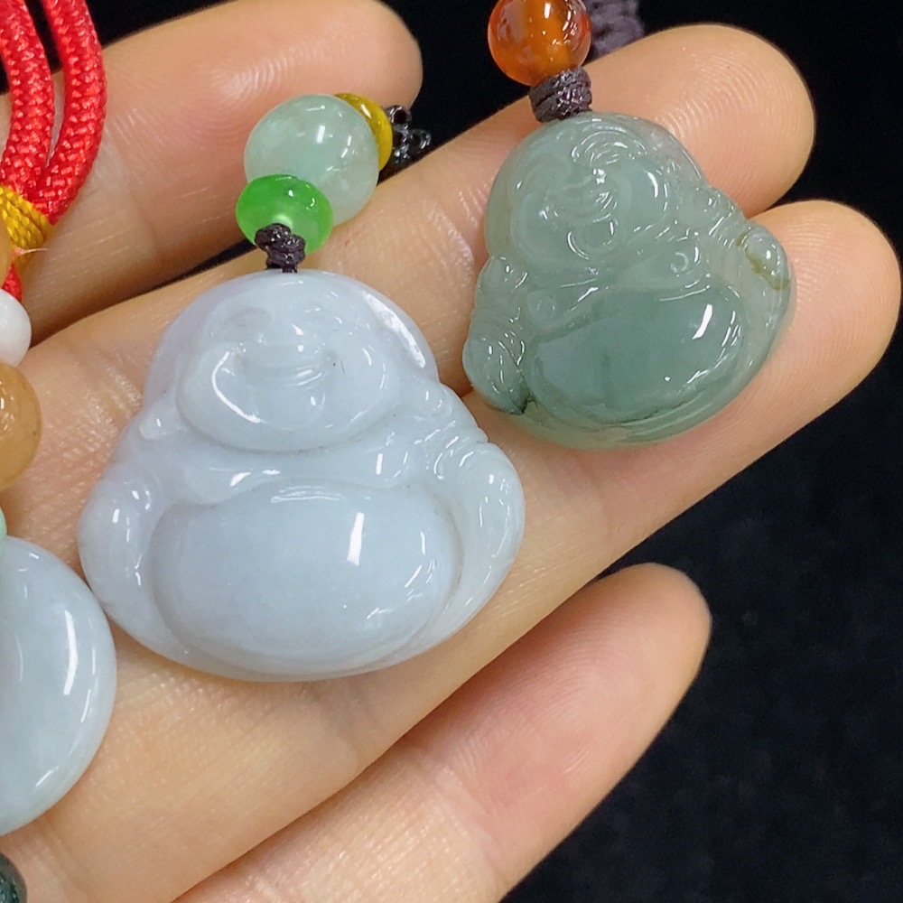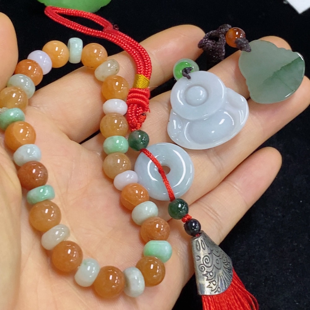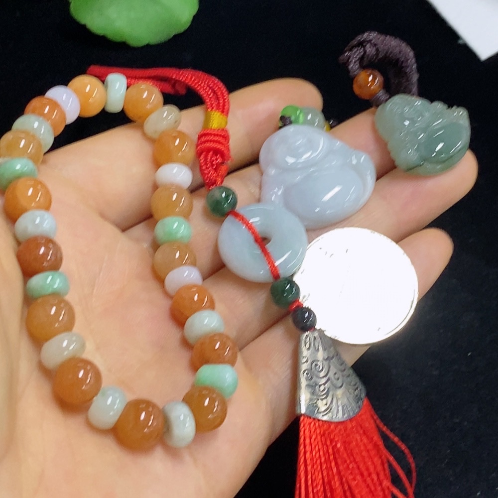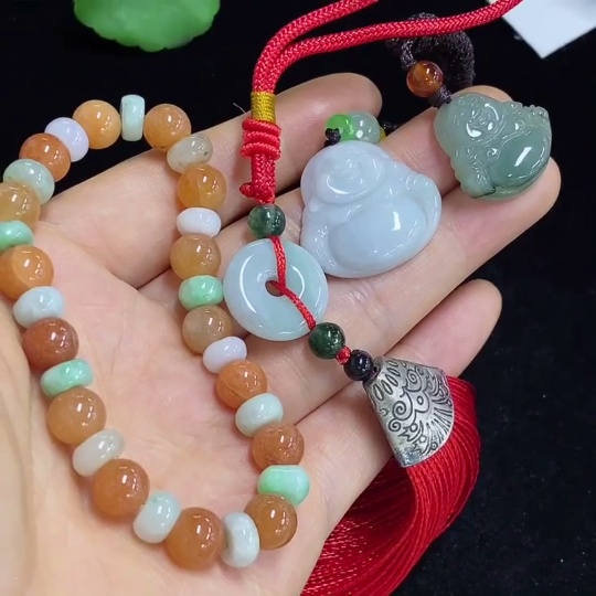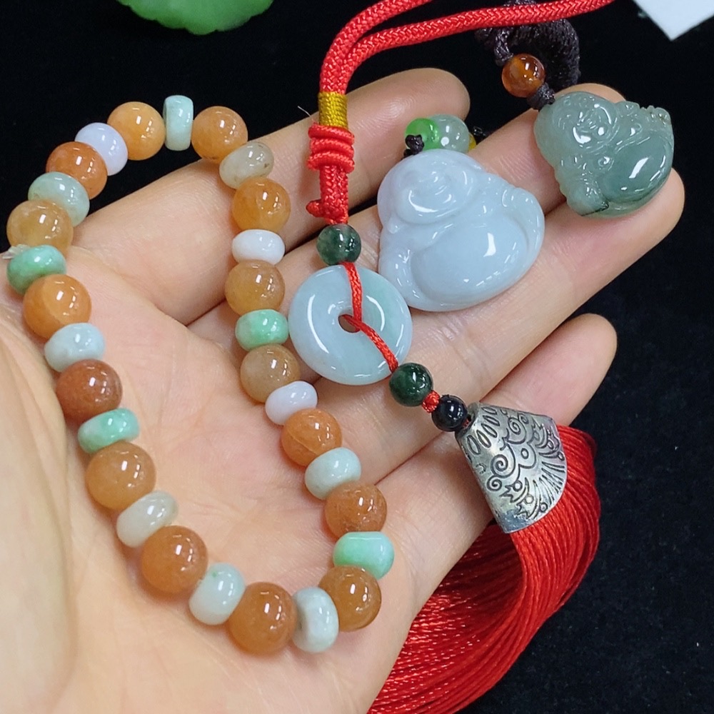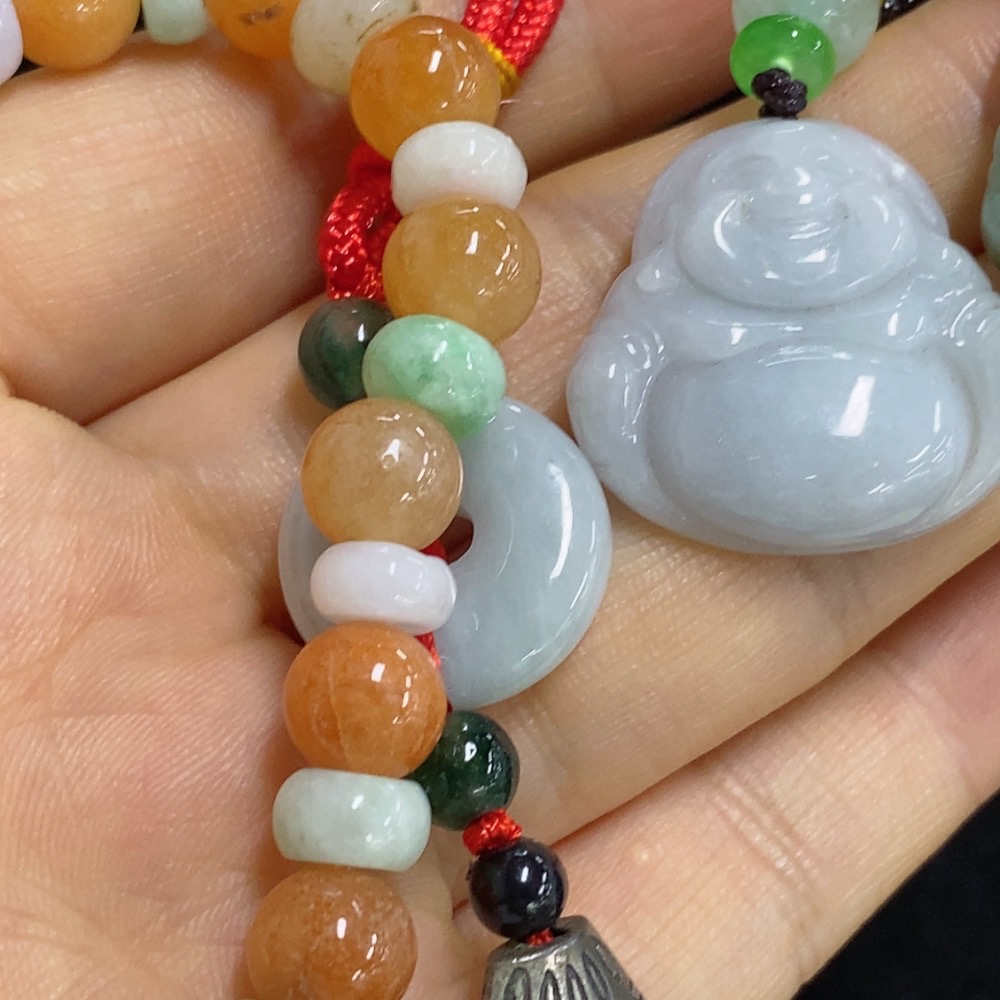 Jadeite Pendant with Bead Chain Sell as a Lot (Red and Yellow Beads Non-A)