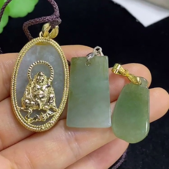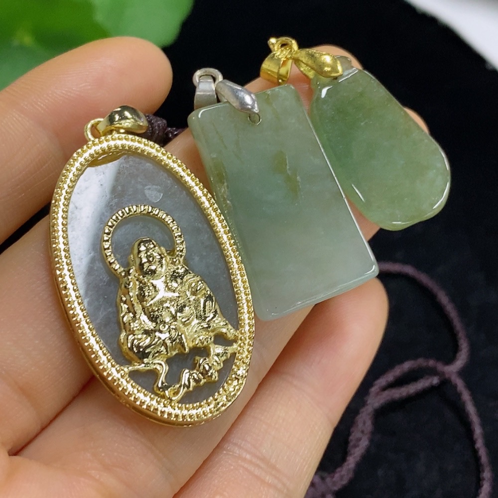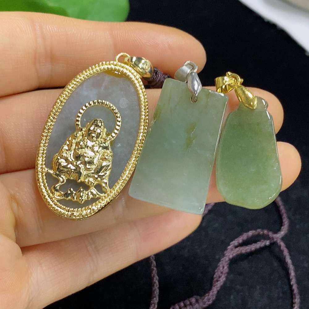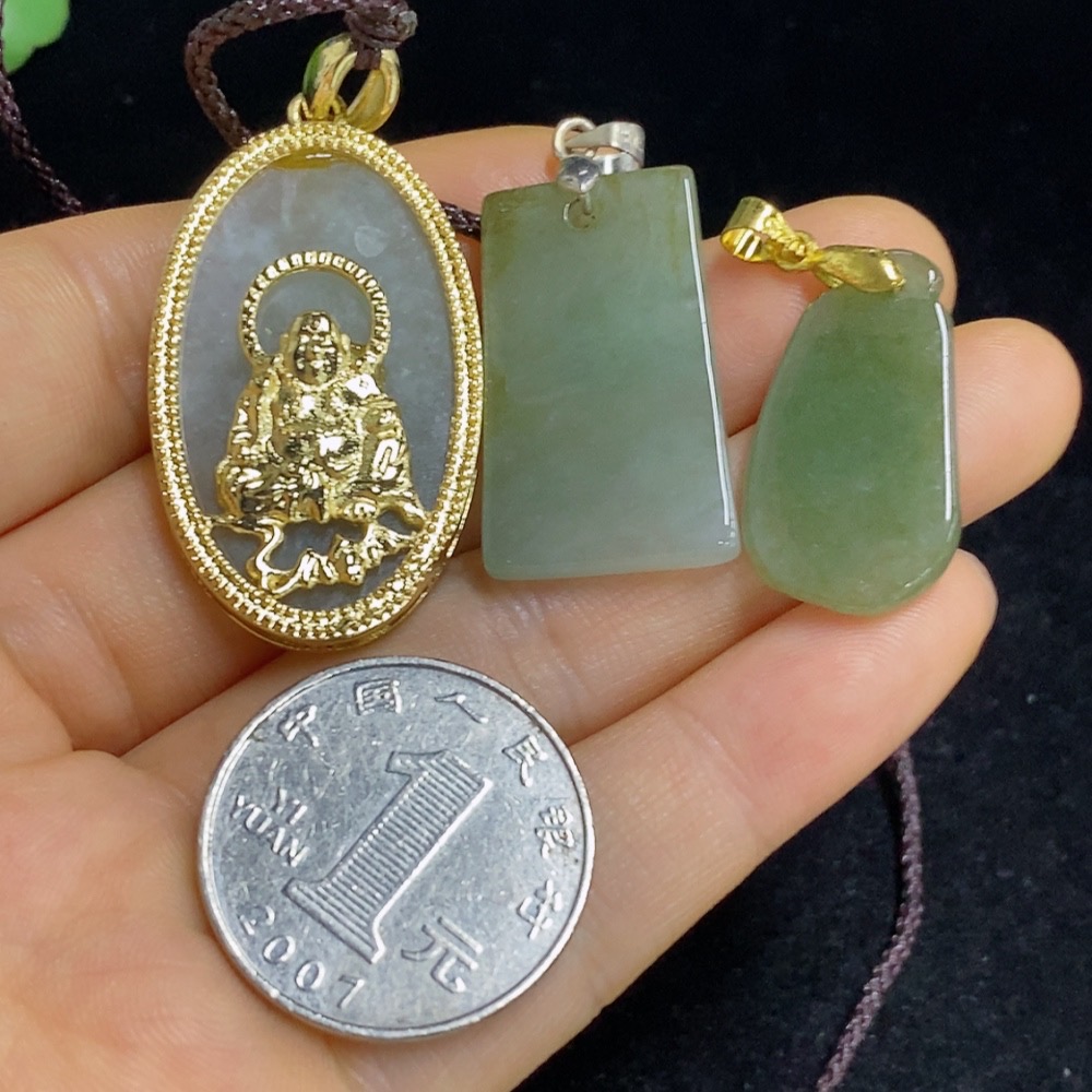 Jadeite Pendants Sell as a Lot Non-Gold Inlaid