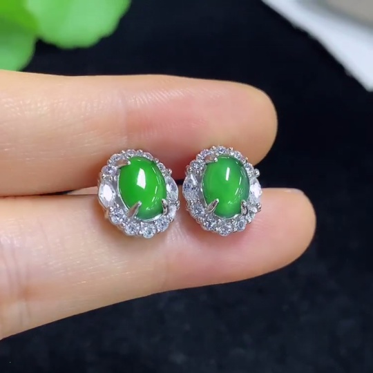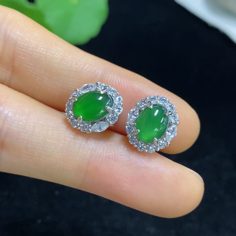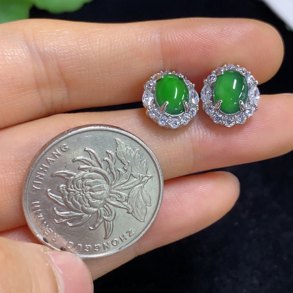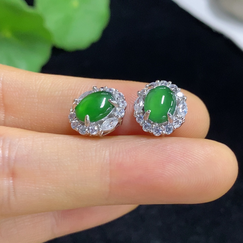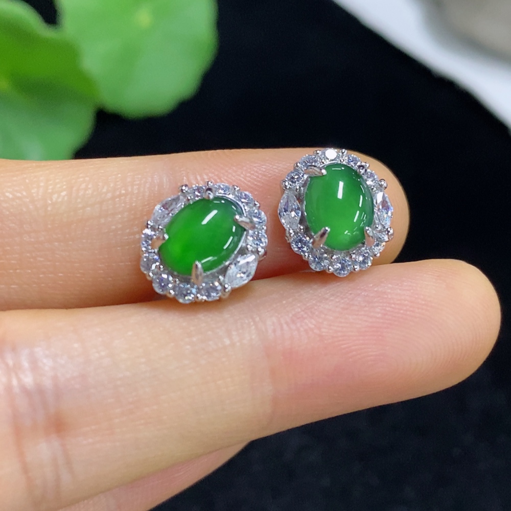 Jadeite cabochon stud earrings, non-gold setting, total weight approximately 2.9g