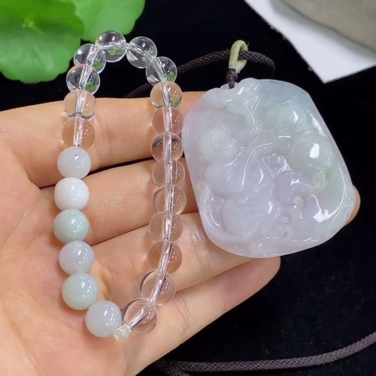 Jadeite Pendant with Bead Strand Sell as a Lot (Beads Not Grade A)
