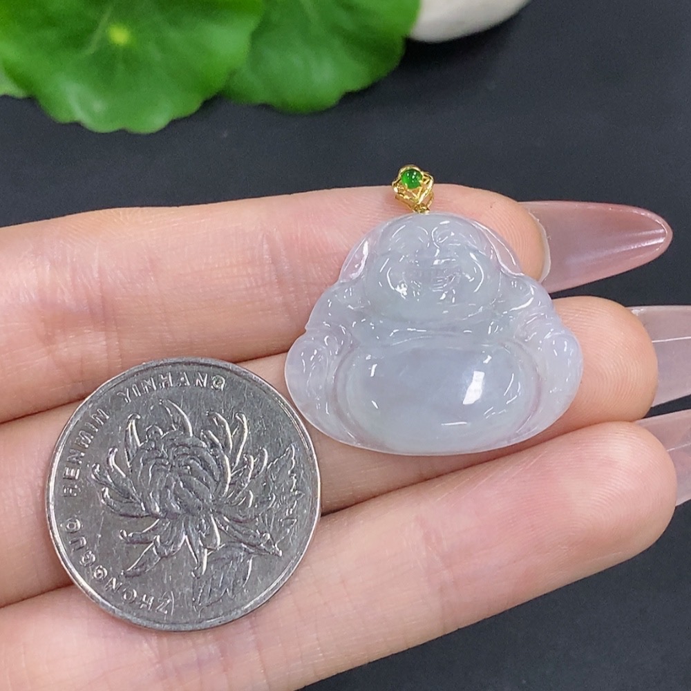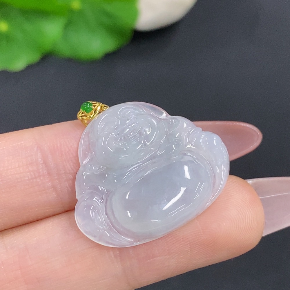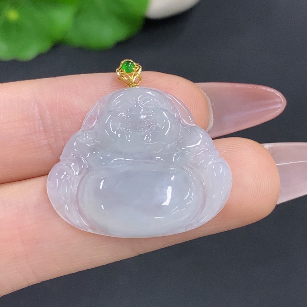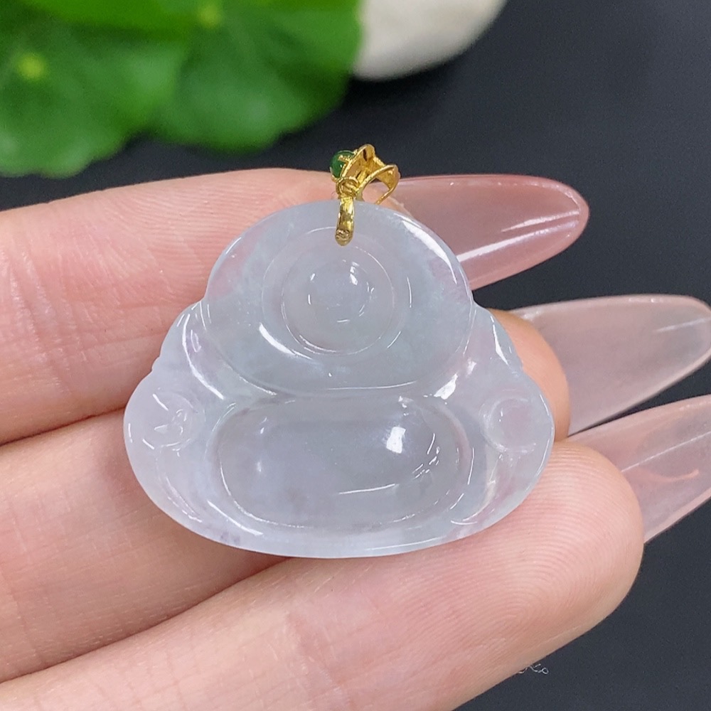 Jadeite Buddha Pendant with 18K Gold Clasp, Total Weight Approximately 4.7g
