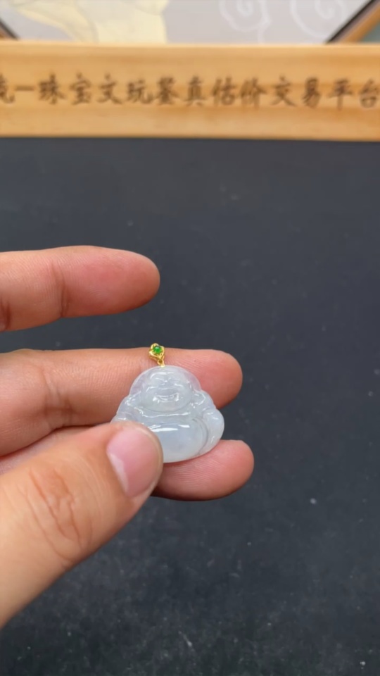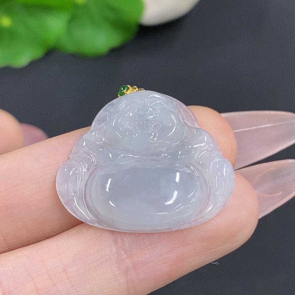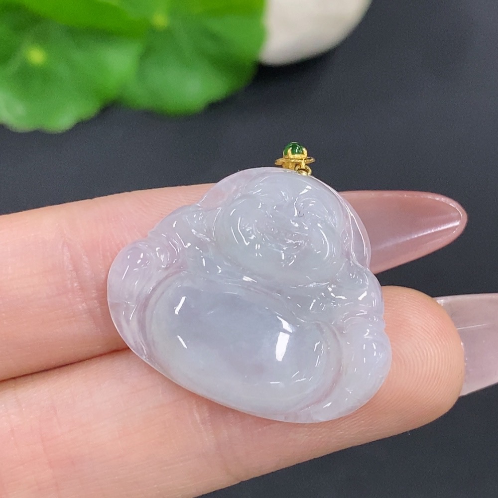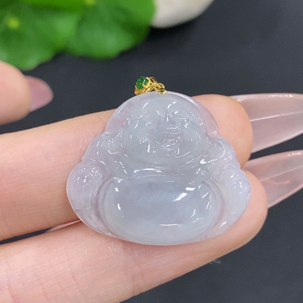 Jadeite Buddha Pendant with 18K Gold Clasp, Total Weight Approximately 4.7g