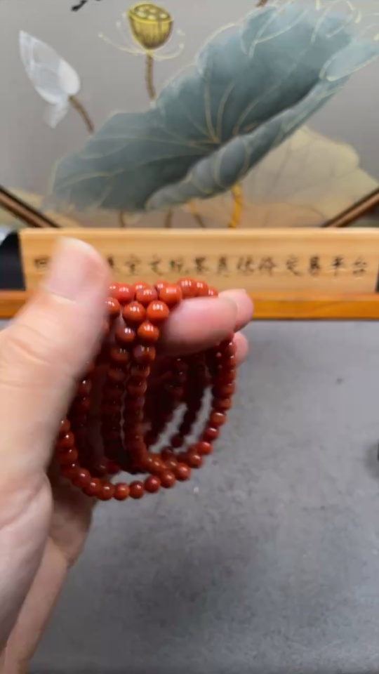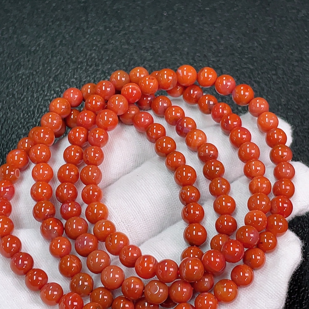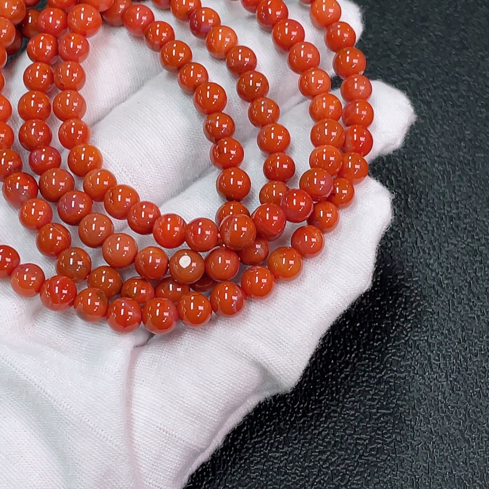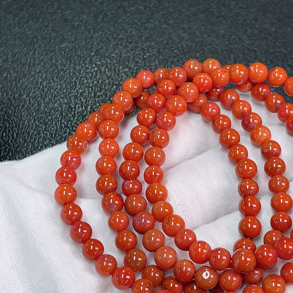 Red Agate Bead Necklace with Visible Organic Matter, Total Weight Approximately 31.72g, Bead Size About 5.6mm