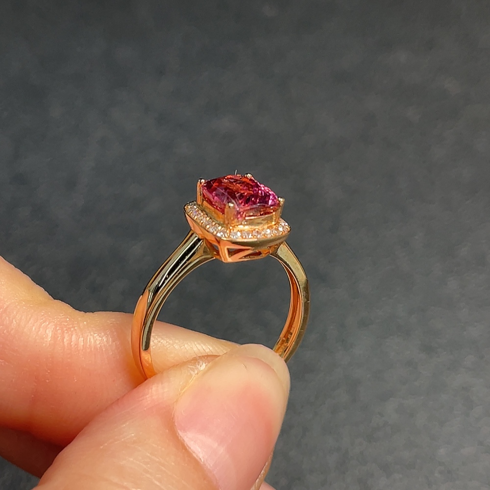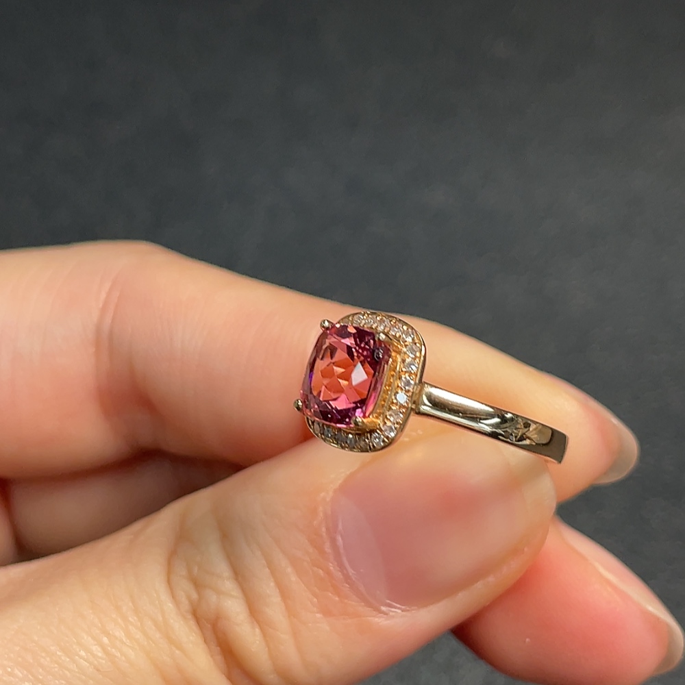 18K Tourmaline Ring with Diamond Accents, Total Weight Approx. 3.11g, Size 12