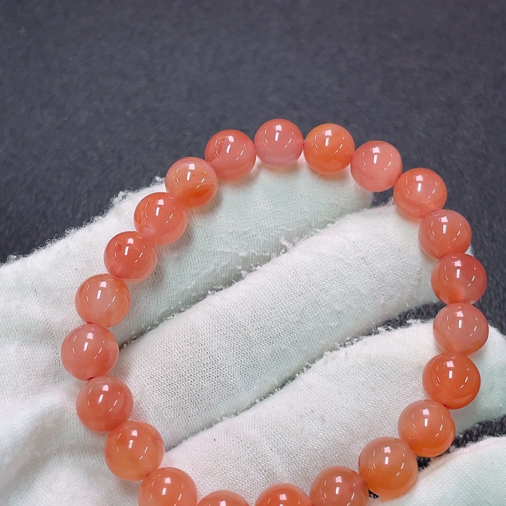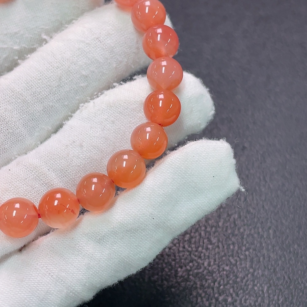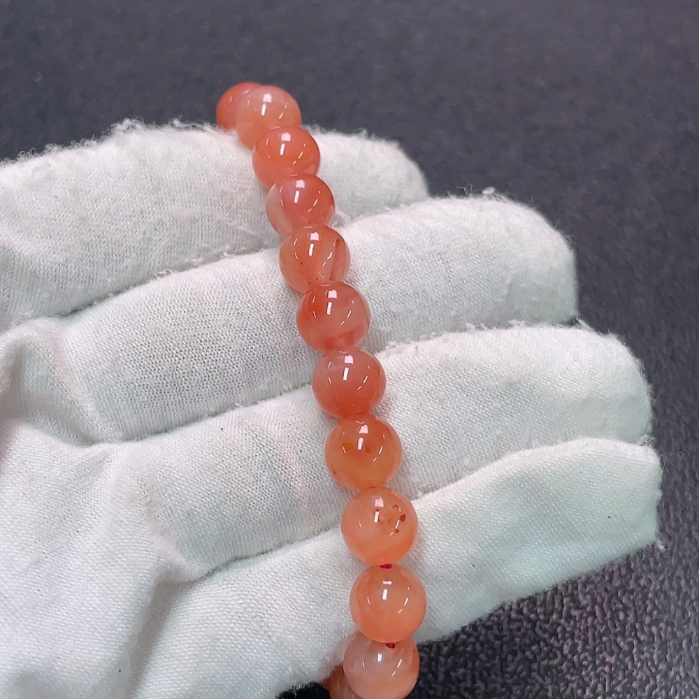 Red Agate Bracelet with Visible Organic Matter, Total Weight Approx. 19.4g, Size About 8.5mm
