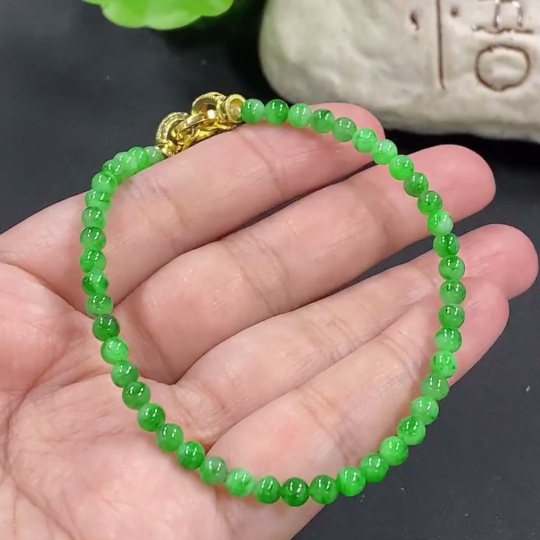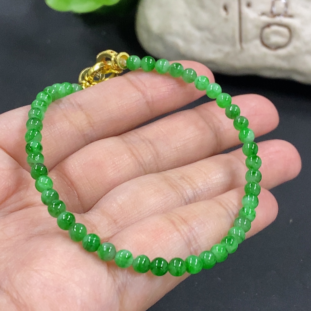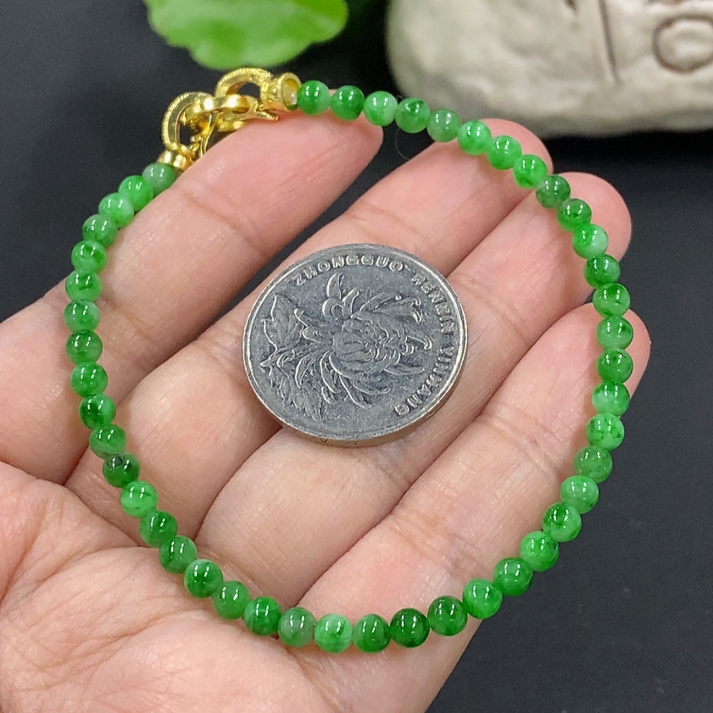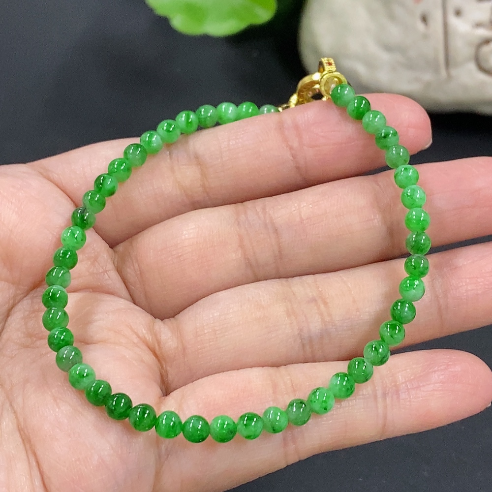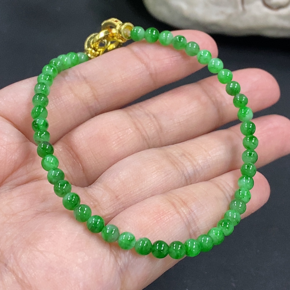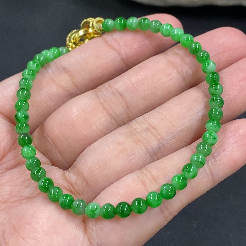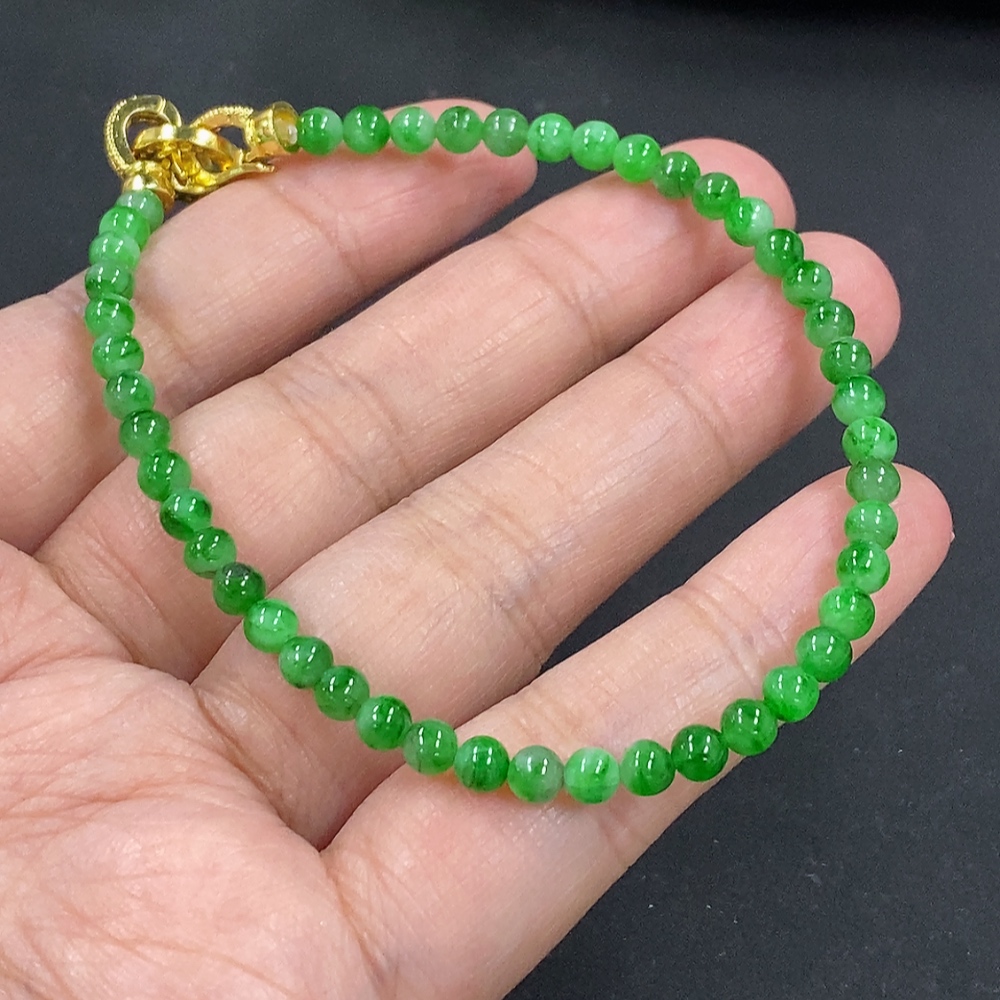 Jadeite Bracelet, Approx. 4mm Beads, Total Weight About 6.93g, Non-Gold Clasp
