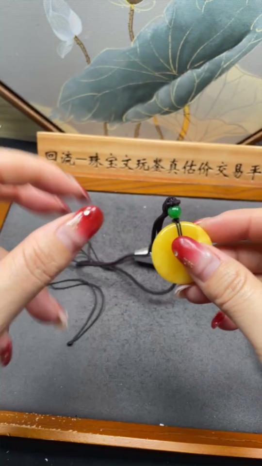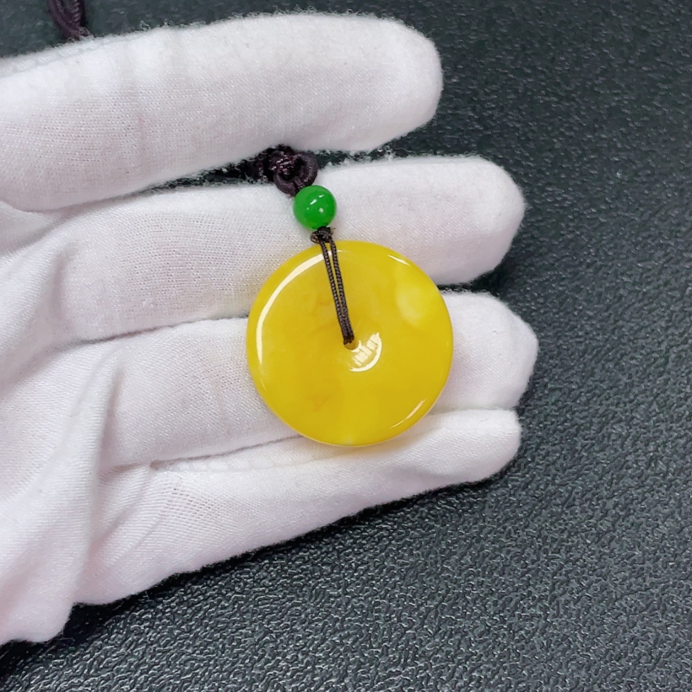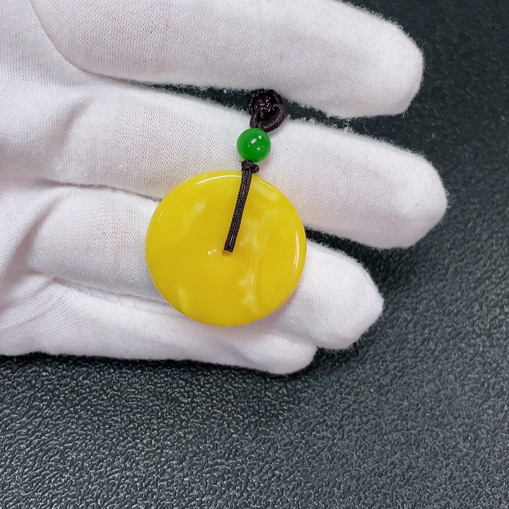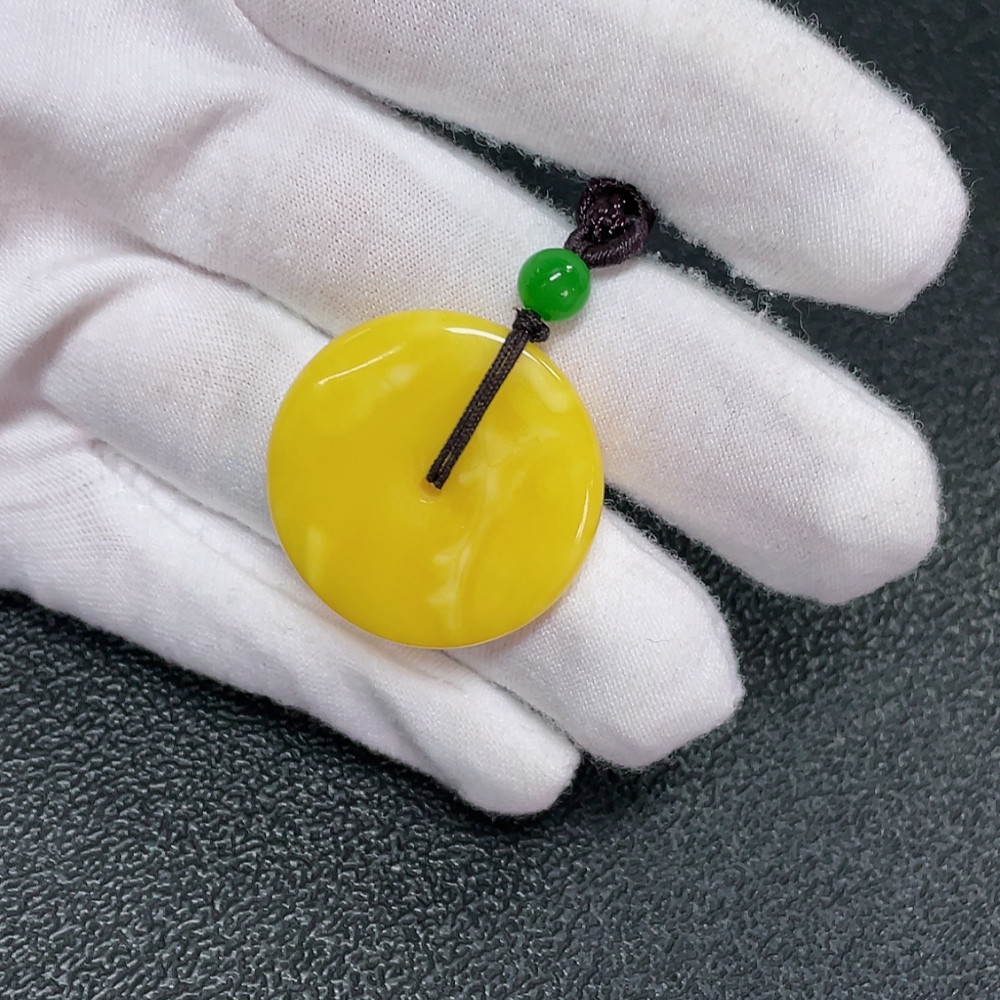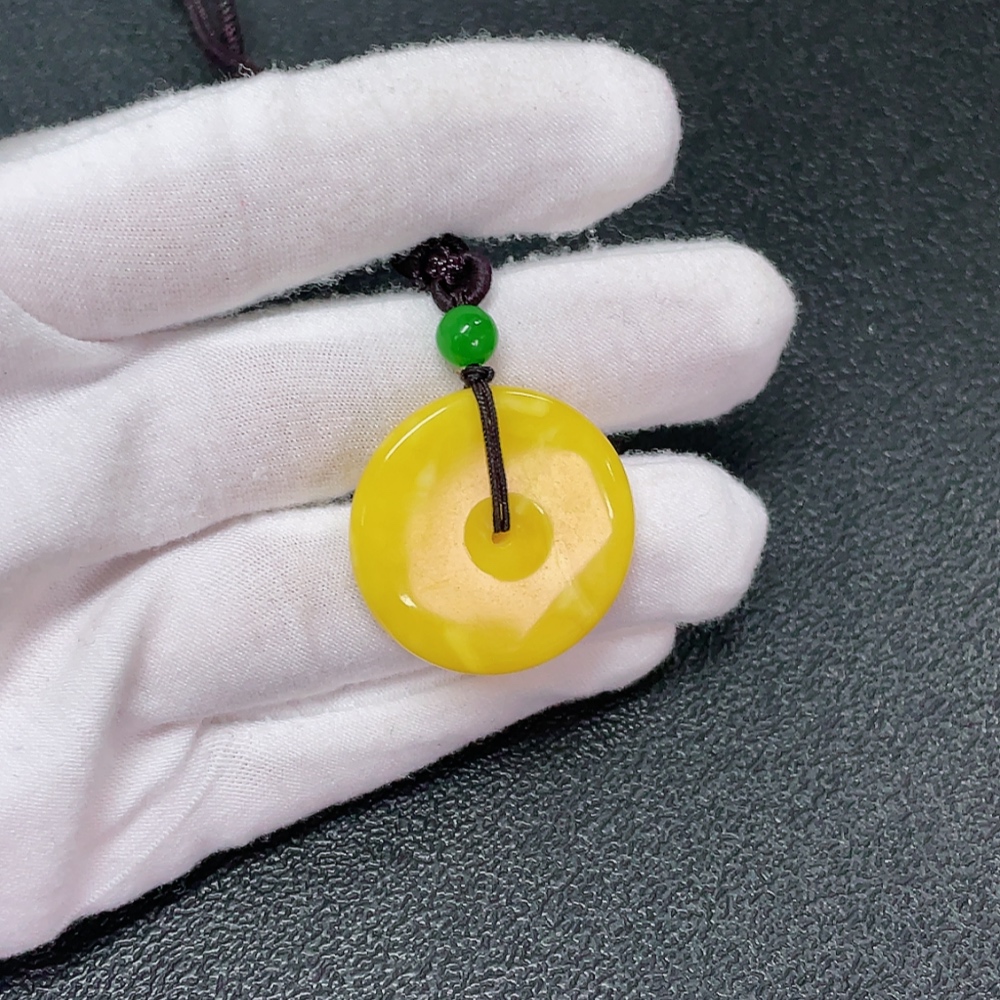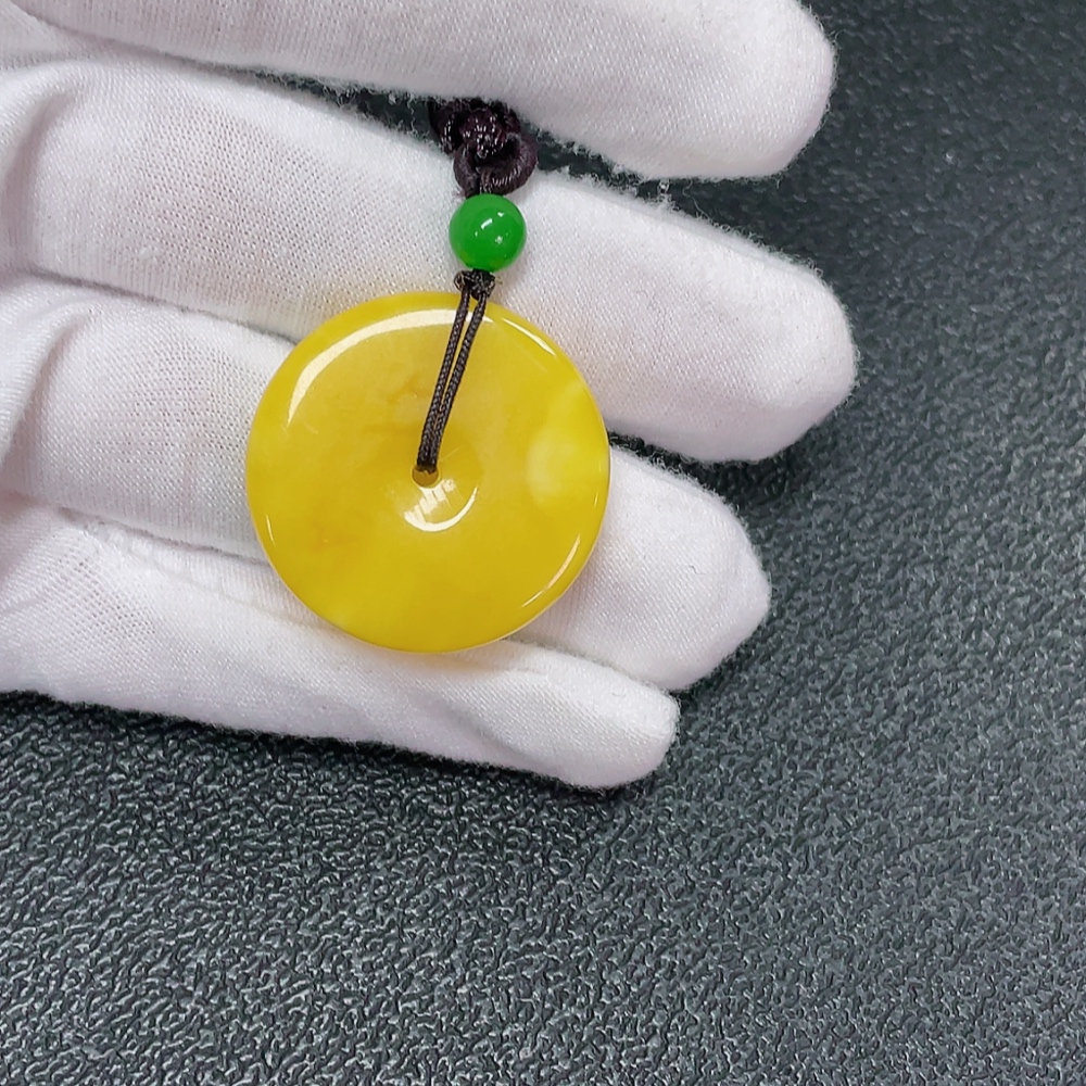 Amber Beeswax Pendant (Non-natural inlaid stones) Total weight approx. 4.7g (with cord)