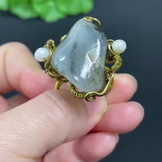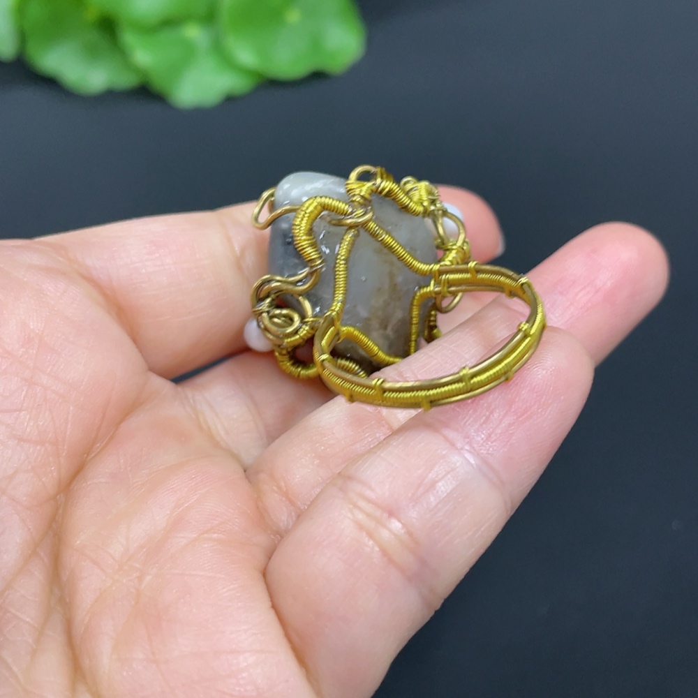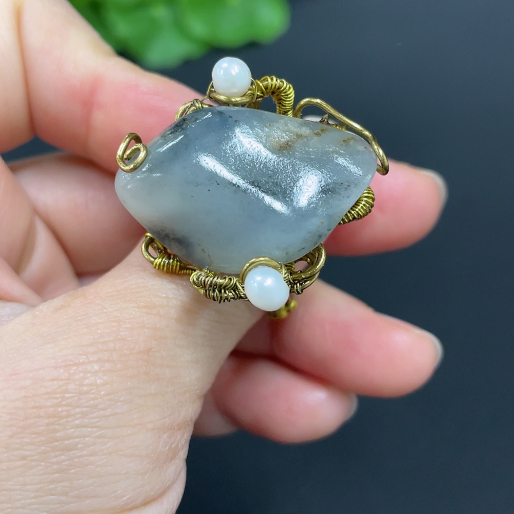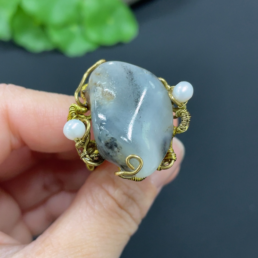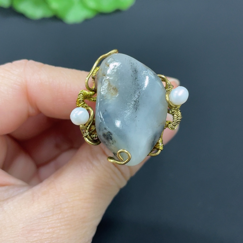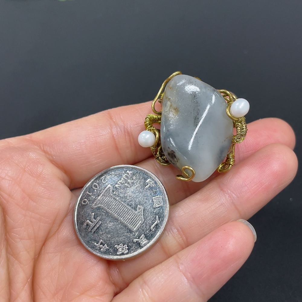 Hetian Jade Inlaid Ring Non-Gold Inlaid Size 22 Total Weight Approx. 12.1g Undetermined Skin Color Cause