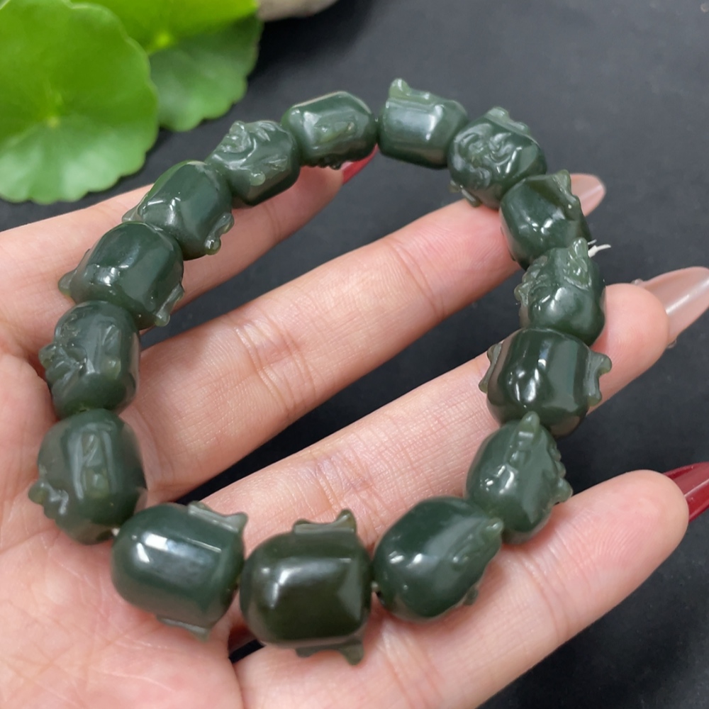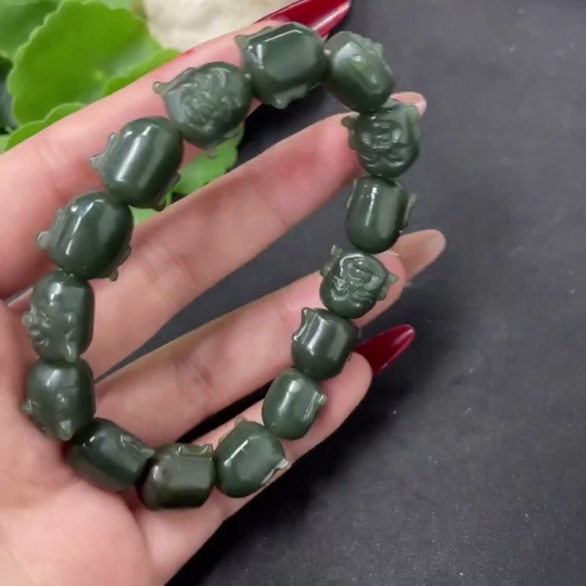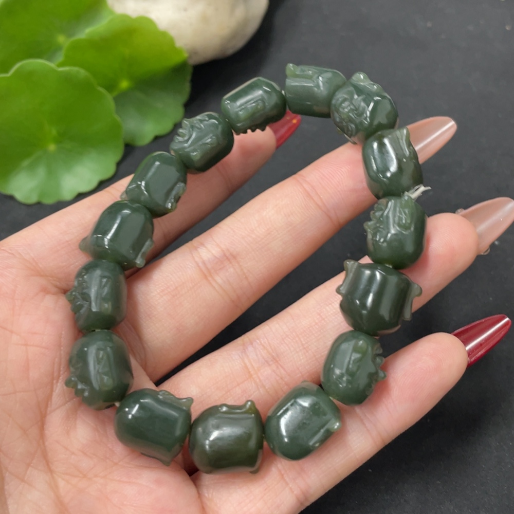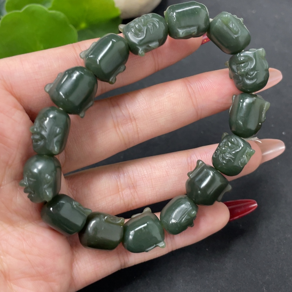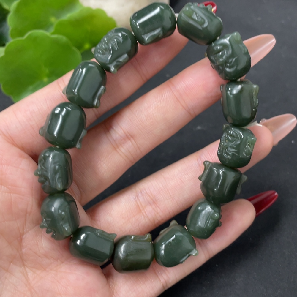 Hetian Jade Buddha Head Bracelet, Total Weight Approx. 42.1g