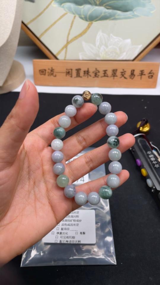 Jadeite Bracelet Non-Gold Inlaid Approx. 10.1mm Total Weight About 37g Containing Other Minerals