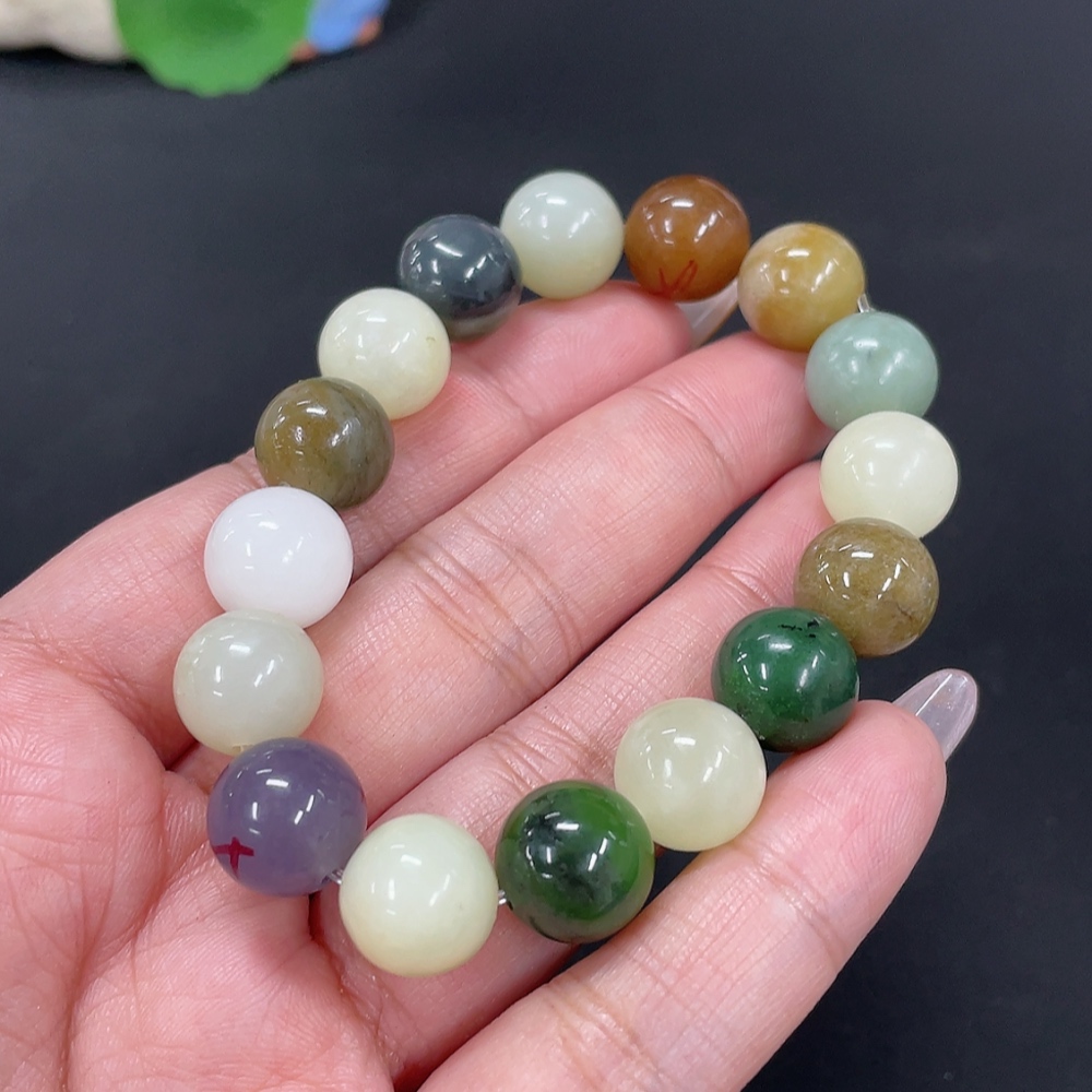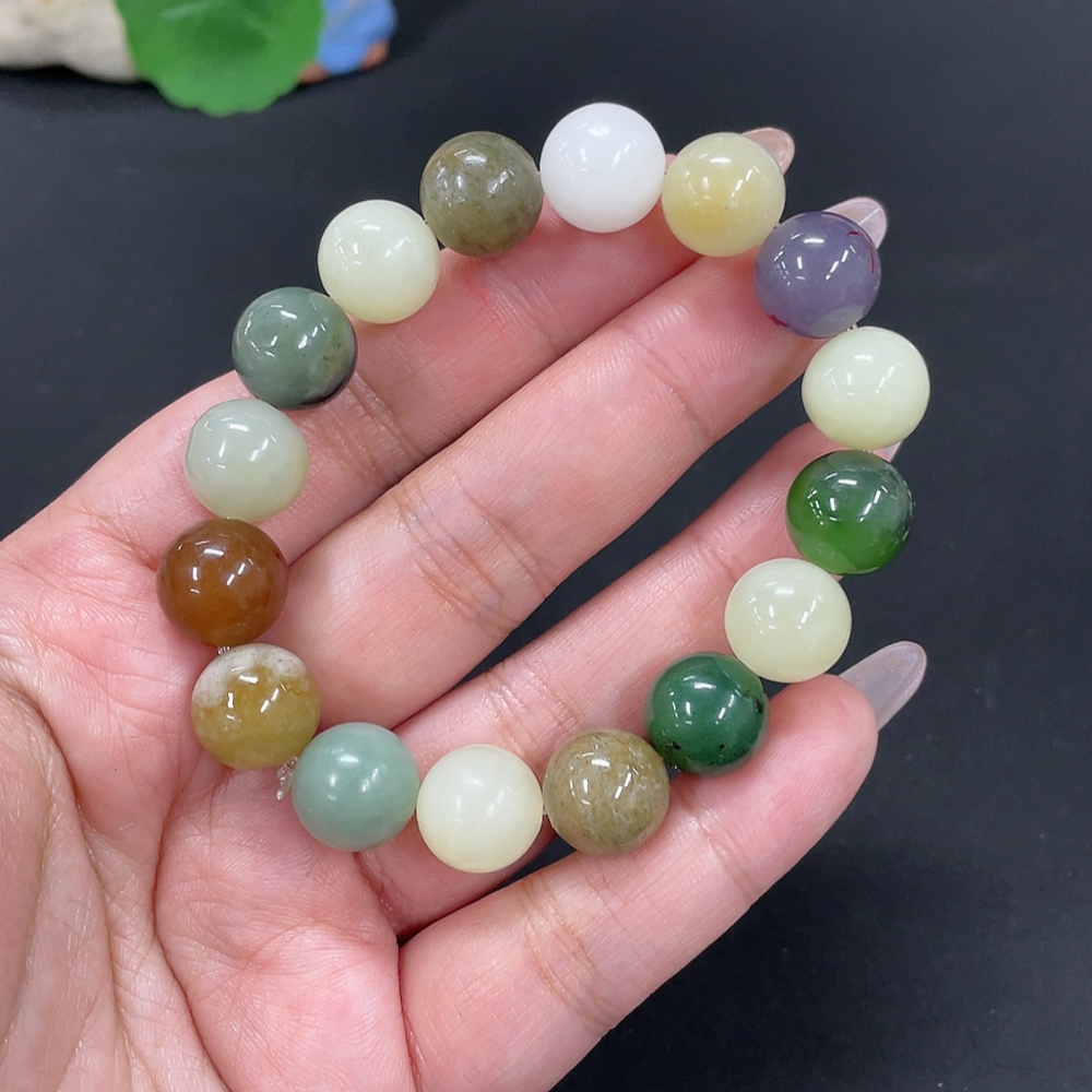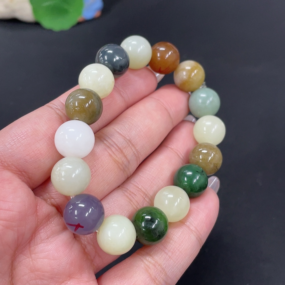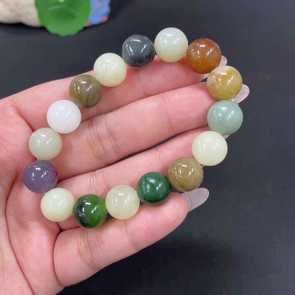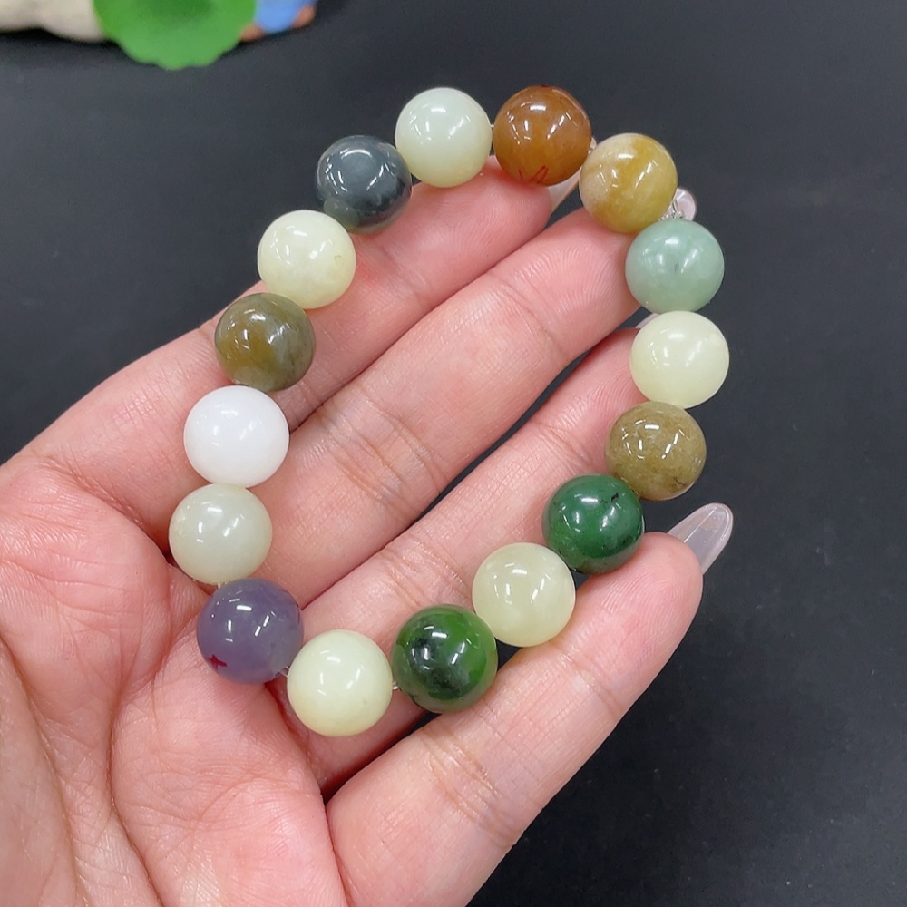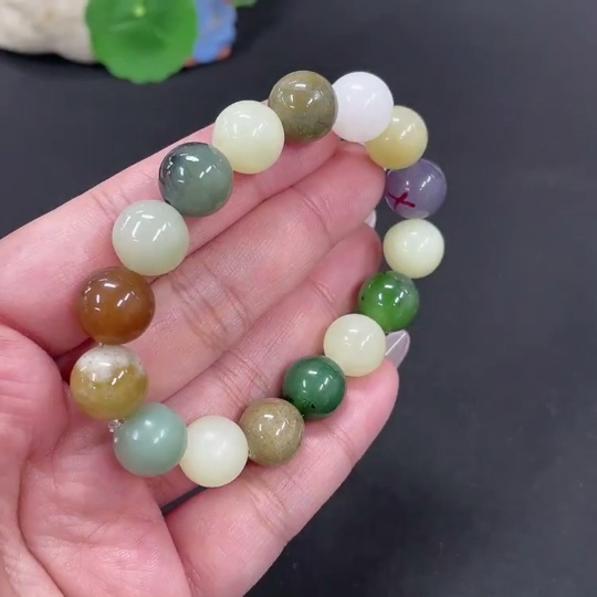 Hetian Jade Bracelet, approx. 11.7mm, total weight approx. 40.2g, contains other mineral components, non-Hetian Jade beads, with impurities