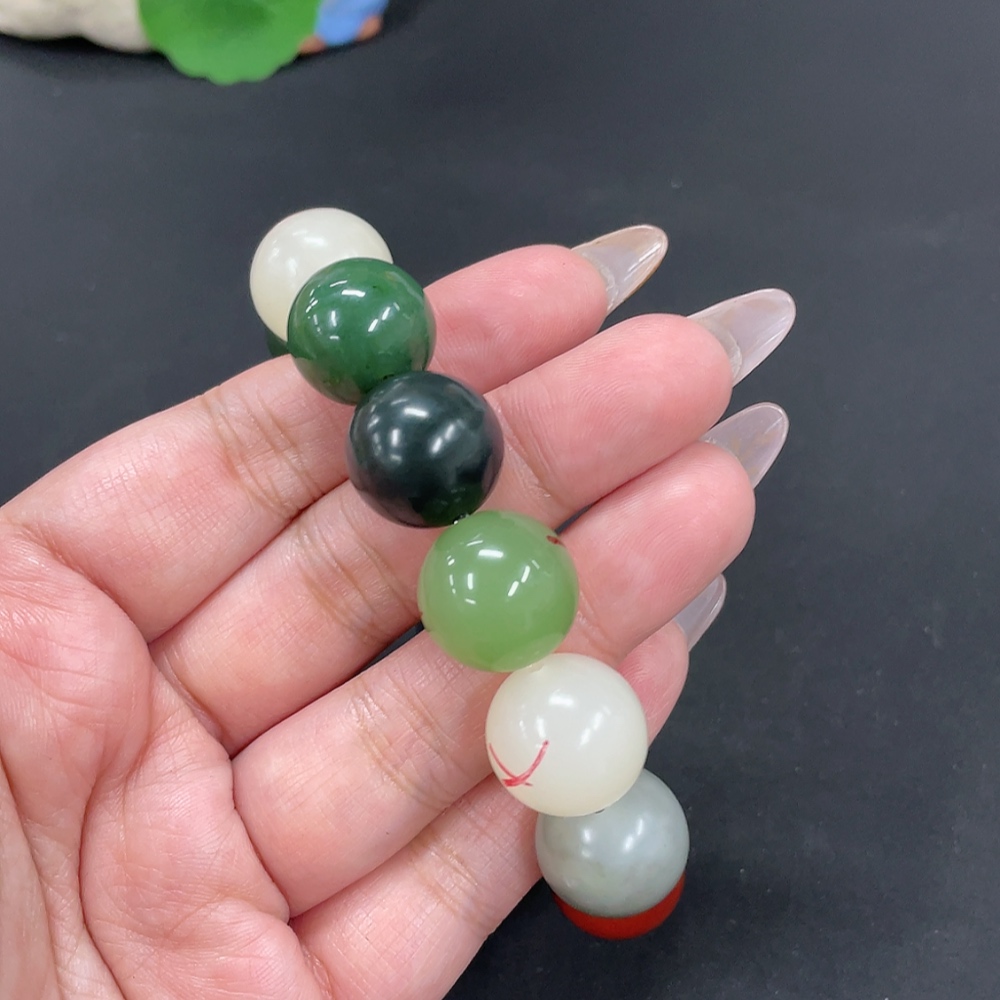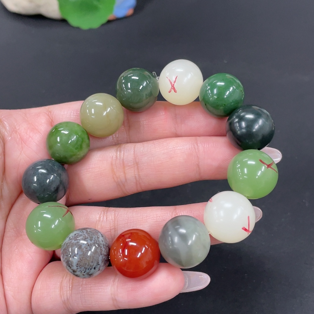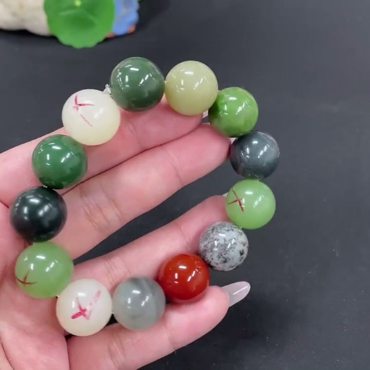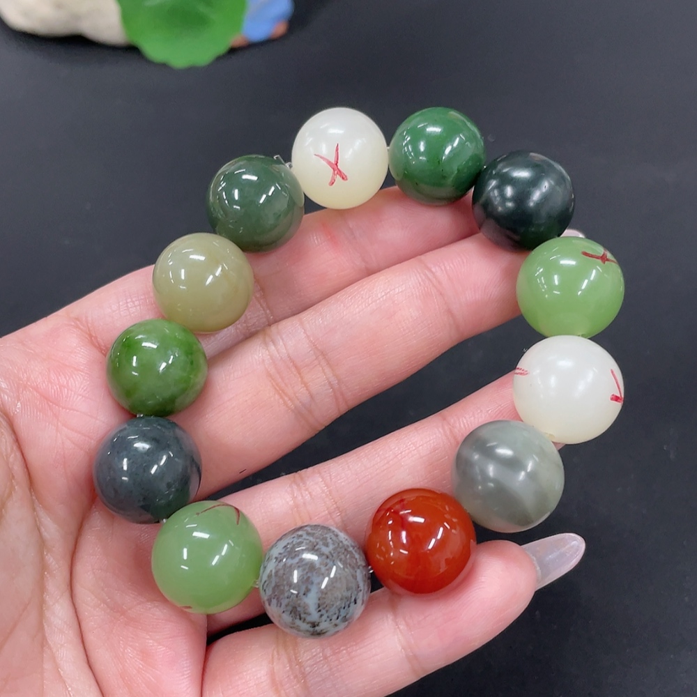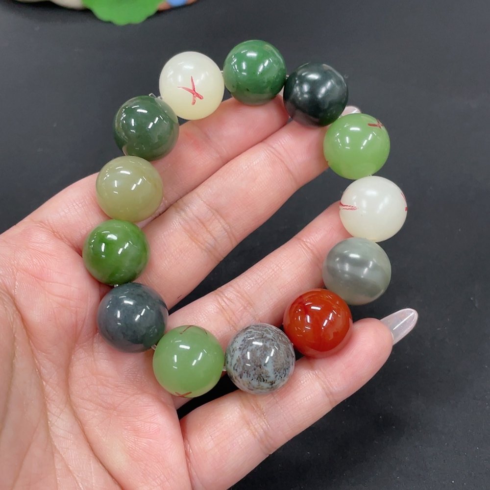 Hetian Jade Bracelet, approx. 15.7mm, total weight approx. 78.7g, contains other mineral components, non-Hetian Jade accessory beads, with impurities