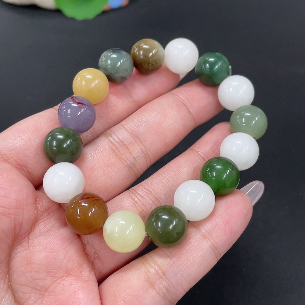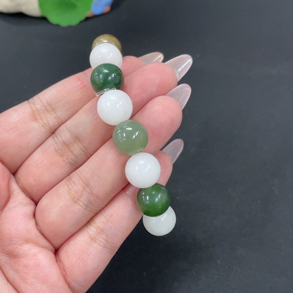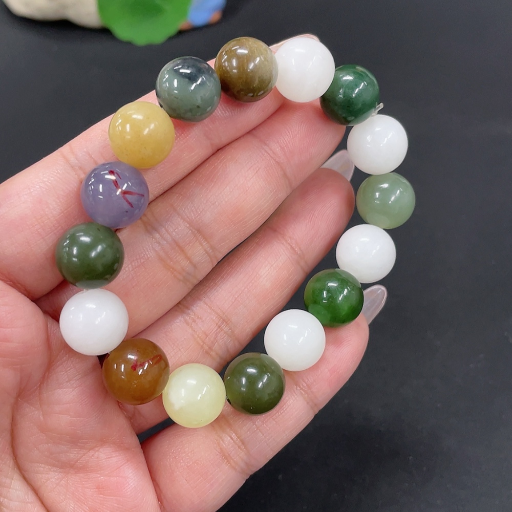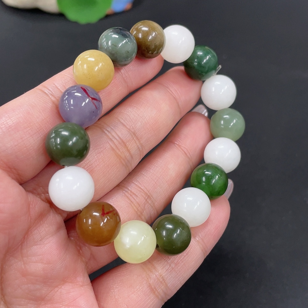 Hetian Jade Bracelet, Approx. 11.8mm, Total Weight About 40.9g, Contains Other Mineral Components, Non-Hetian Jade Beads, With Impurities